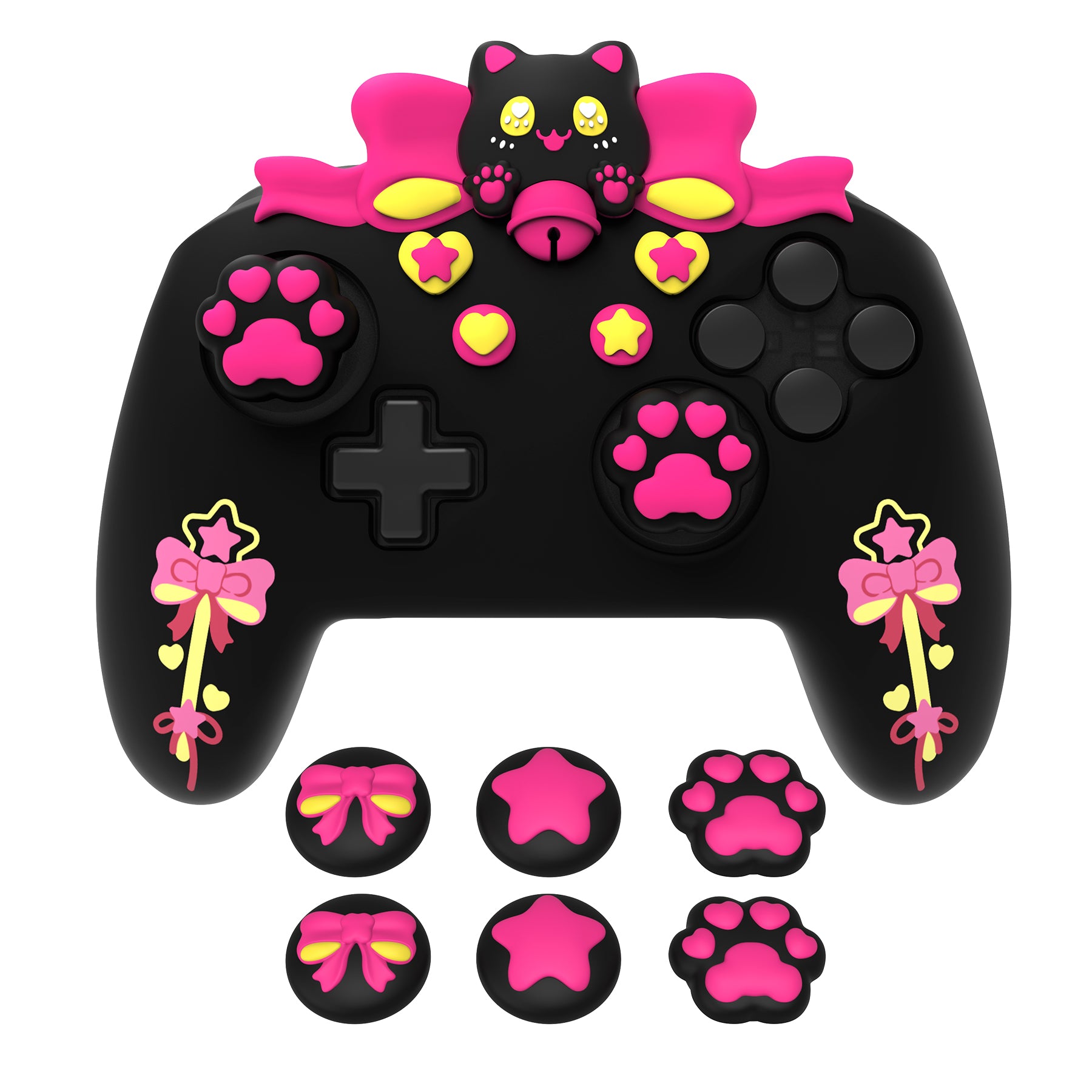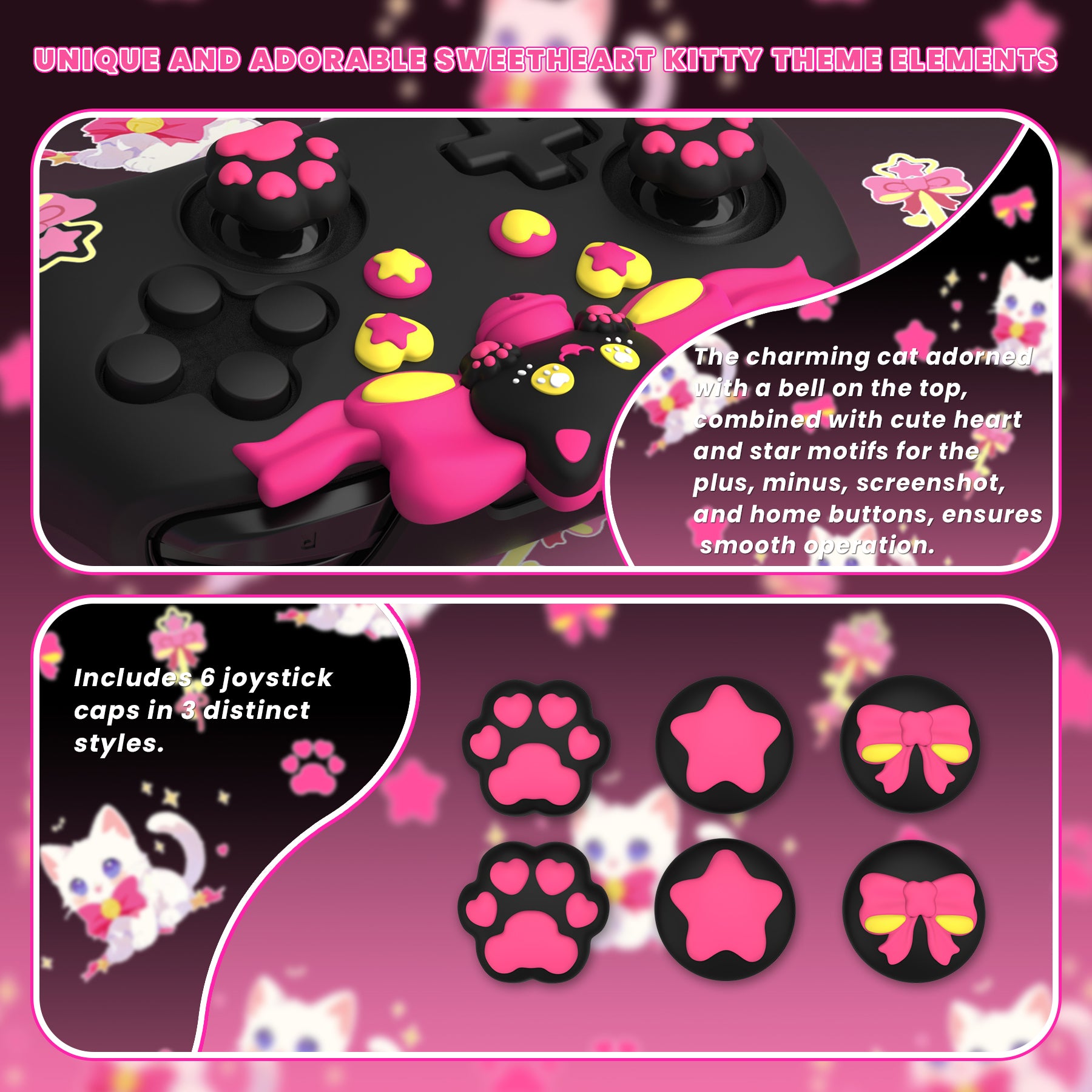 1. PlayVitalのスウィートハートキティシリコンスキンで、Nintendo Switch Pro コントローラーを保護しましょう。可愛く機能的に設計されたこのケースは、遊び心のある猫テーマのデザインとプレミアムな保護を兼ね備えています。ご注意:このシリコンカバーは、Switch 2 Proコントローラーには対応しておりません。