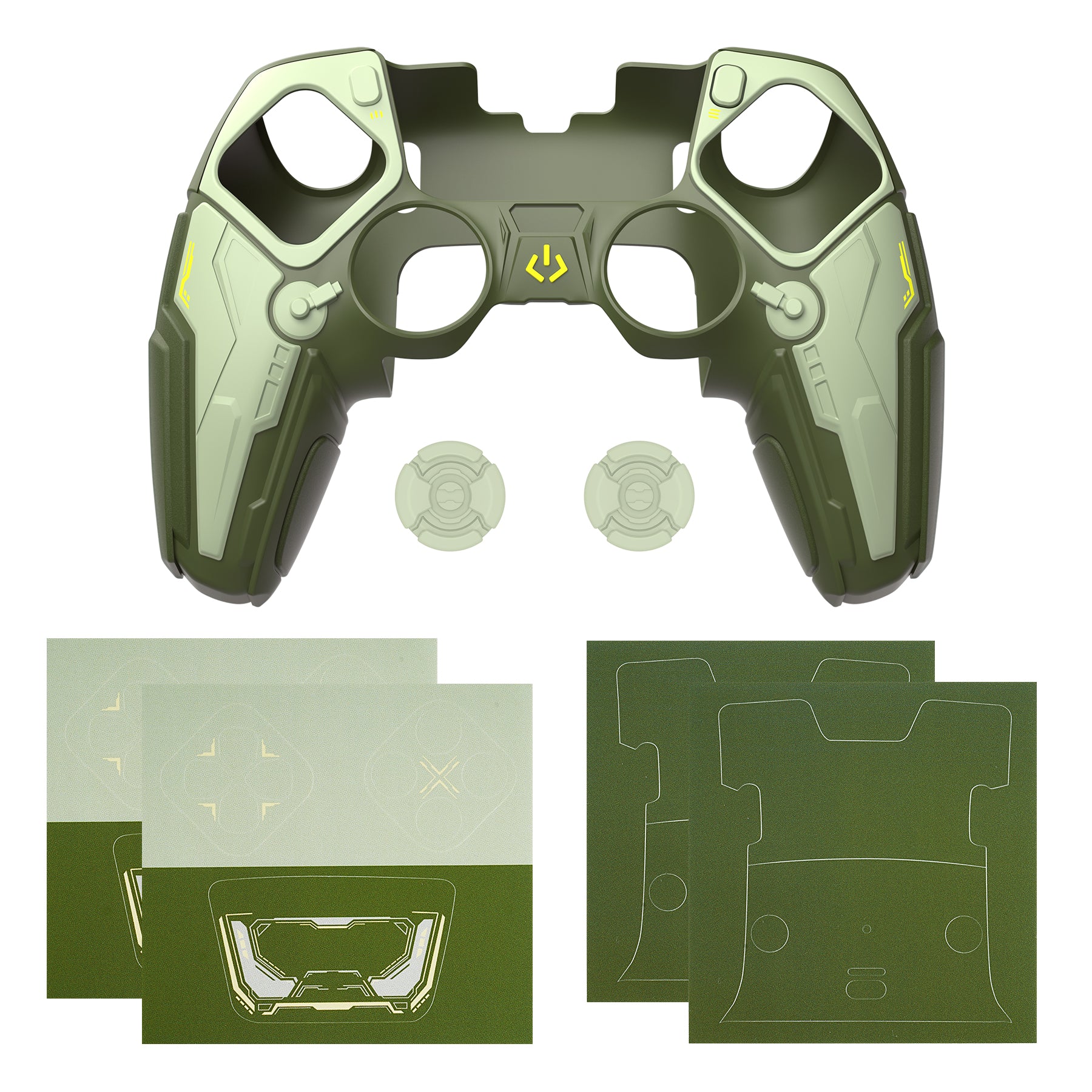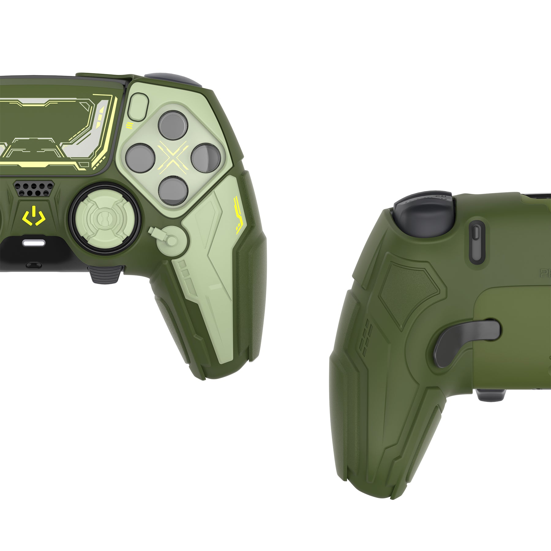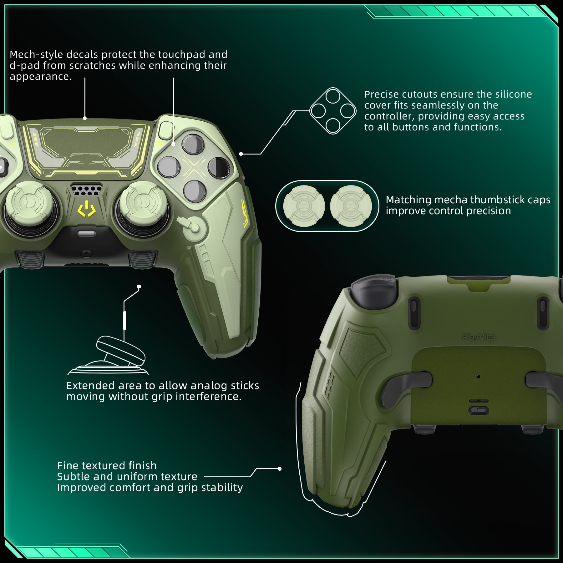 PlayVital メカニカル シリーズ PS5 Edge コントローラー用 シリコンケース ジョイスティックキャップ&ステッカー付き 滑り止め グリップカバーv【グリーン】