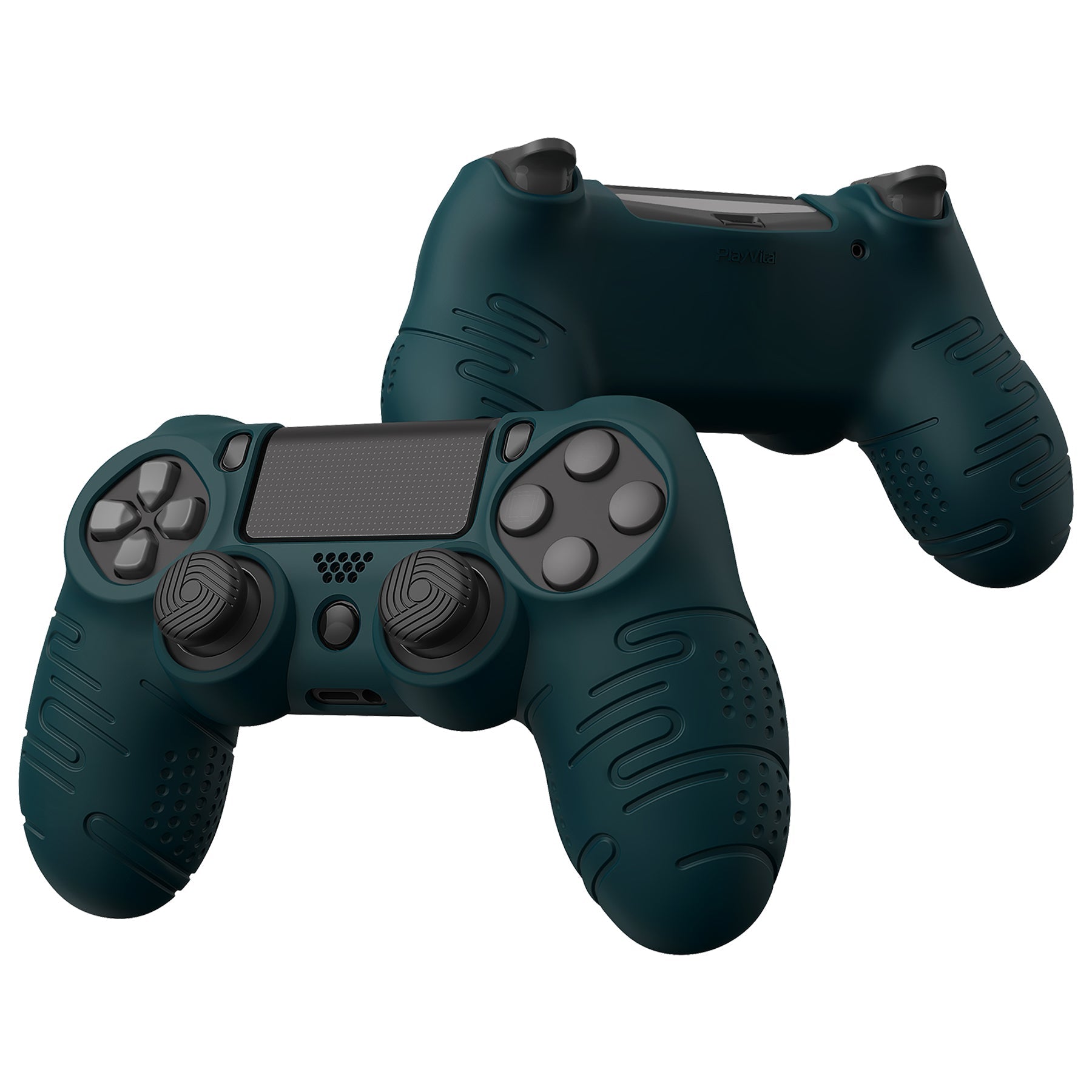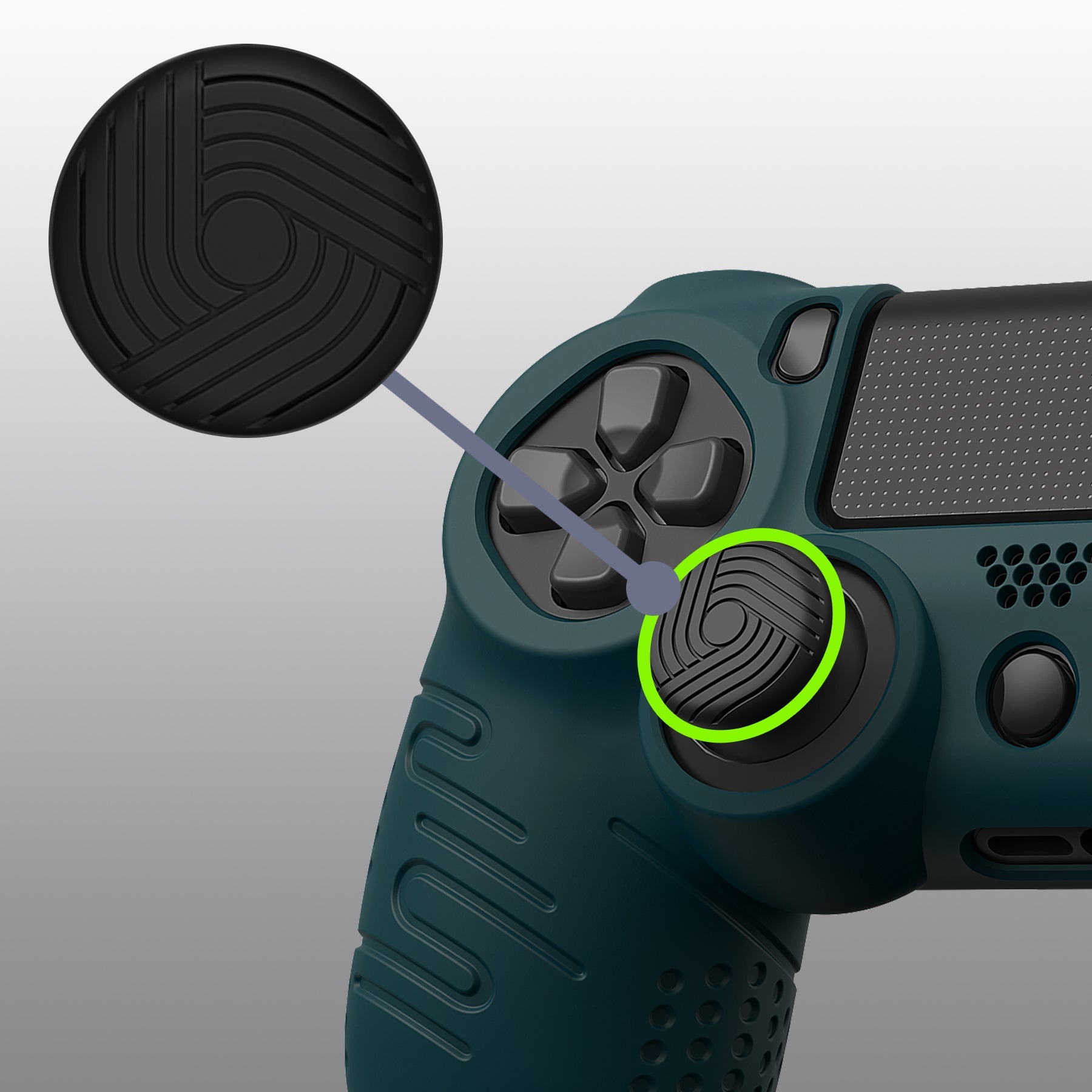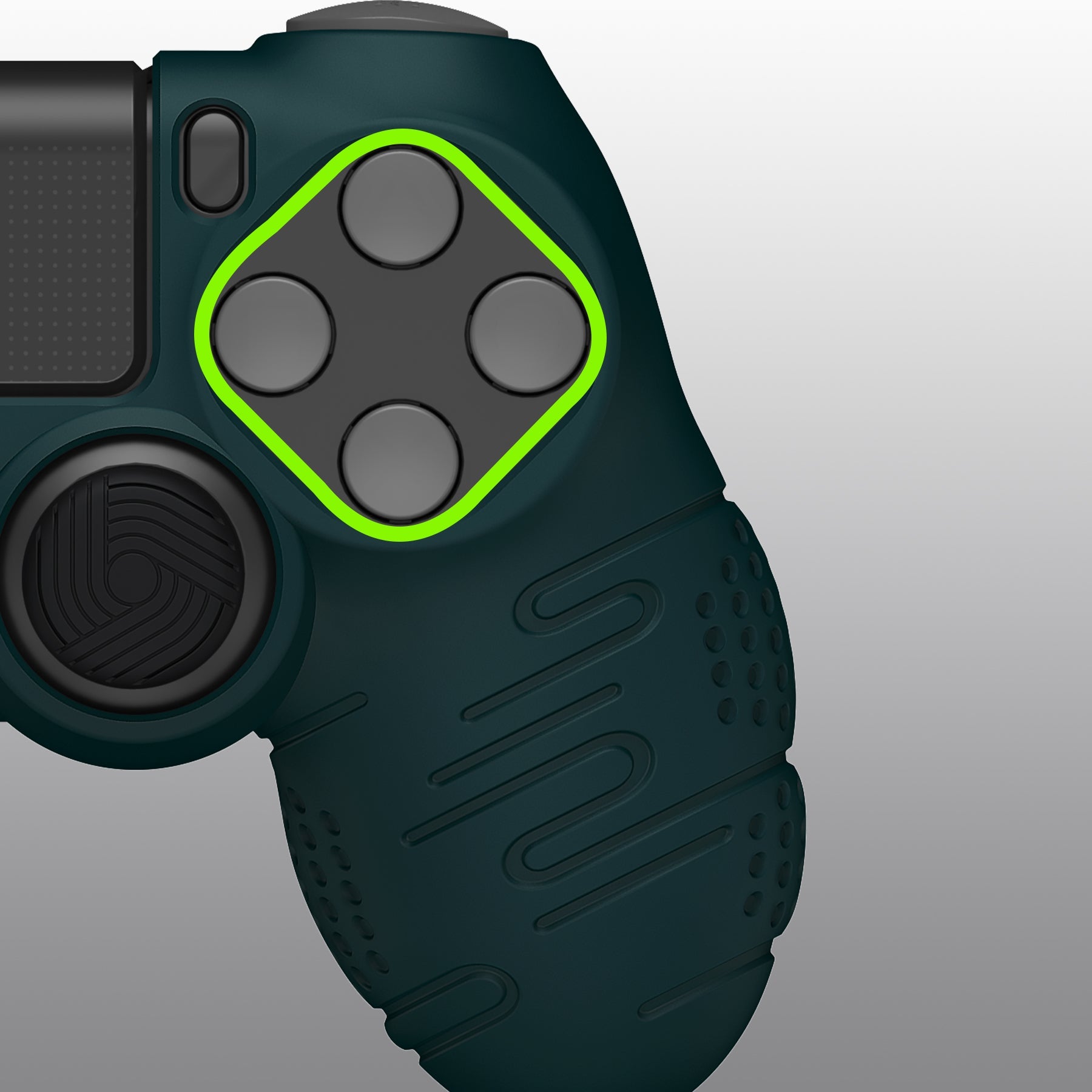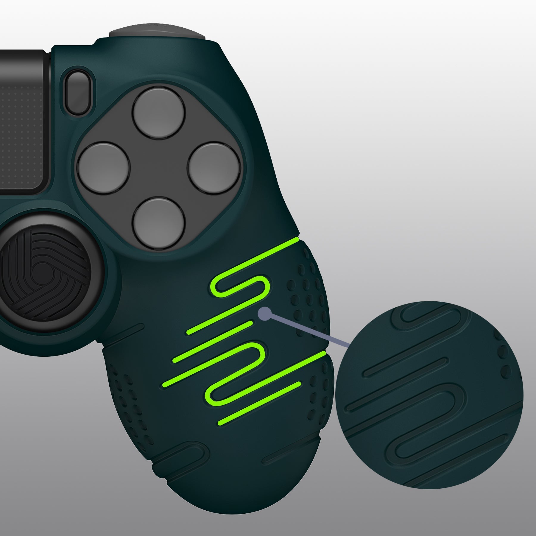PlayVital Line & Dot シリコン カバー スキン サムグリップキャップ付き PS4 Slim Pro コントローラー用【レーシンググリーン】