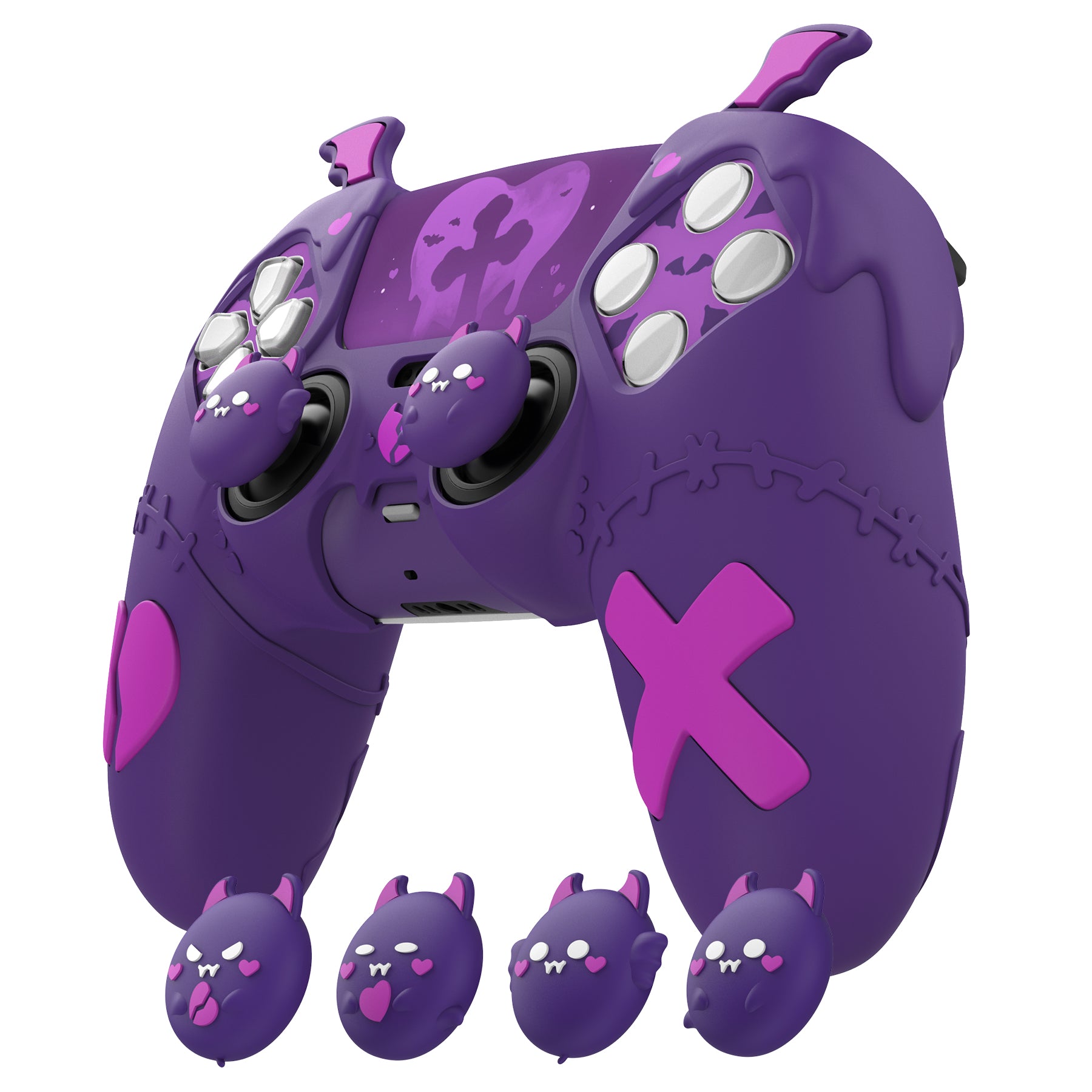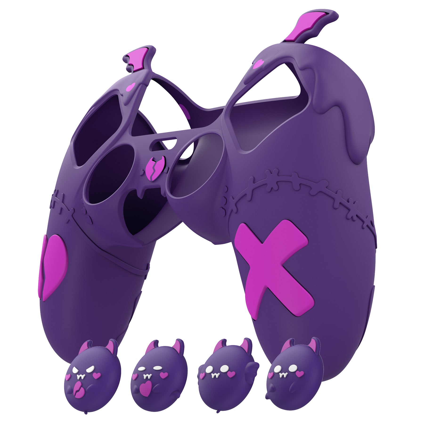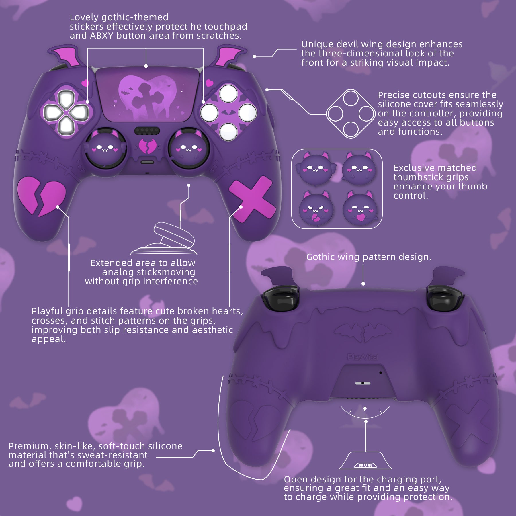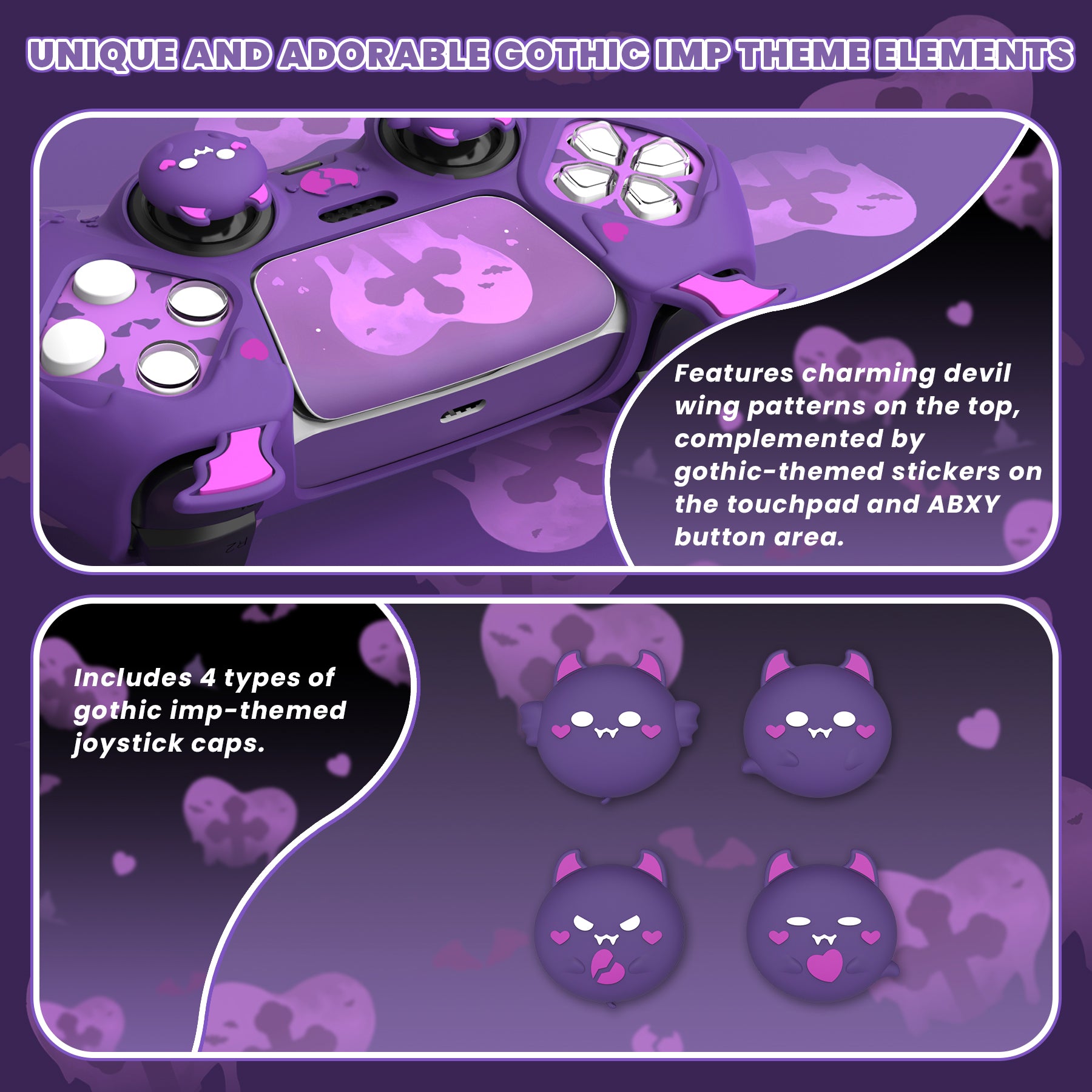 PlayVital ゴシックインプシリーズ かわいいシリコンケース(サムグリップとステッカー付き) PS5コントローラー用、PS5公式充電ドック対応【パープル】