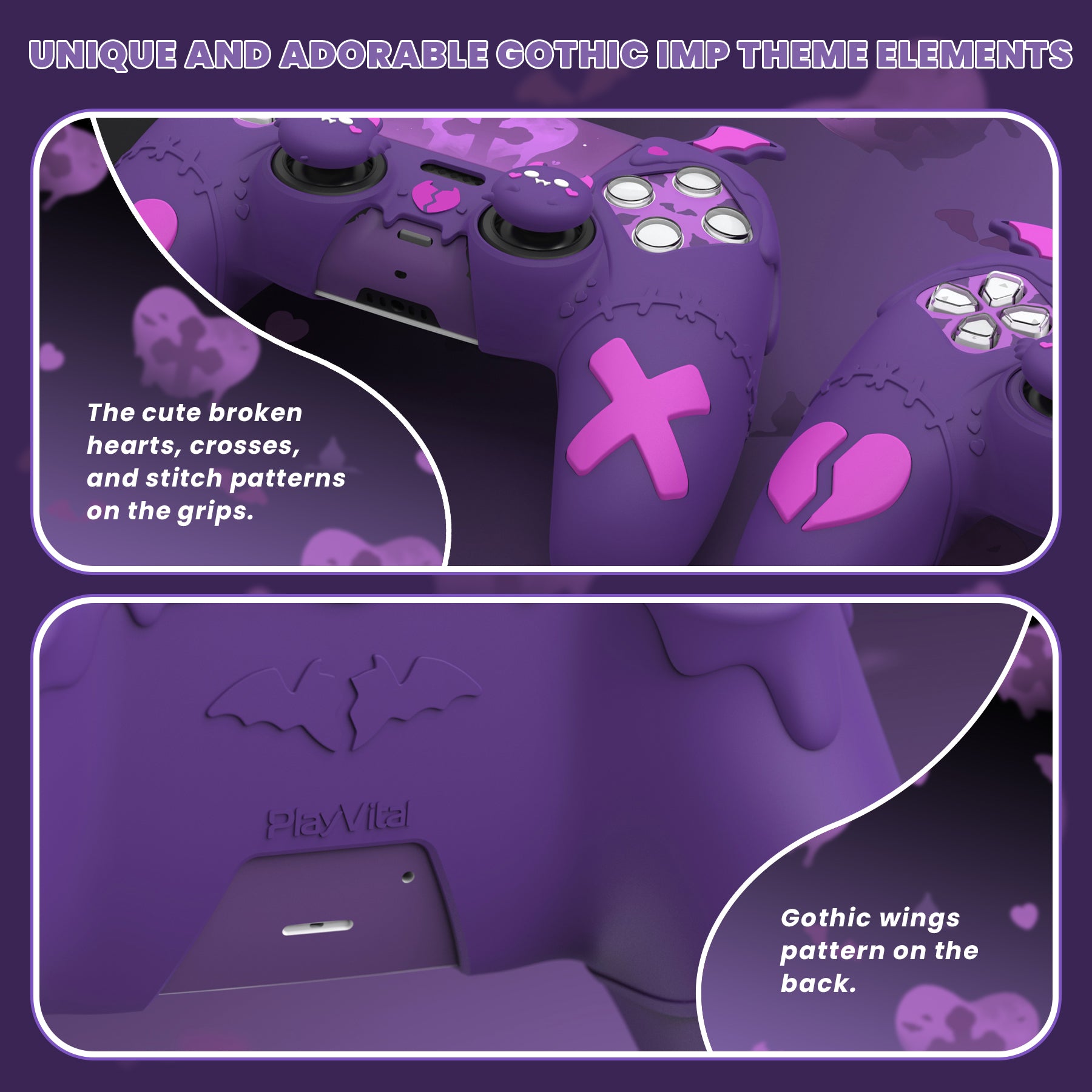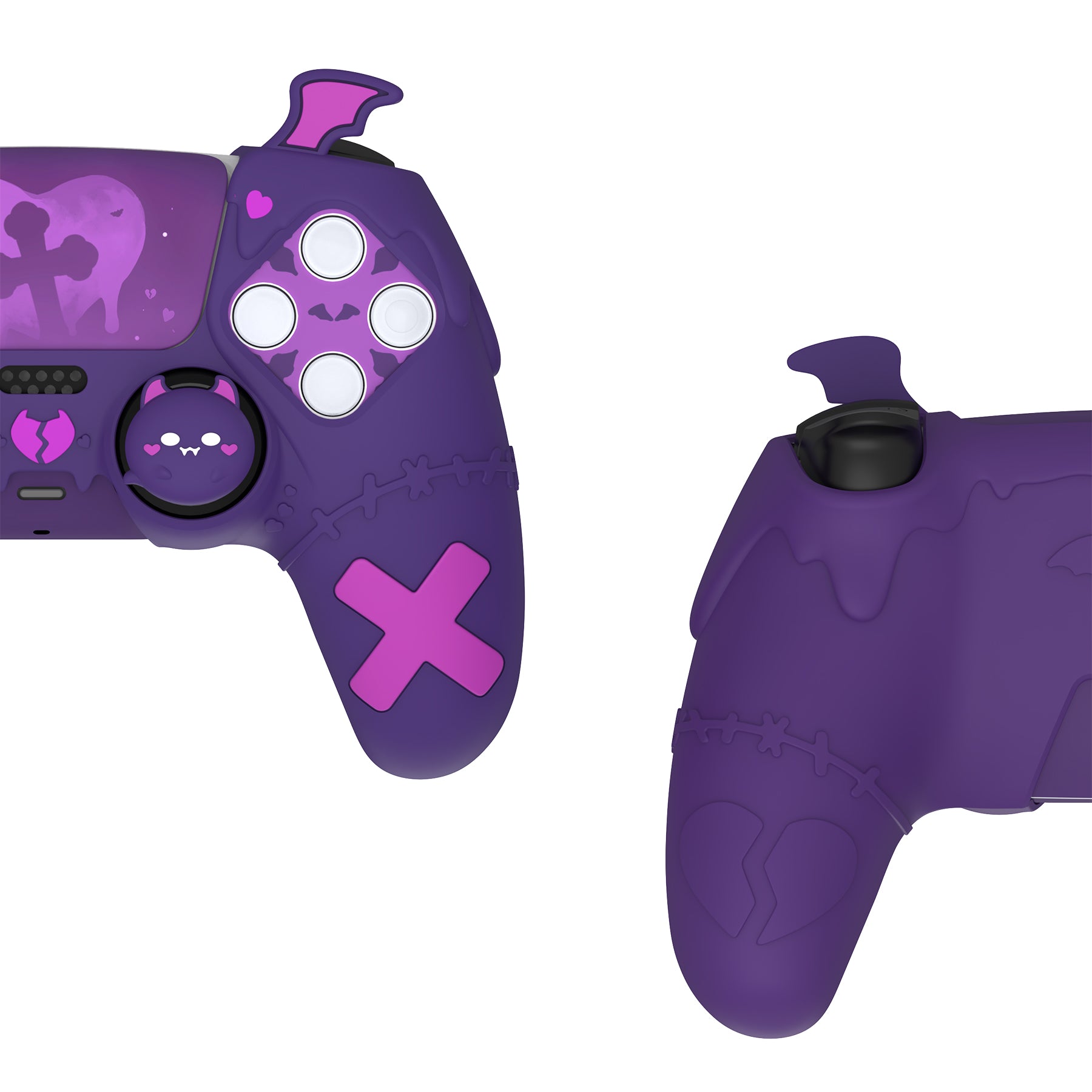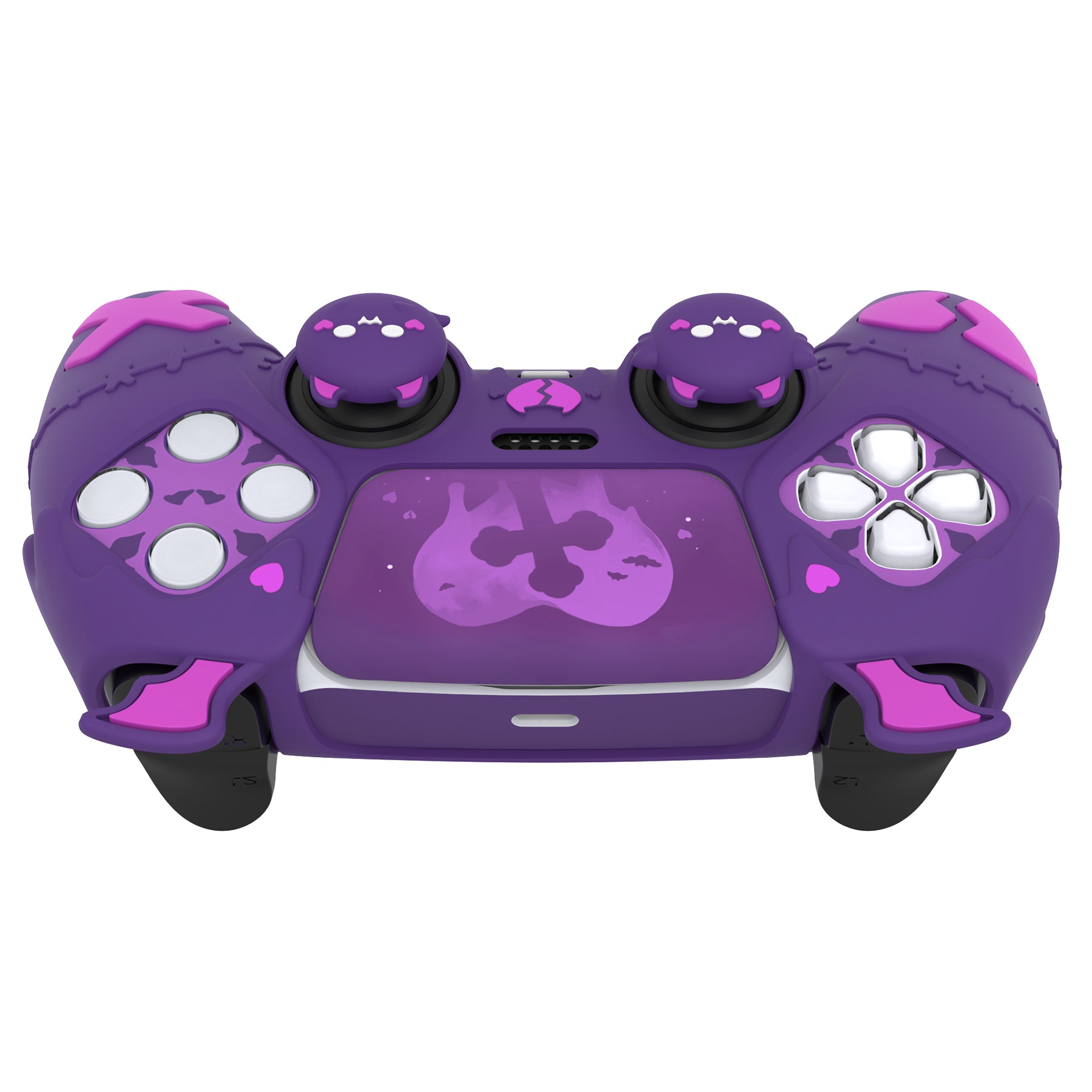 PlayVital ゴシックインプシリーズ かわいいシリコンケース(サムグリップとステッカー付き) PS5コントローラー用、PS5公式充電ドック対応【パープル】