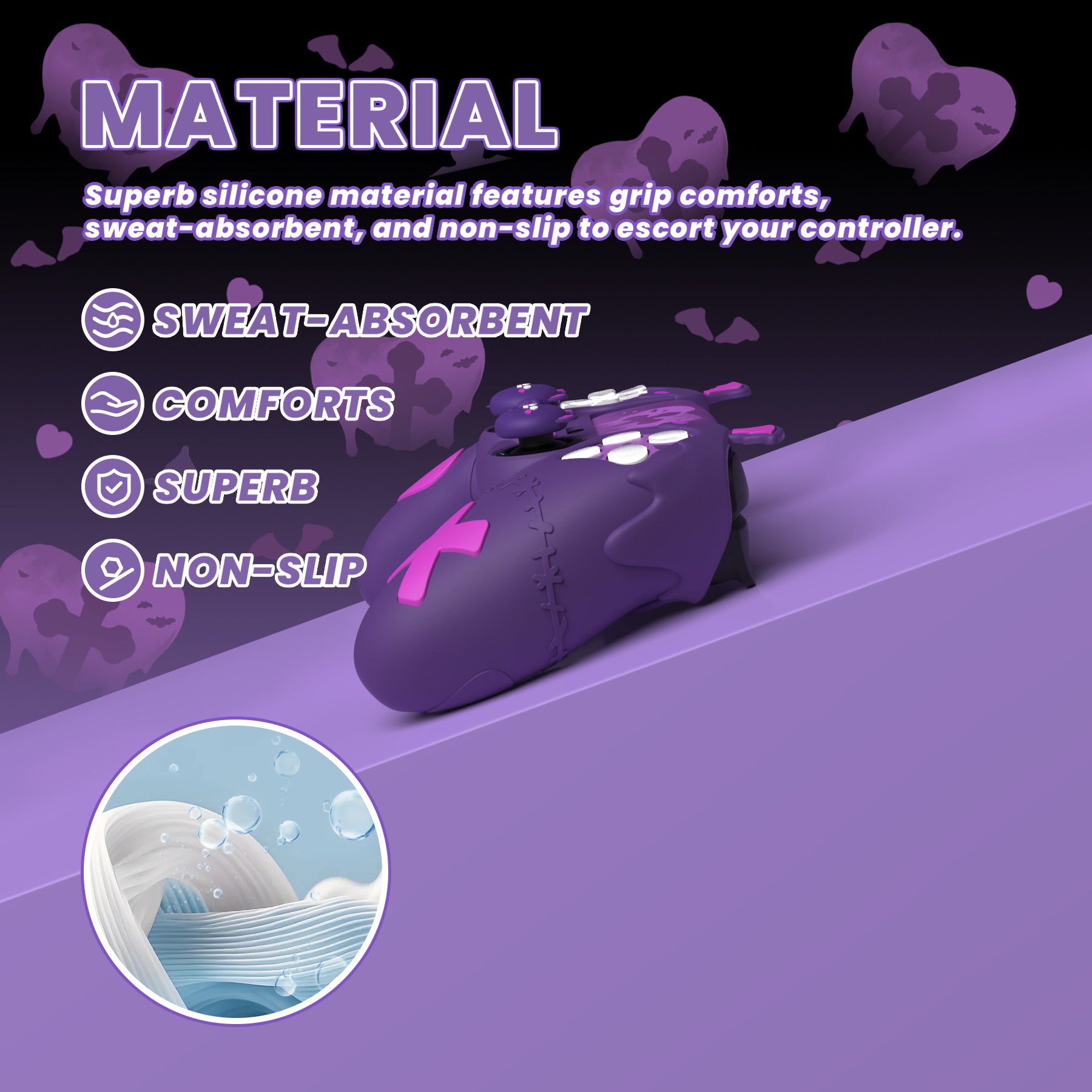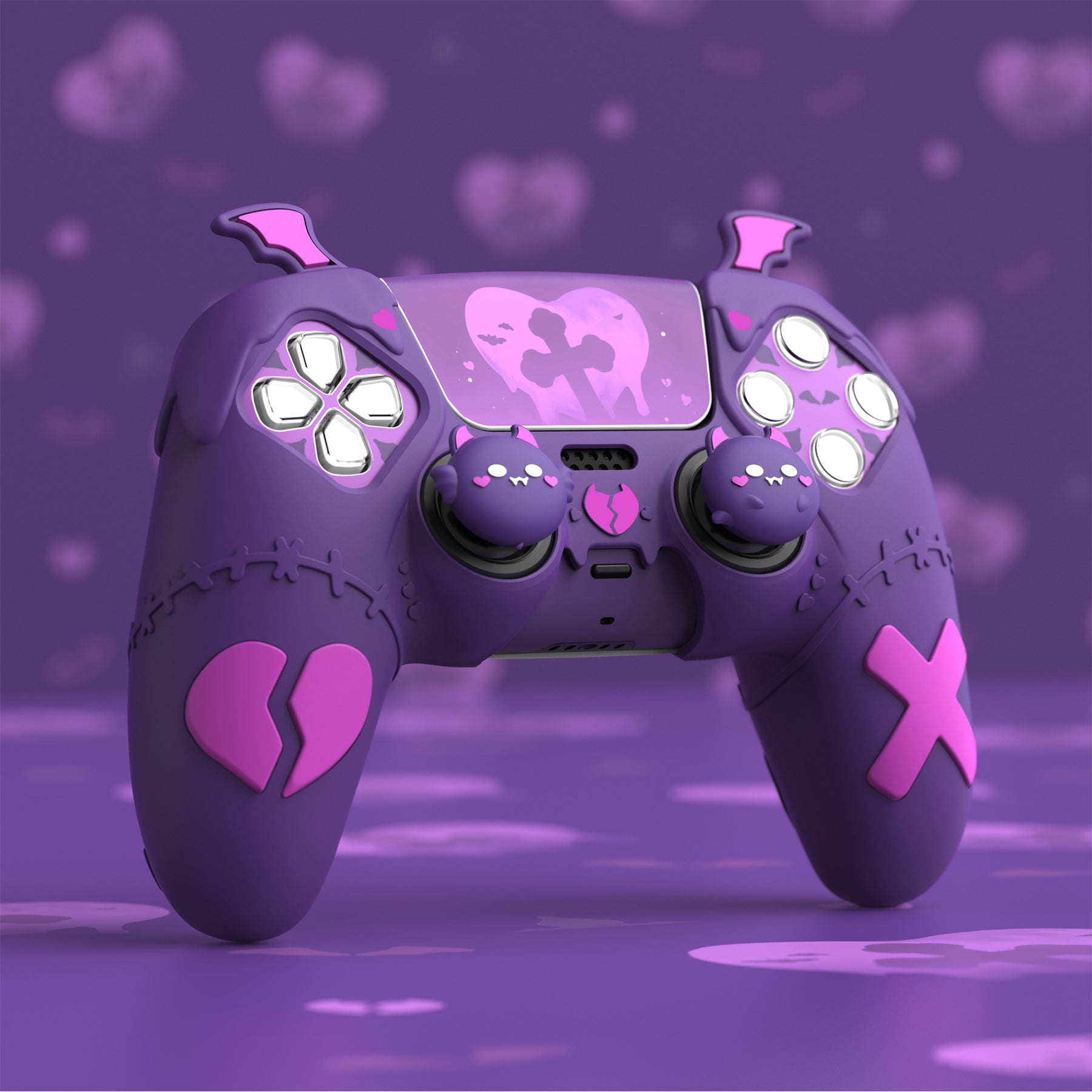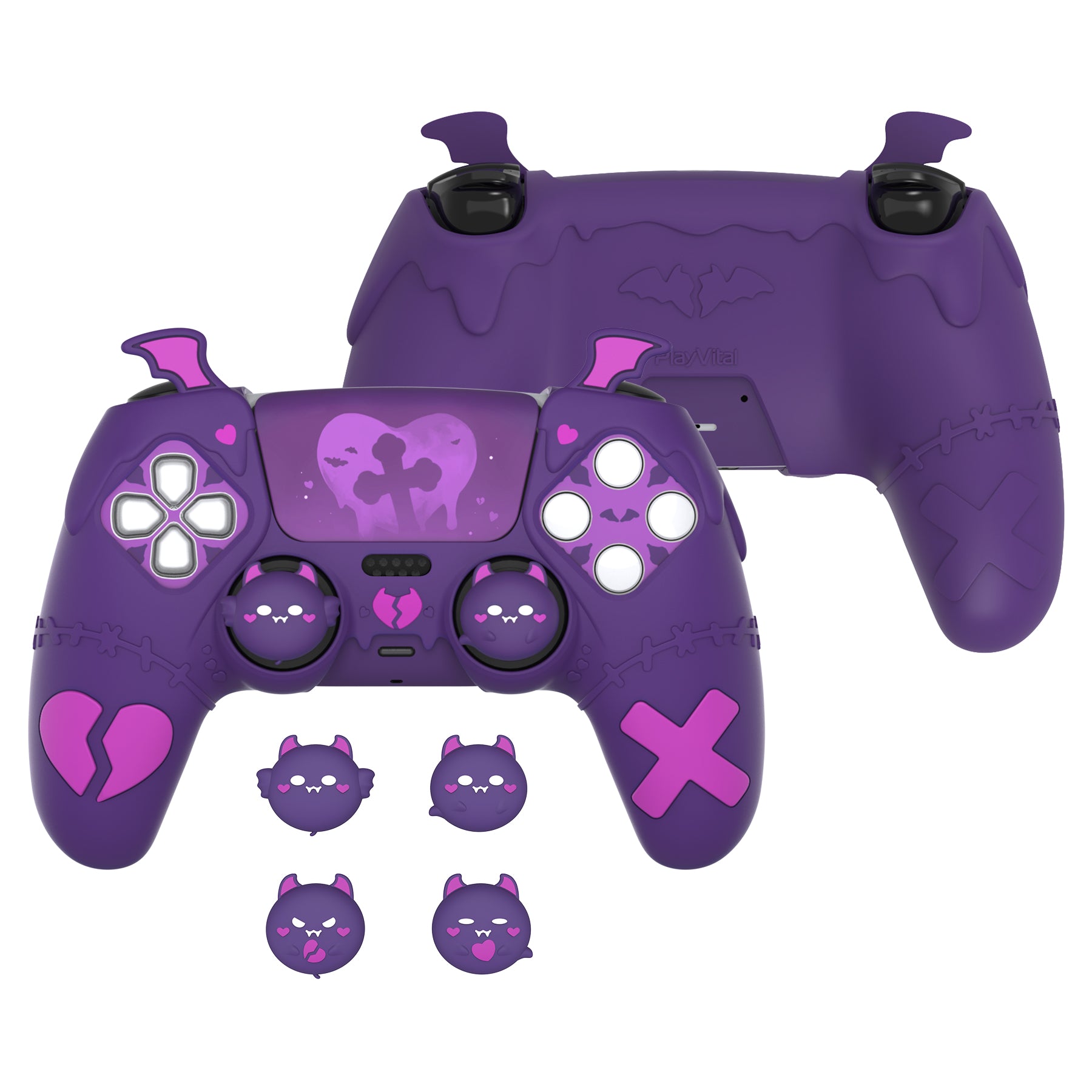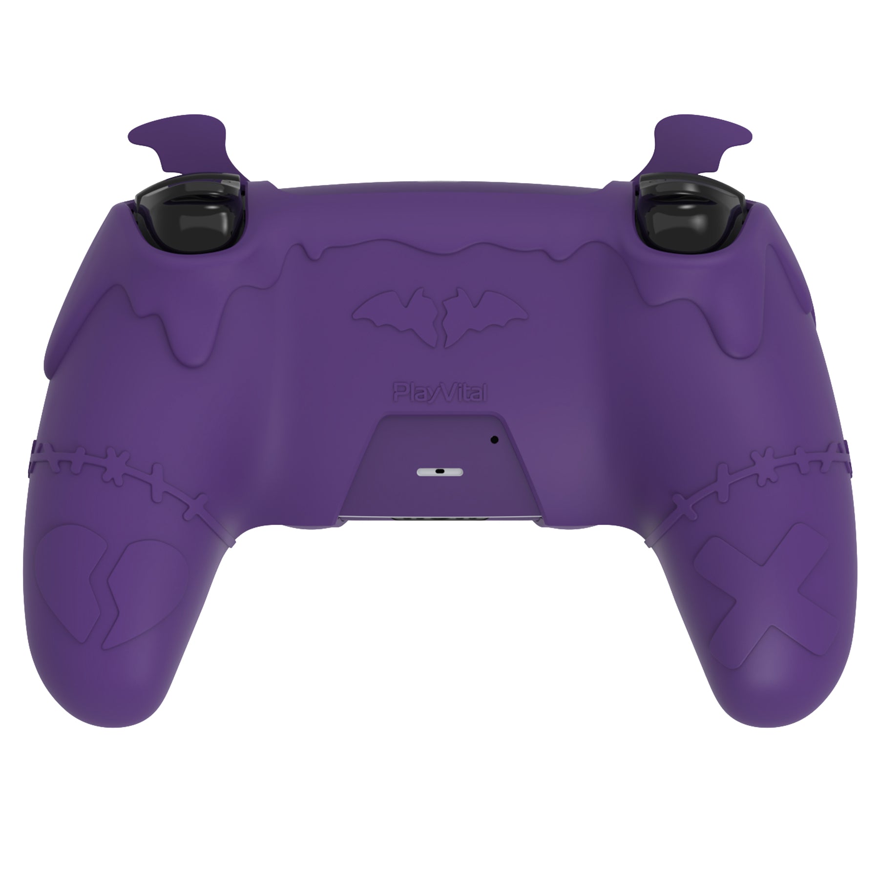PlayVital ゴシックインプシリーズ かわいいシリコンケース(サムグリップとステッカー付き) PS5コントローラー用、PS5公式充電ドック対応【パープル】