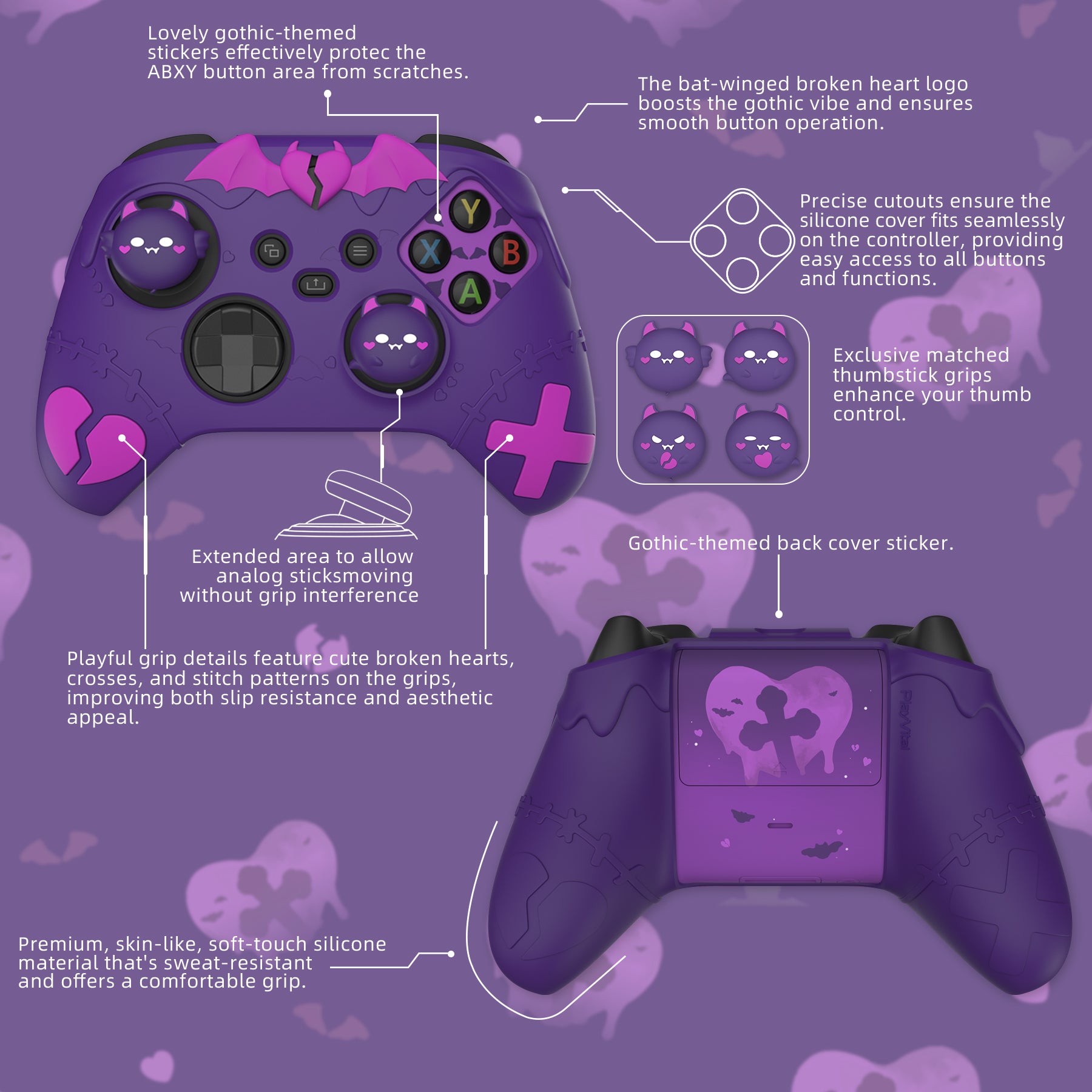 PlayVital ゴシックインプシリーズ かわいいシリコンスキン Xbox Series X/S コントローラーおよび Xbox Core ワイヤレスコントローラー用【パープル】