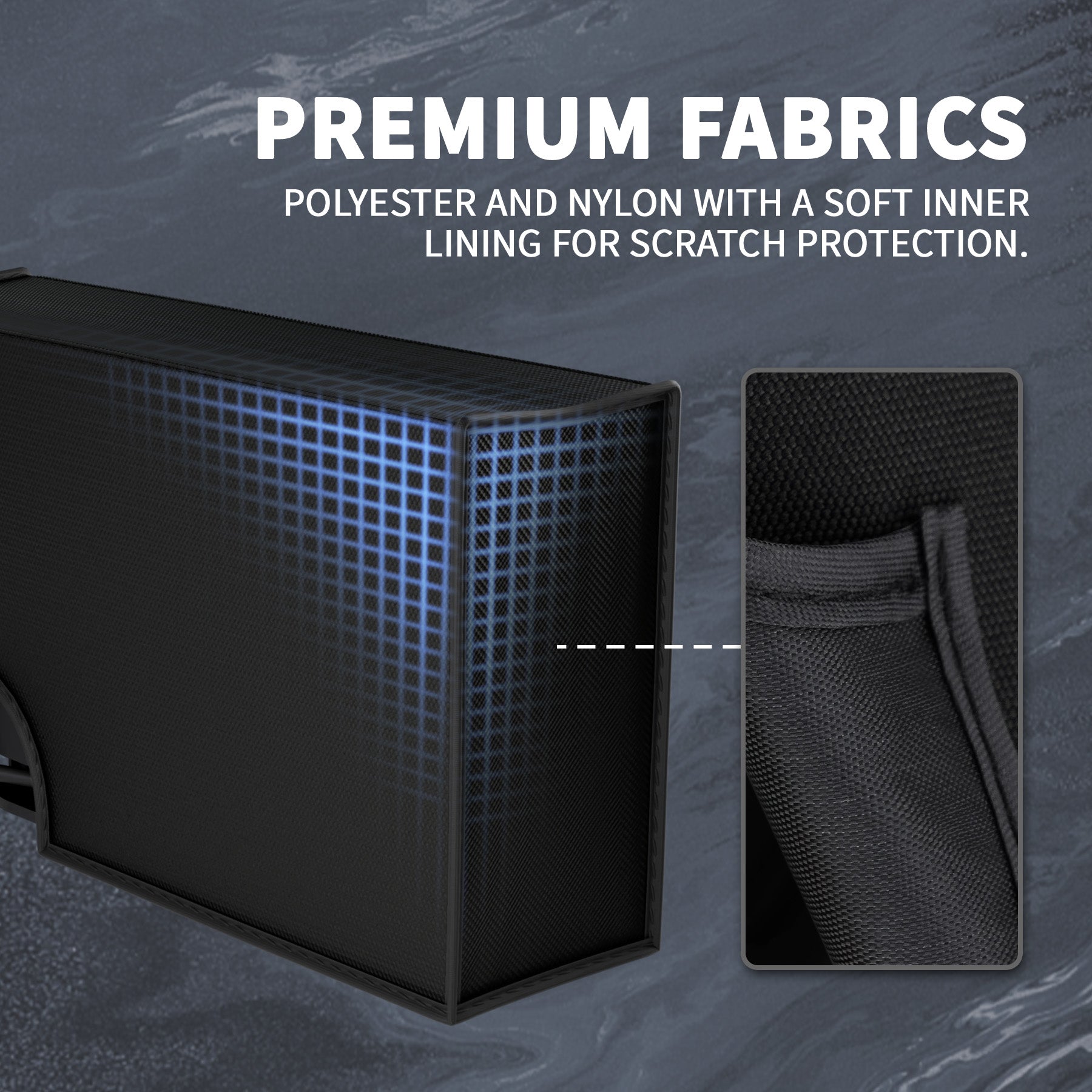 2. 高品質なナイロンとポリエステル素材を使用し、内側には柔らかな裏地を採用。デリケートな機器を優しく守りながら、丈夫な二重構造でほこり、軽い擦り傷、紫外線、湿気、ペットの毛などから本体をしっかり保護します。
