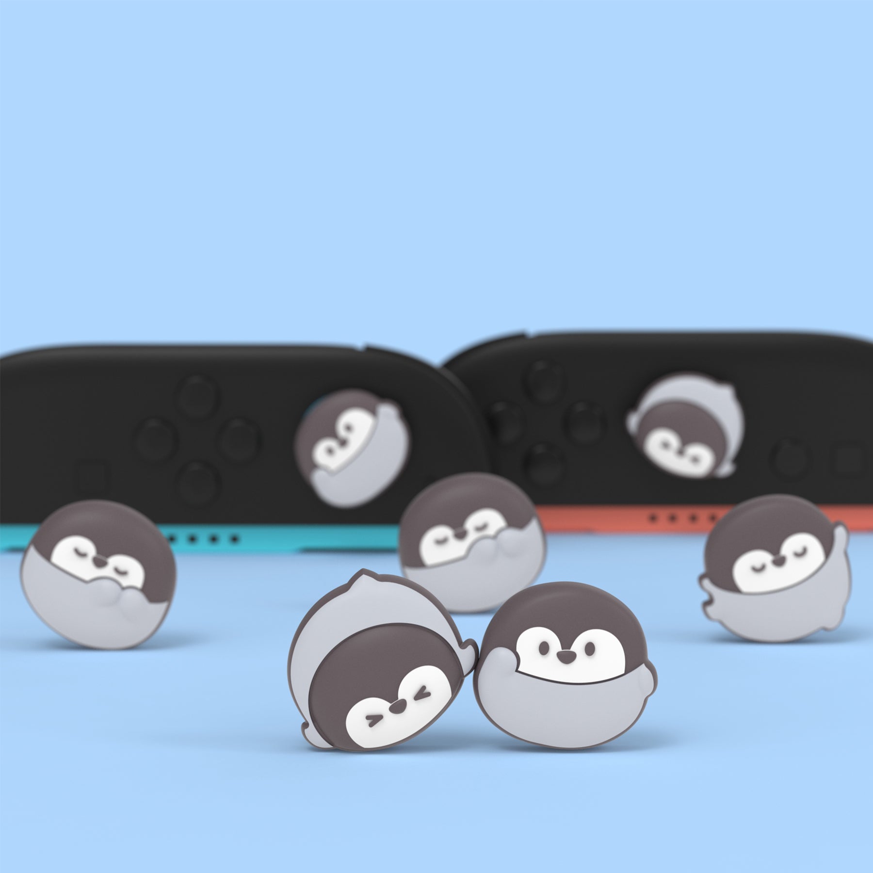 PlayVital Switch 2(2025年新モデル)対応 親指グリップキャップ 4個セット かわいいシリコン製スティックカバー Joycon用 耐久性ある 【ペンギンちゃん】