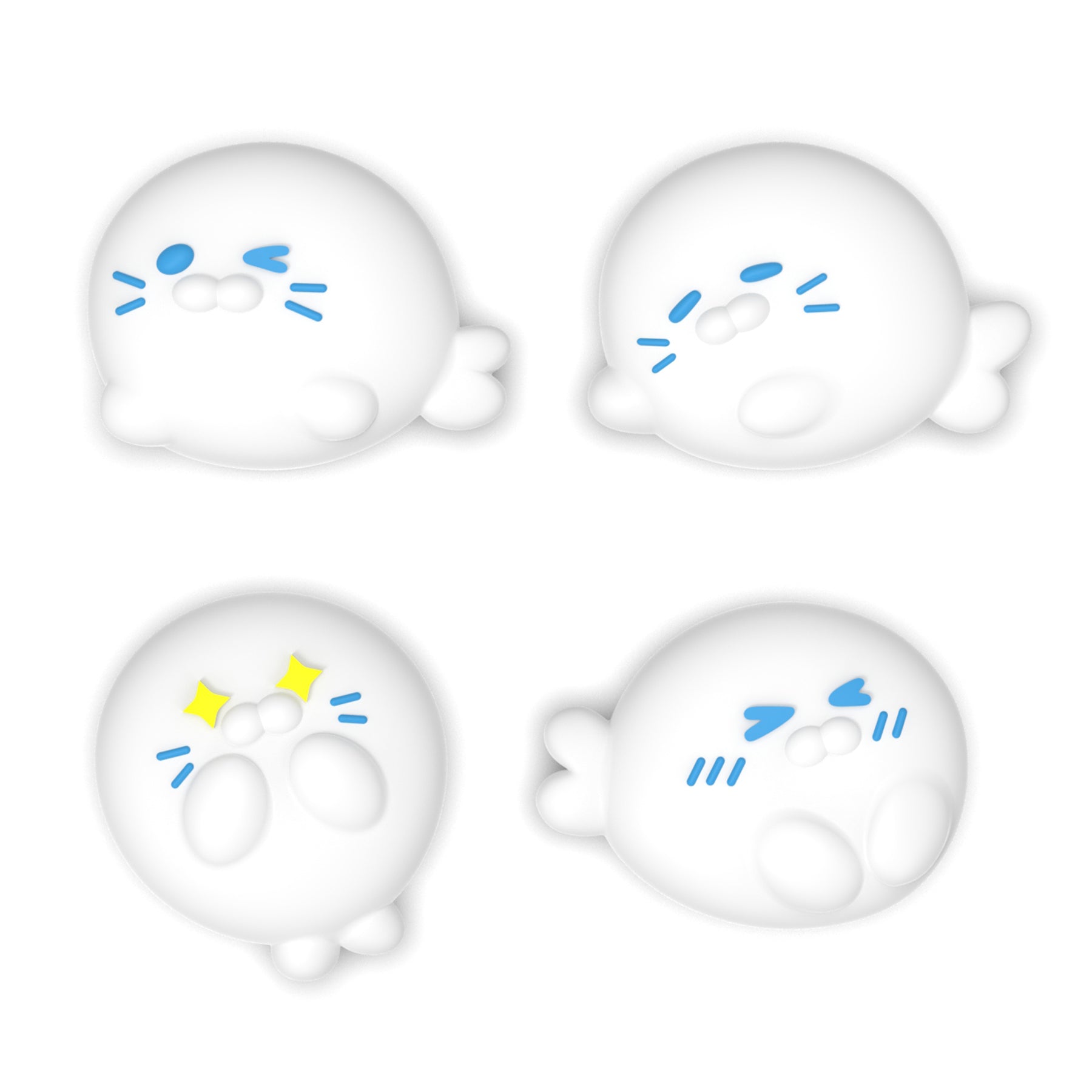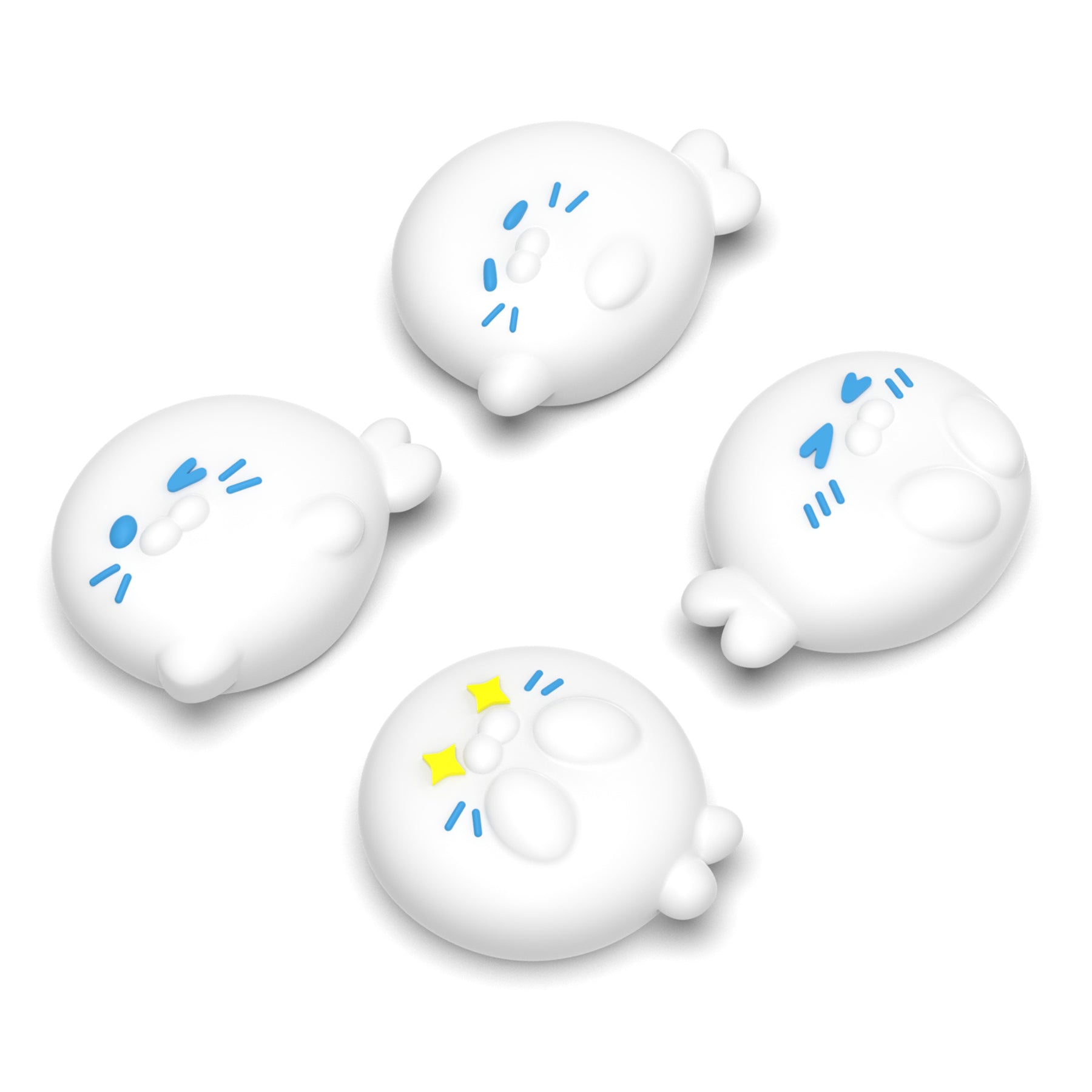 PlayVital Switch 2(2025年新モデル)対応 親指グリップキャップ 4個セット かわいいシリコン製スティックカバー Joycon用 耐久性ある 【キューティーアザラシ隊】