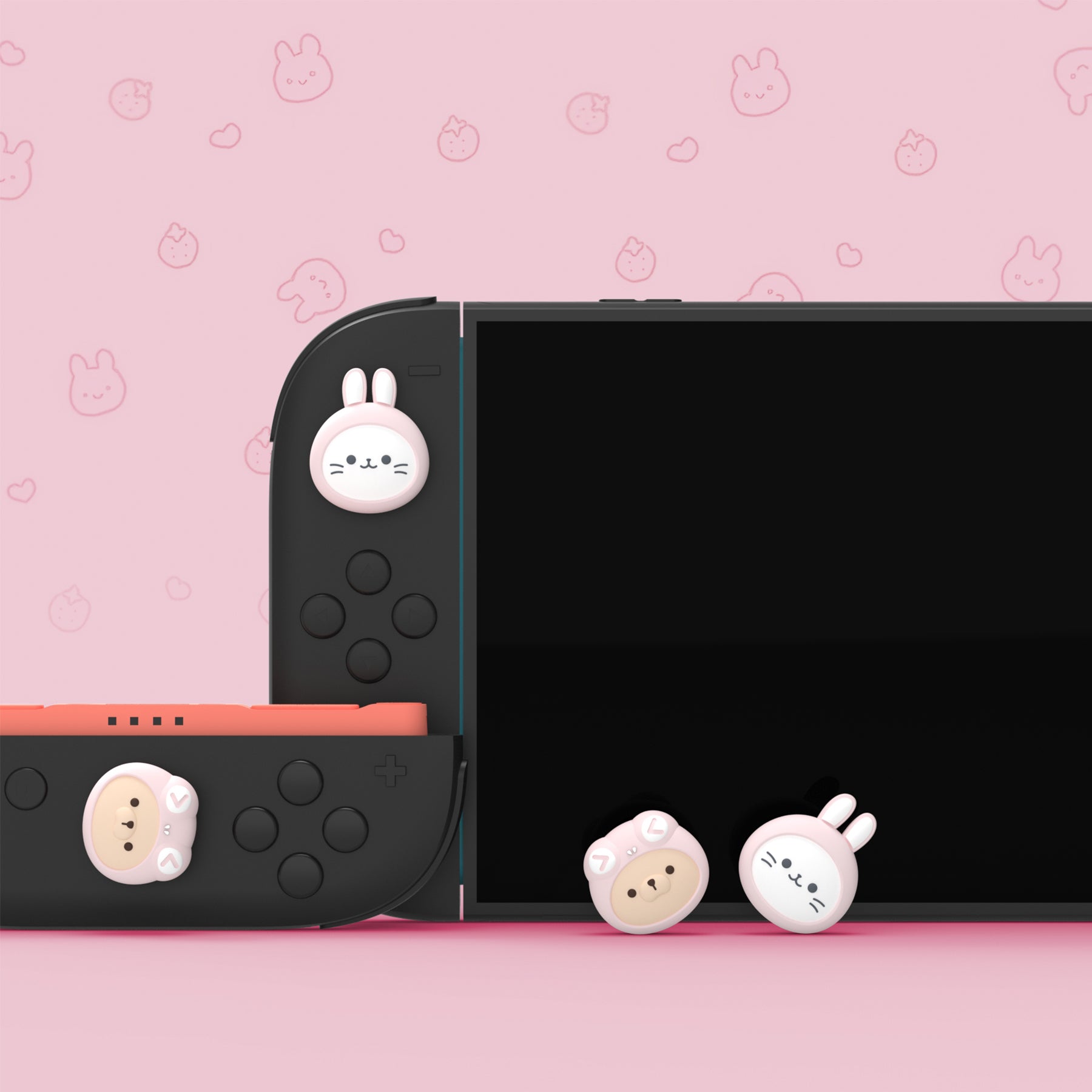 PlayVital Switch 2(2025年新モデル)対応 親指グリップキャップ 4個セット かわいいシリコン製スティックカバー Joycon用 耐久性ある 【ウサギの着ぐるみ猫やカエルの着ぐるみ犬】