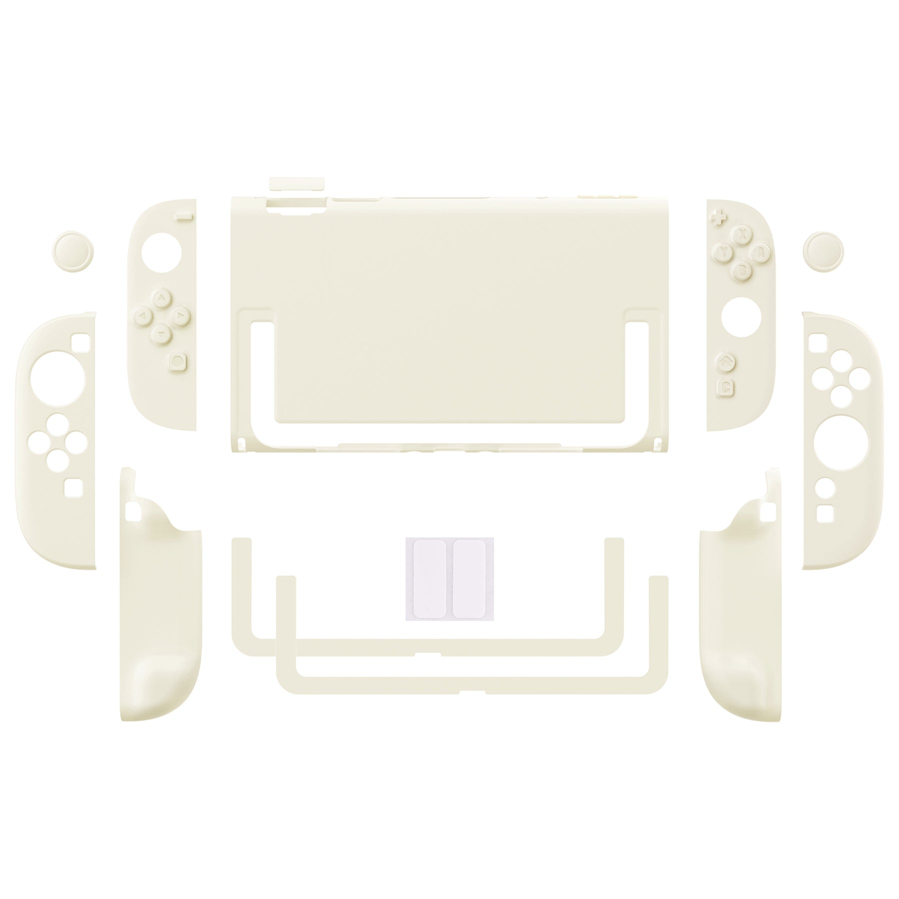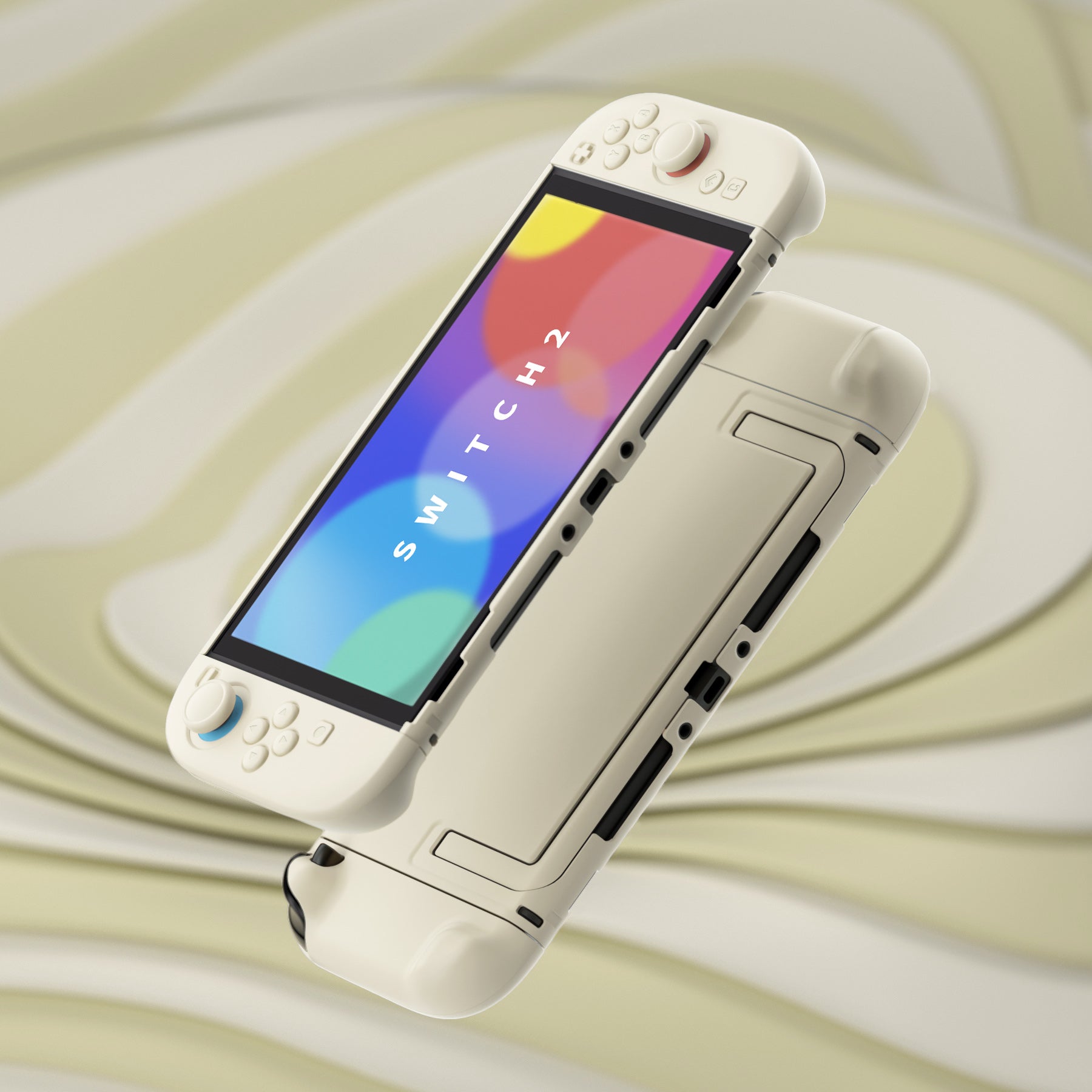 PlayVital Switch2対応 キュートな単色デザイン ハード保護ケース switch2背面キックスタンド使用可能ハードカバーケース 着装したままドック対応 キズ防止 耐衝撃 サムグリップ&ボタンキャップ&ステッカー付属【アイボリー】