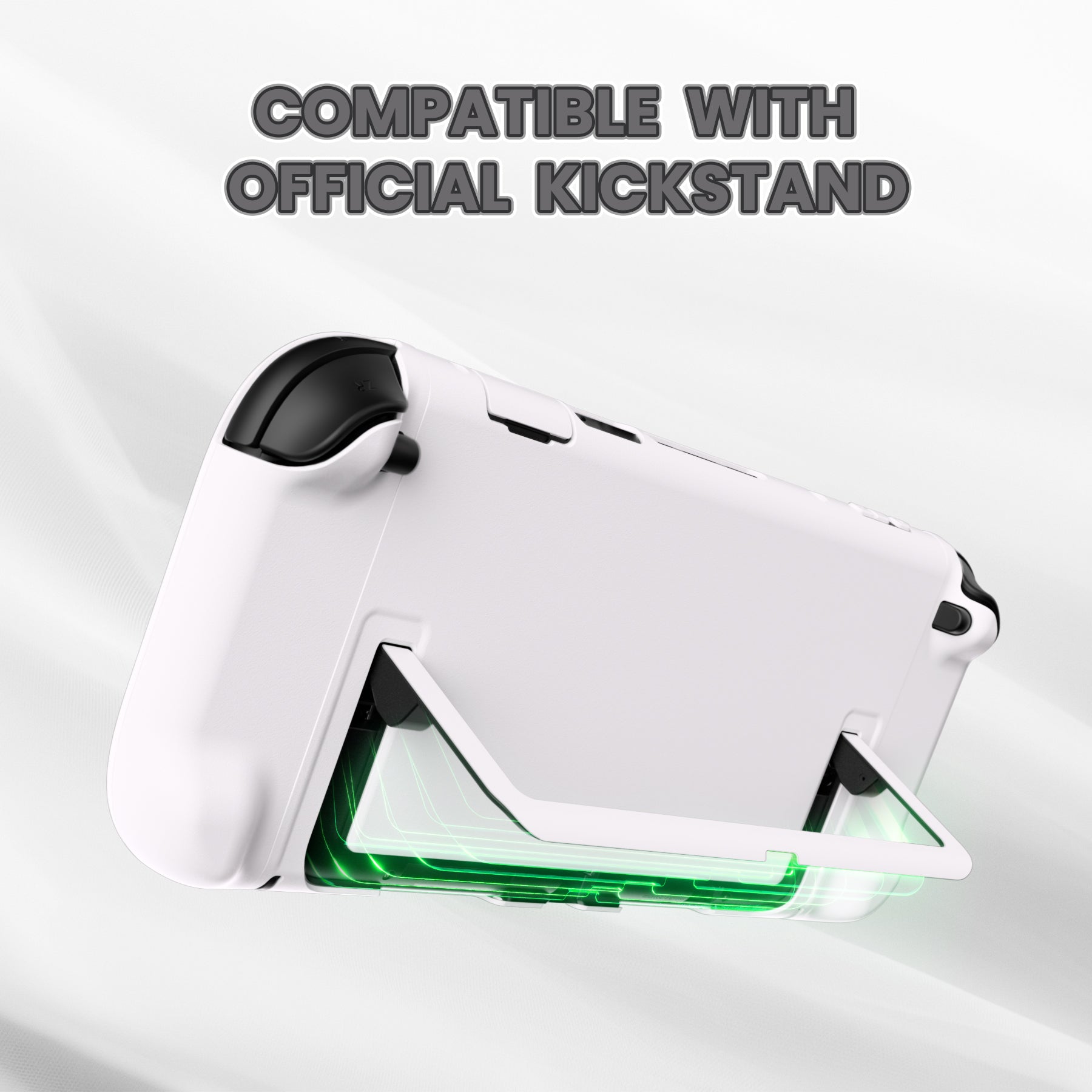 4. 3ピース分割構造により、携帯モード・テーブルモード・TVモードへの切り替えがスムーズに行えます。サイドコントローラー下部のアーチ型グリップが手に自然にフィットし、操作時の負担を軽減しながら、しっかりと固定します。