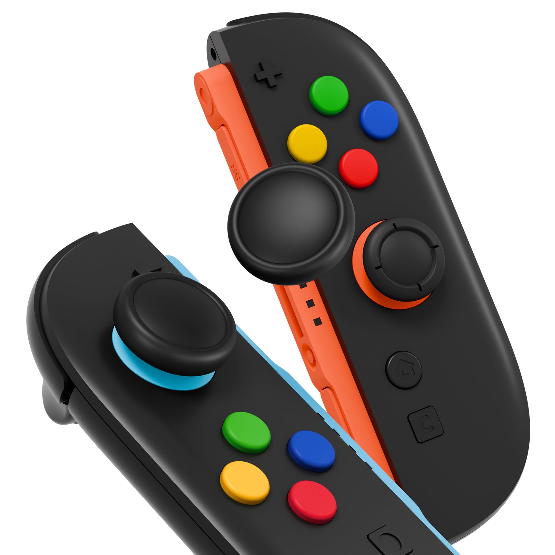 PlayVital Nintendo Switch 2(2025)対応 シリコン製赤黄青緑ボタンカバー&ブラック親指グリップキャップセット Joycon2対応 ABXY&方向ボタン用キャップ