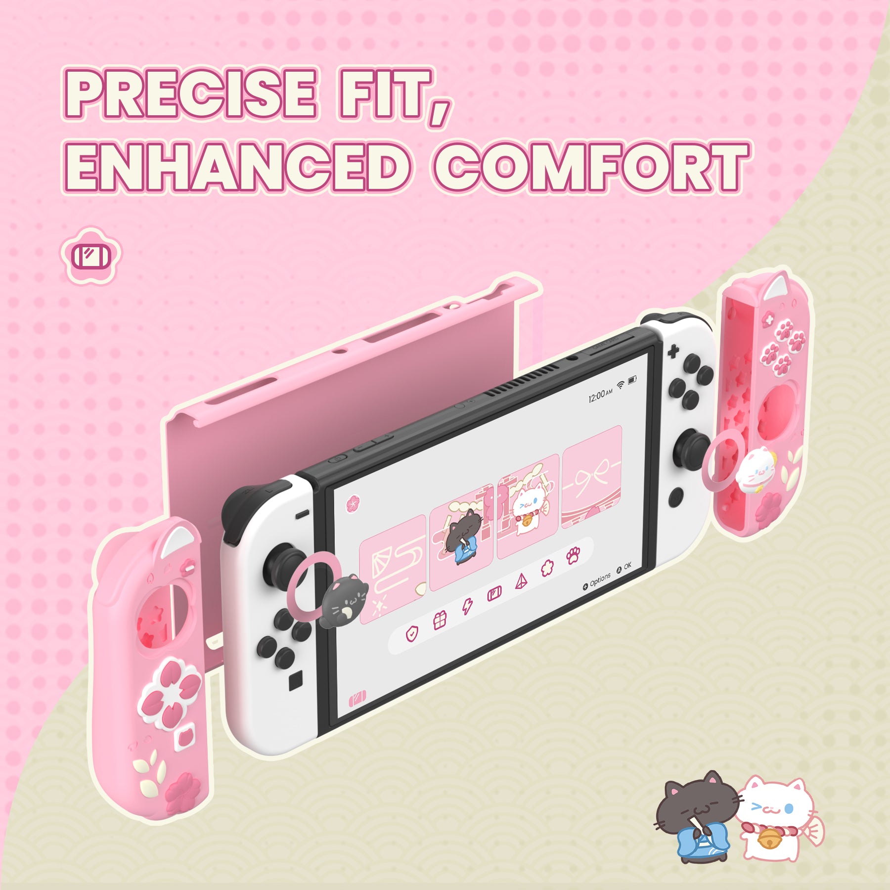 4. Joy-Con用ソフトシリコングリップには、猫耳・肉球・花柄のエンボス加工を施し、携帯モードでの操作性と快適さを向上。お子さまや女性、かわいいデザインが好きな方におすすめです。