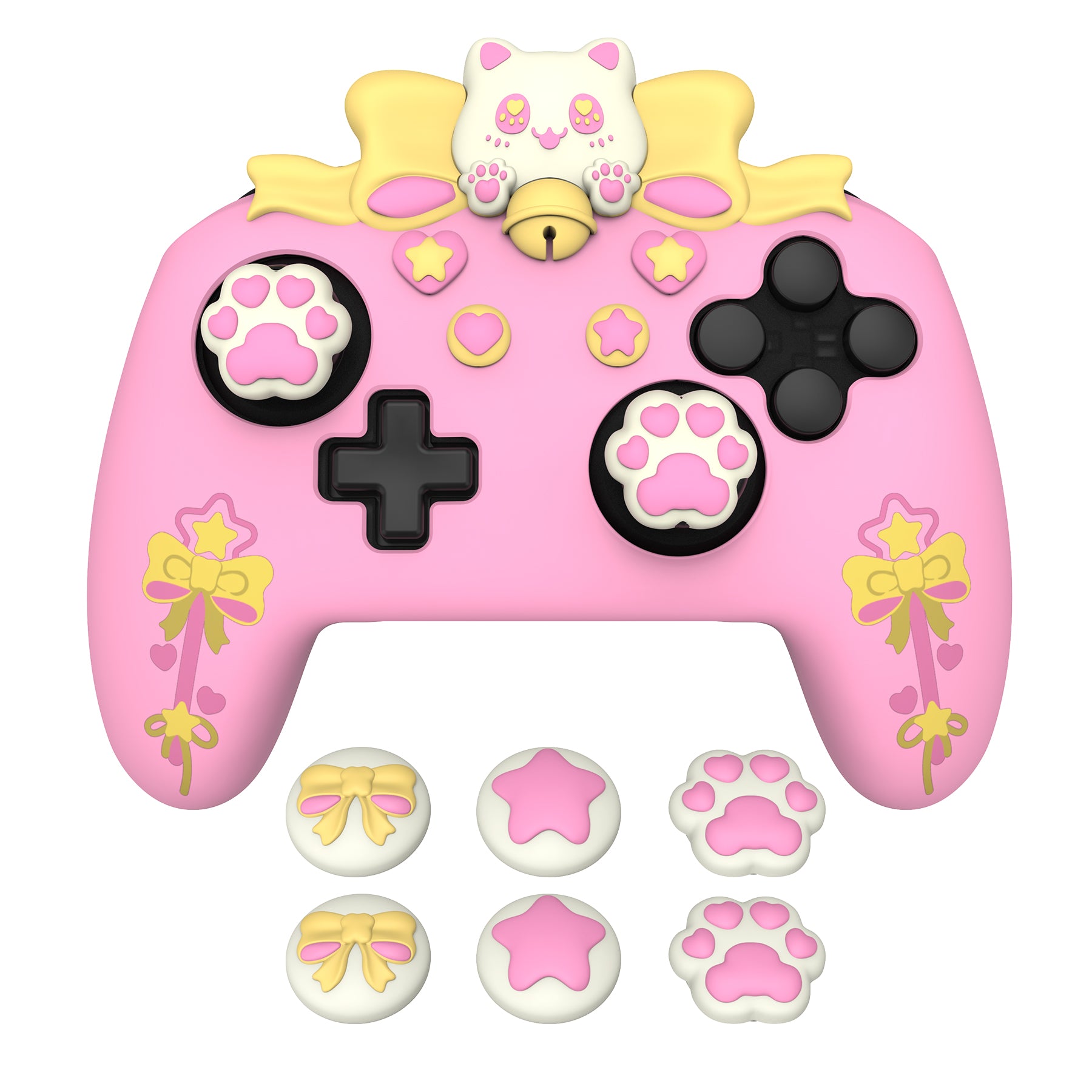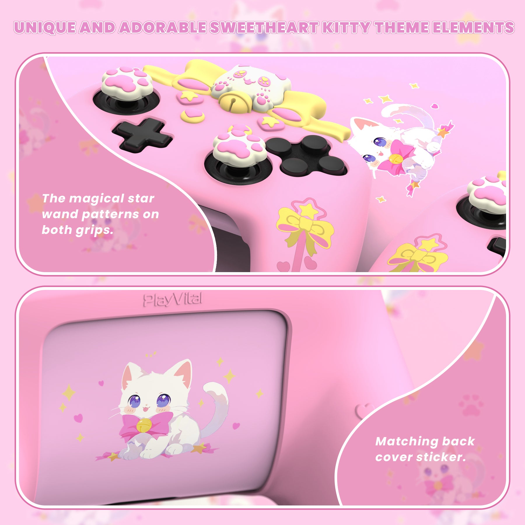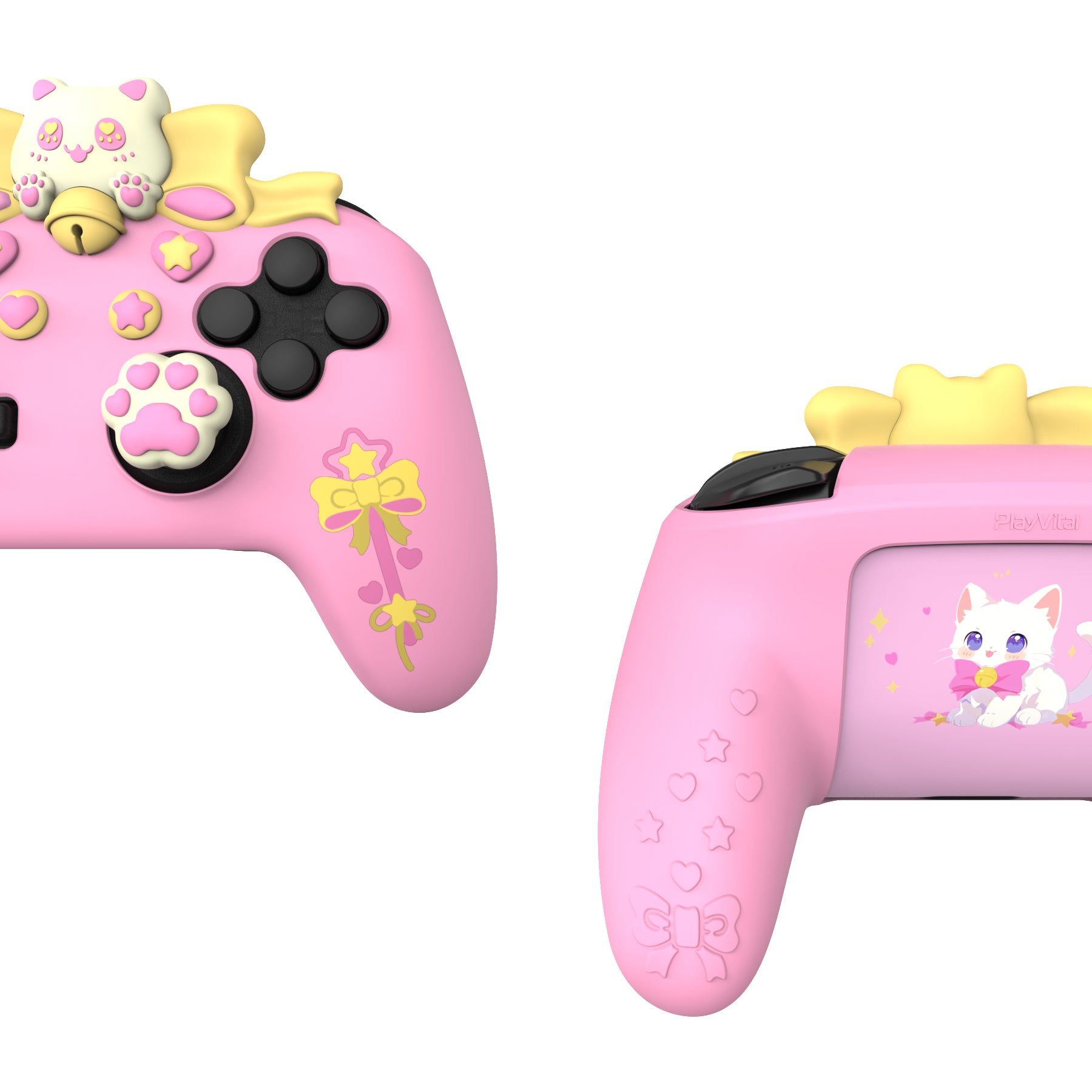 1. PlayVitalのスウィートハートキティシリコンスキンで、Nintendo Switch Pro コントローラーを保護しましょう。可愛く機能的に設計されたこのケースは、遊び心のある猫テーマのデザインとプレミアムな保護を兼ね備えています。ご注意:このシリコンカバーは、Switch 2 Proコントローラーには対応しておりません。