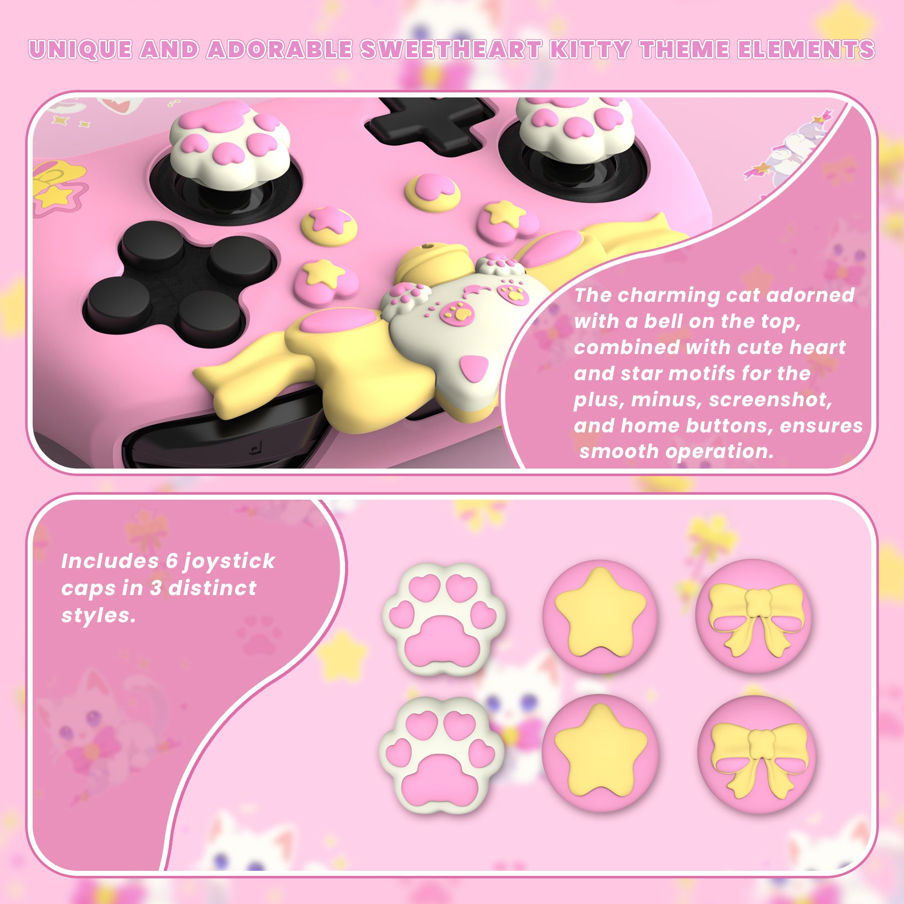 PlayVital スウィートハートキティシリーズ シリコンスキンプロテクティブケース(ジョイスティックグリップ付き) Nintendo Switch Pro コントローラー用【ピンク】