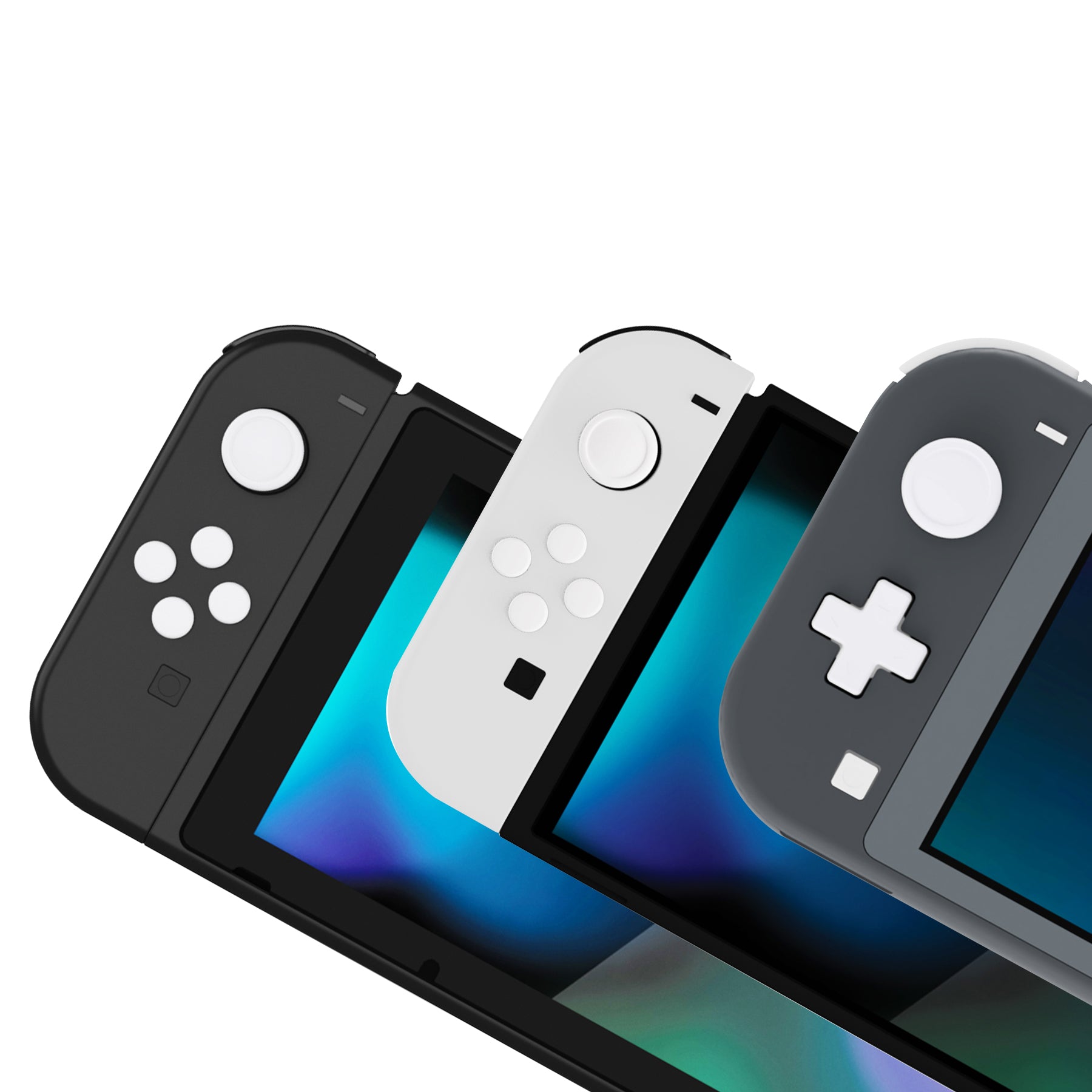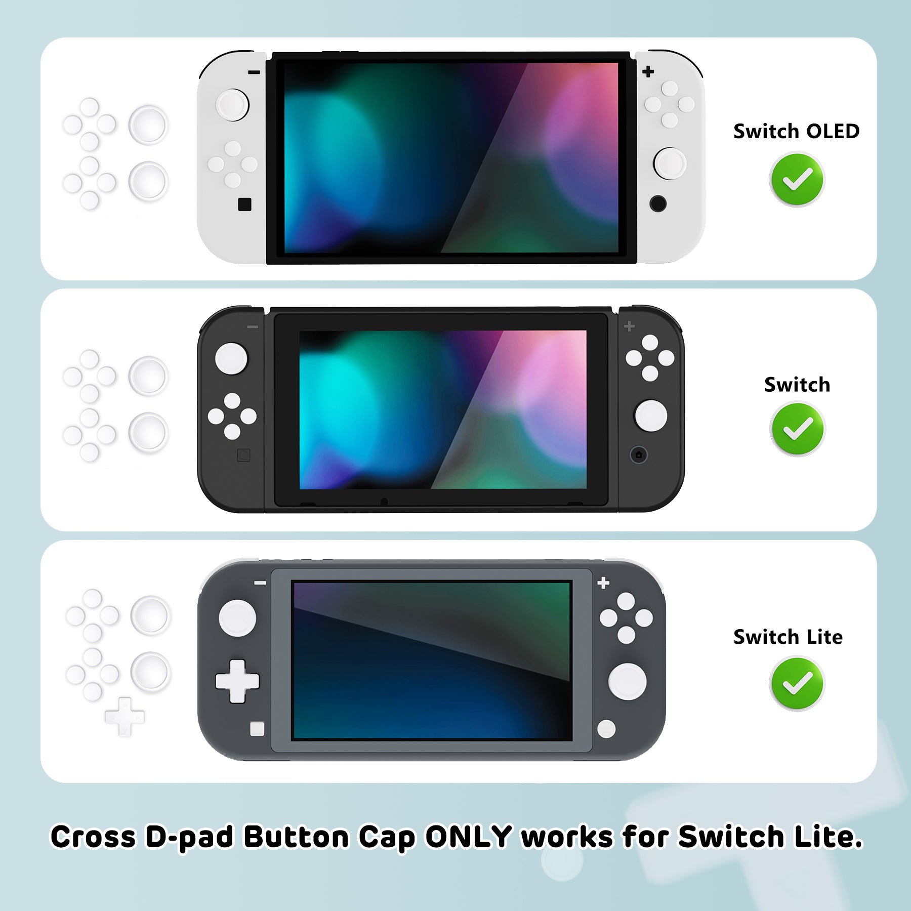 1. このシリコンボタンキャップセットは、Nintendo Switchに対応、Switch OLEDに対応、Switch Liteに対応するよう特別に設計されています。ただし、十字キーボタンカバーはSwitch Liteのみで使用可能です。