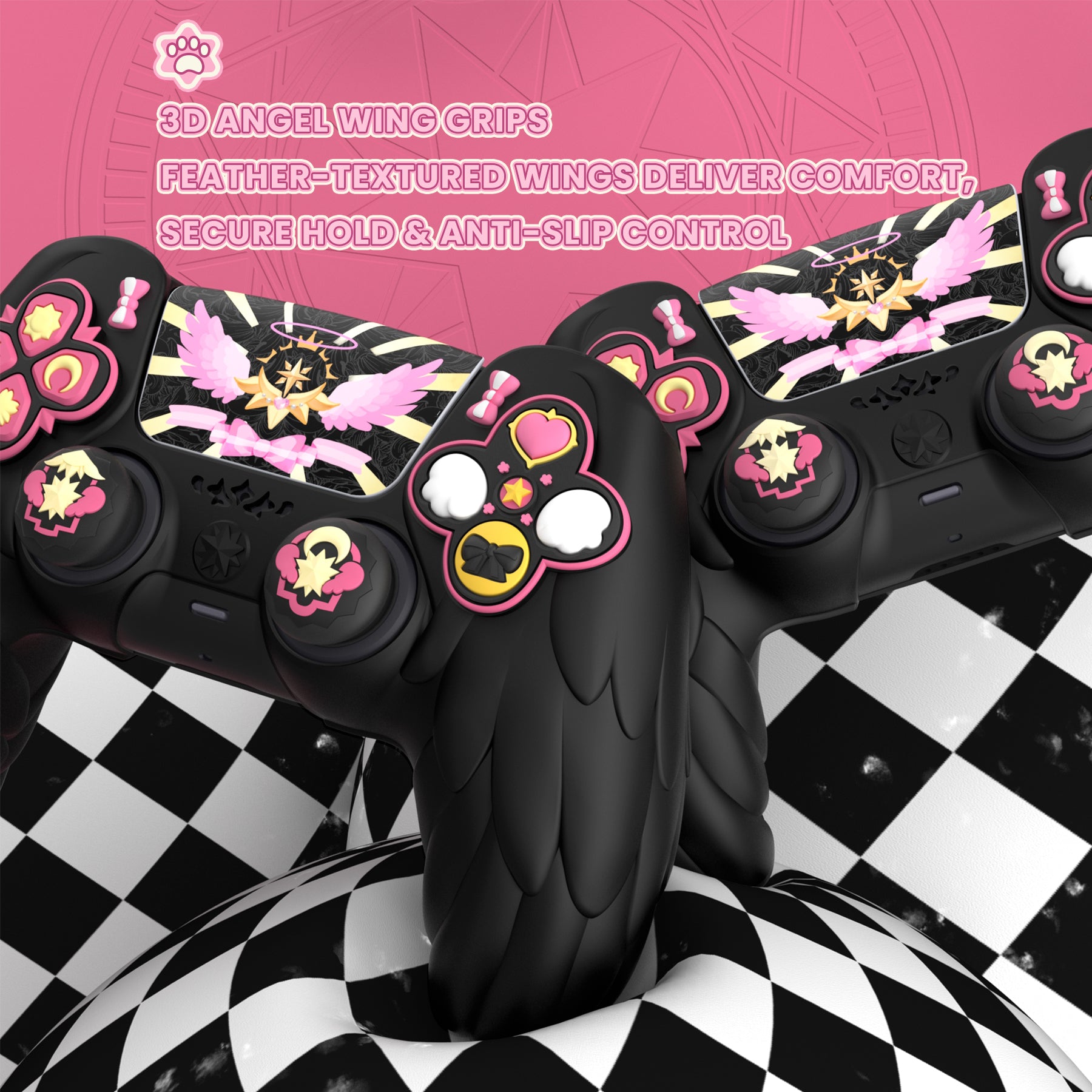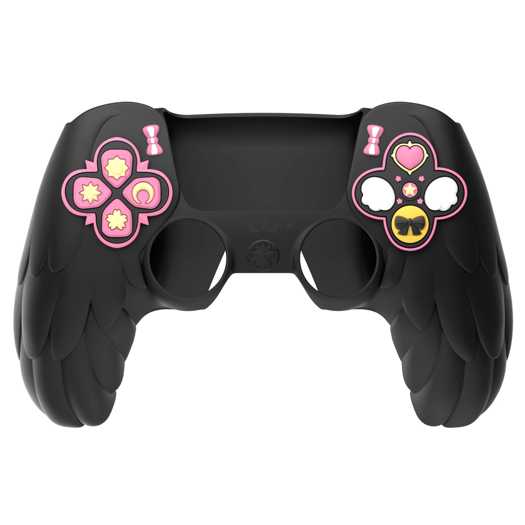 PlayVital Magic Wings シリコンカバー スキン for PS5 コントローラー 親指キャップ & テーマステッカー付き 充電スタンド対応【ブラック】