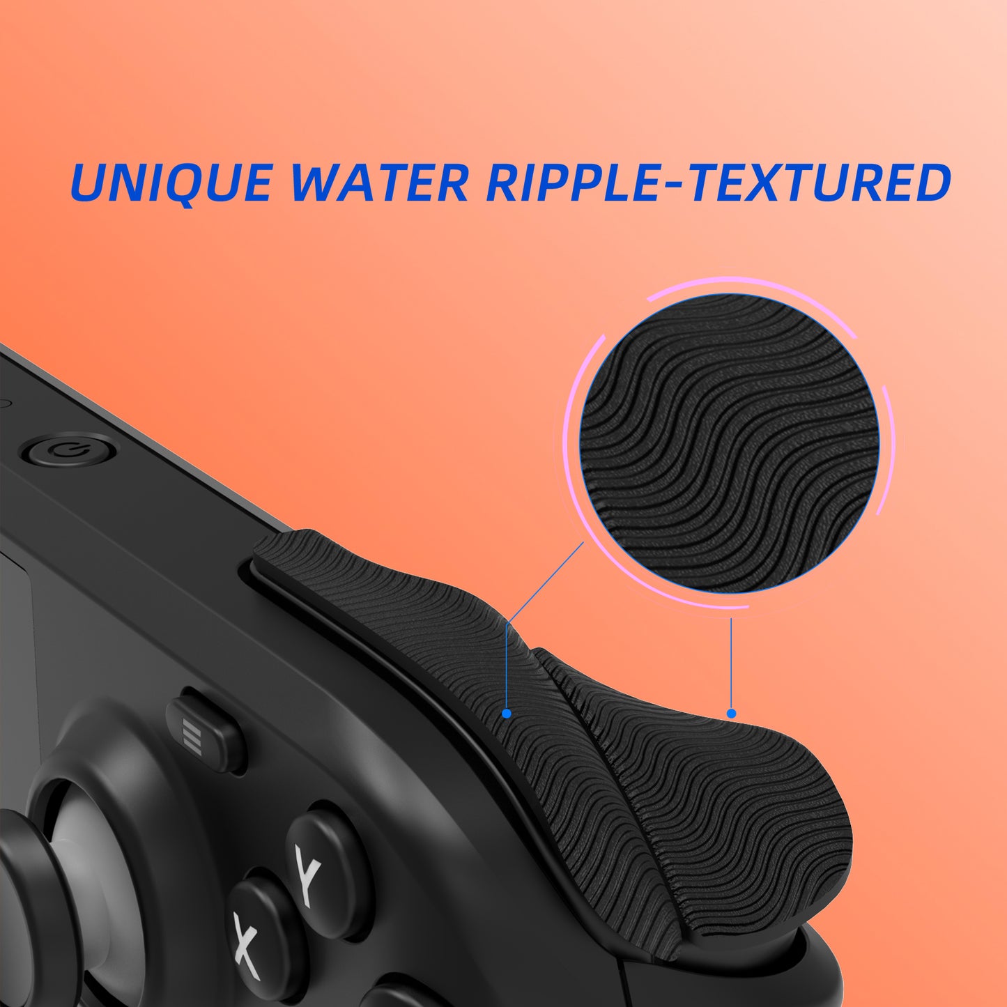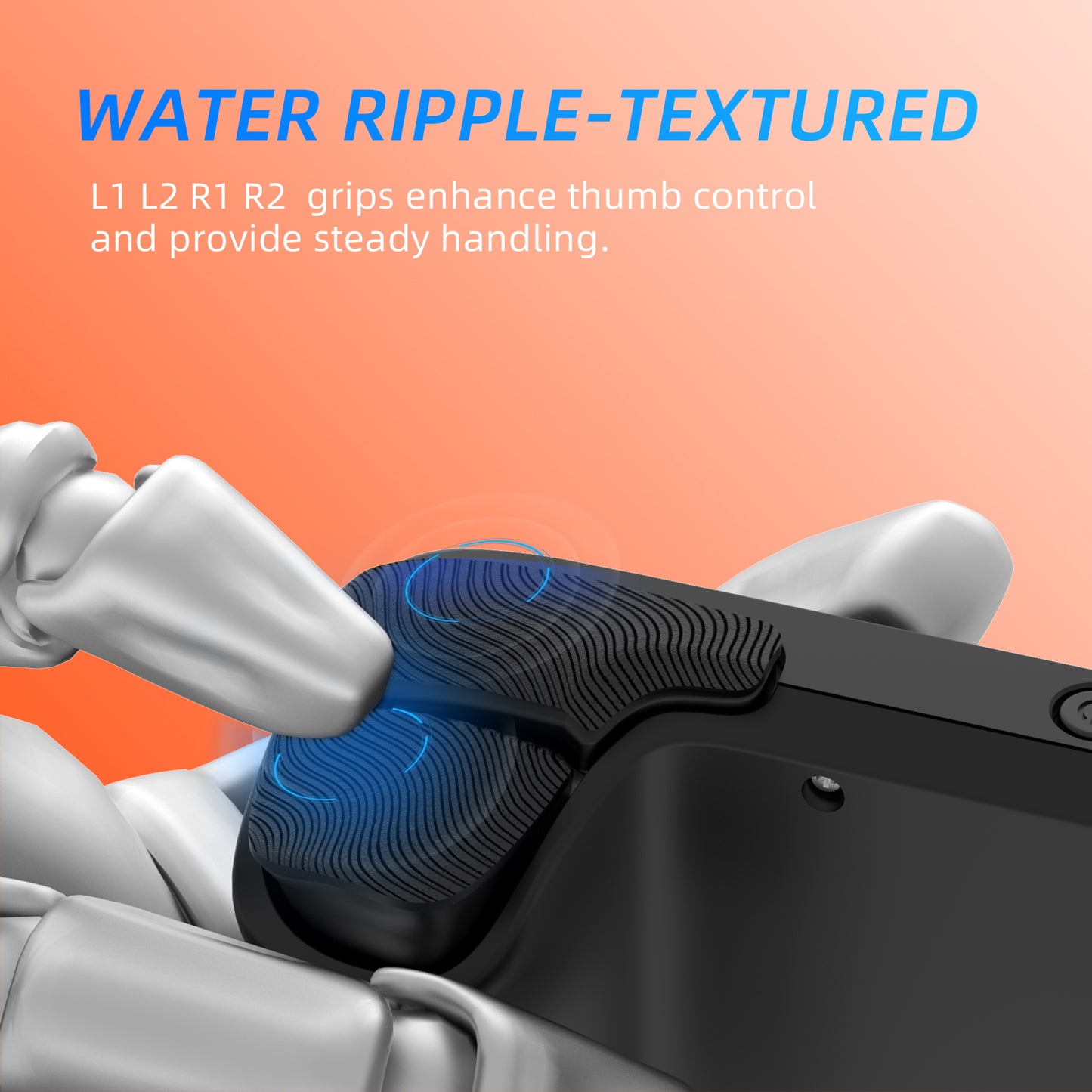 4. 水波模様の滑り止めトリガーグリップ:L1L2R1R2トリガー専用の水波テクスチャーグリップで、素早い入力時も確実にホールド。FPSやアクションゲームでの誤操作を防ぎ、操作精度を向上させます。