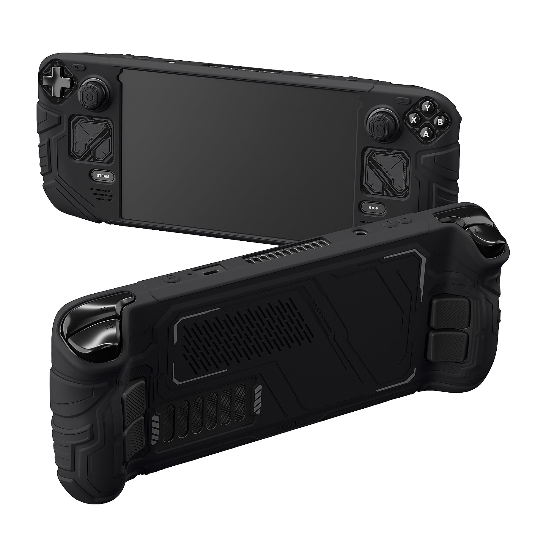 PlayVital Steam Deck OLED&LCD 向け メカ風保護ケース バックボタン強化セット付 サムグリップ&ステッカー付き【ブラック】