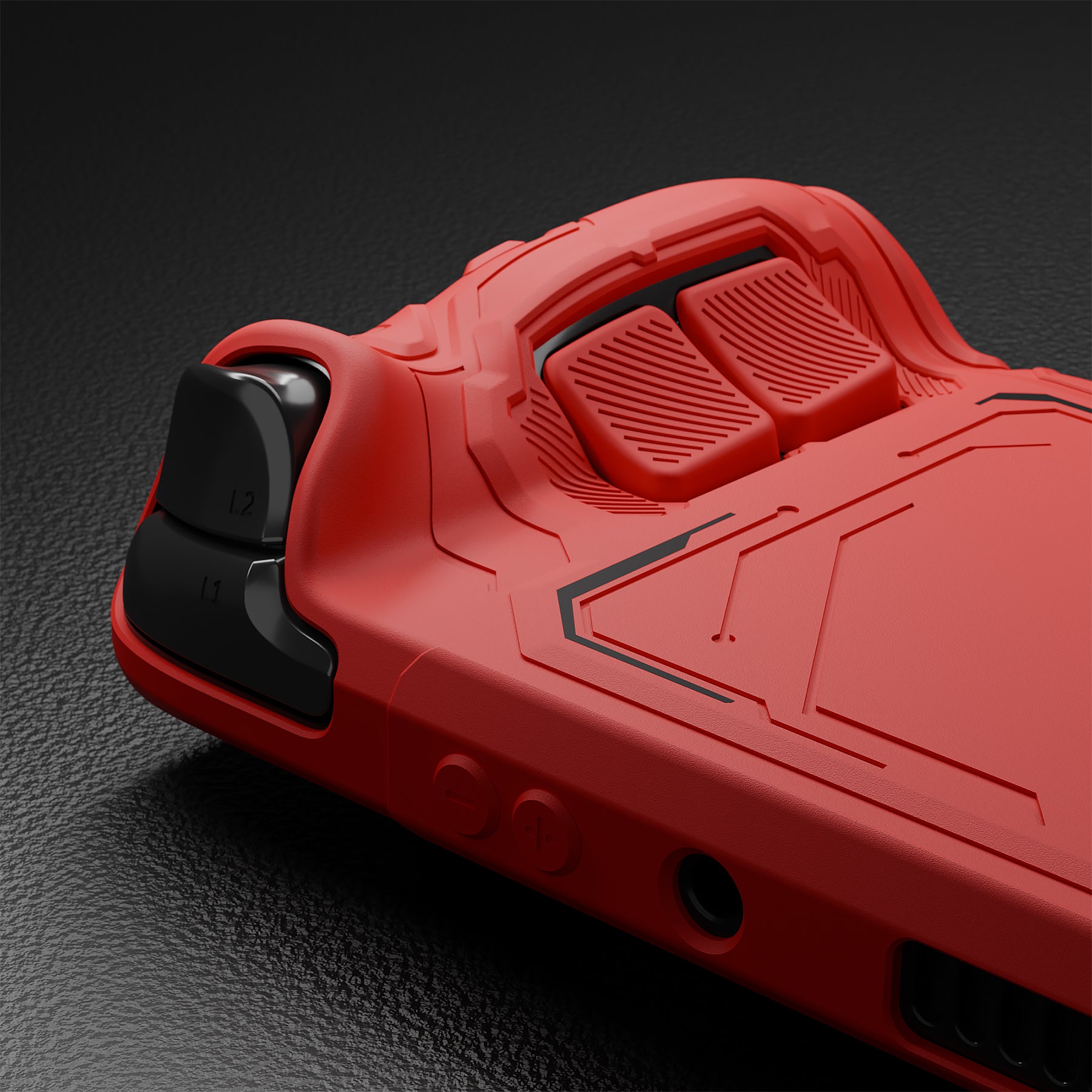 2. シャープなラインとレイヤード構造を備えた造形デザインにより、大胆でテック感あふれる外観を実現。フィット感のある構造で、ボタン、スティック、ポート、スピーカーにフルアクセスでき、ゲームプレイを妨げません。背面の通気孔は主要な放熱エリアに対応し、長時間のゲームセッション中もエアフローを維持します。