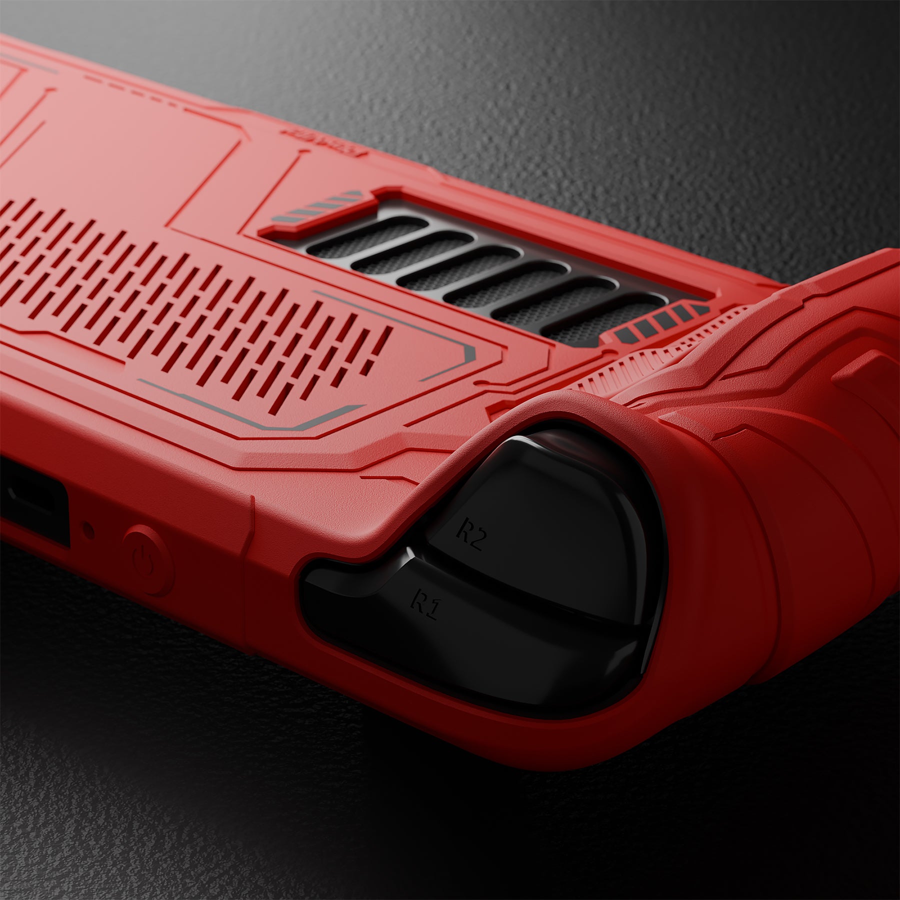 PlayVital Steam Deck OLED&LCD 向け メカ風保護ケース バックボタン強化セット付 サムグリップ&ステッカー付き【レッド】
