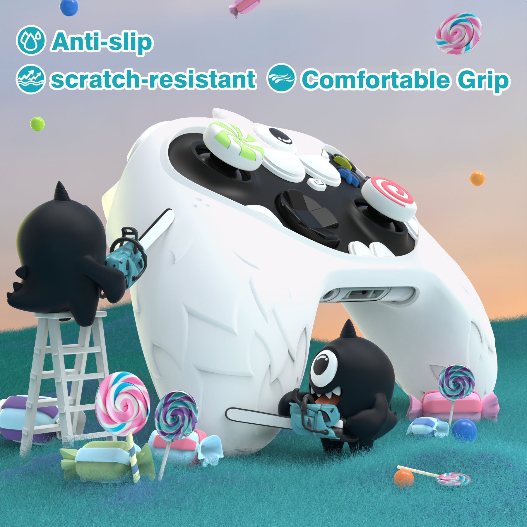 PlayVital MonoEye Monster キュートシリコンカバー for Xbox Series X/S コントローラー、ジョイスティックキャップとステッカー付き Xbox Core コントローラーグリップケース 【ホワイト】