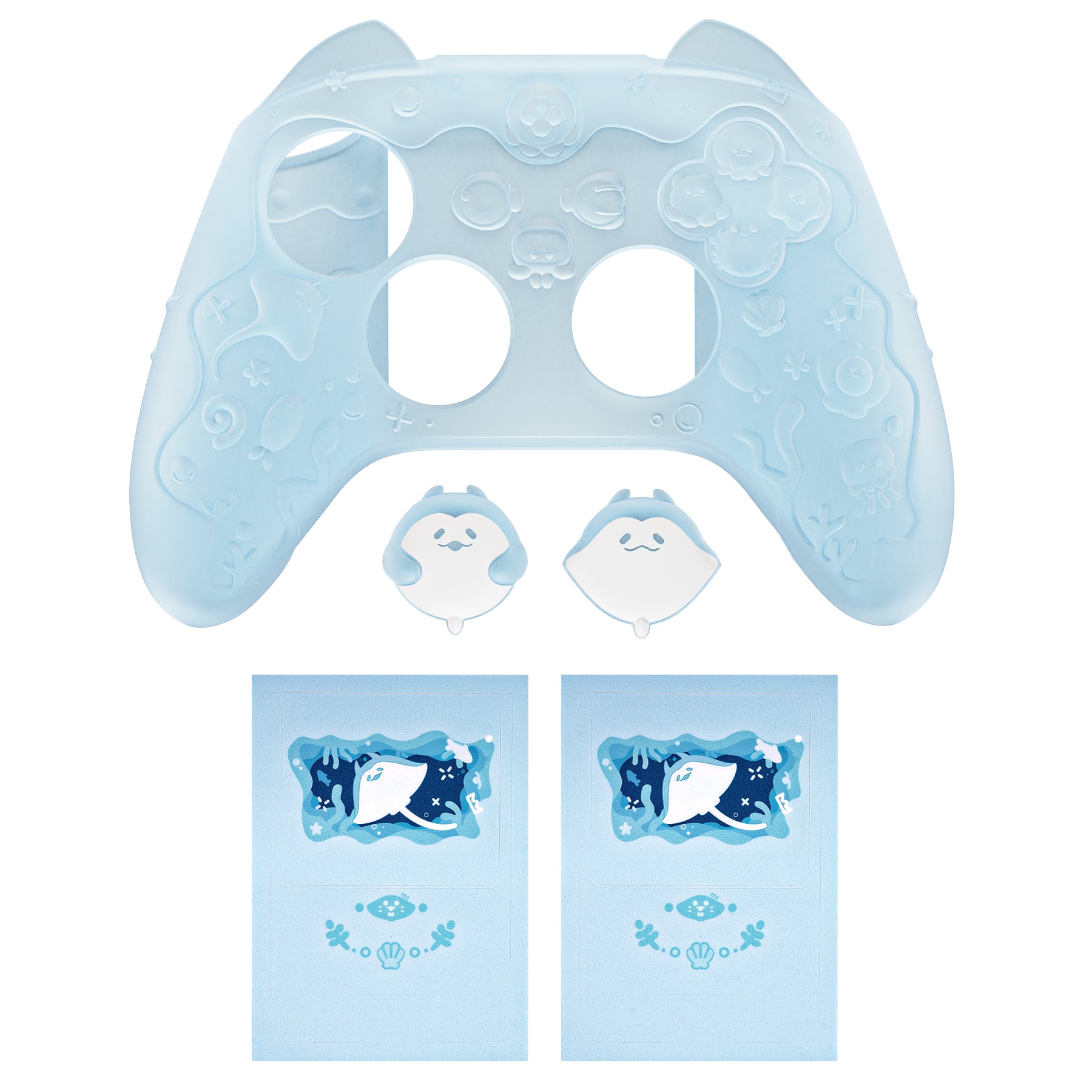 PlayVital 可愛いオーシャンウィスパーシリーズ シリコンカバー for Xbox Series X/S コントローラー 半透明シリコングリップスキン / 親指グリップ&ステッカー付き【ミントブルー】