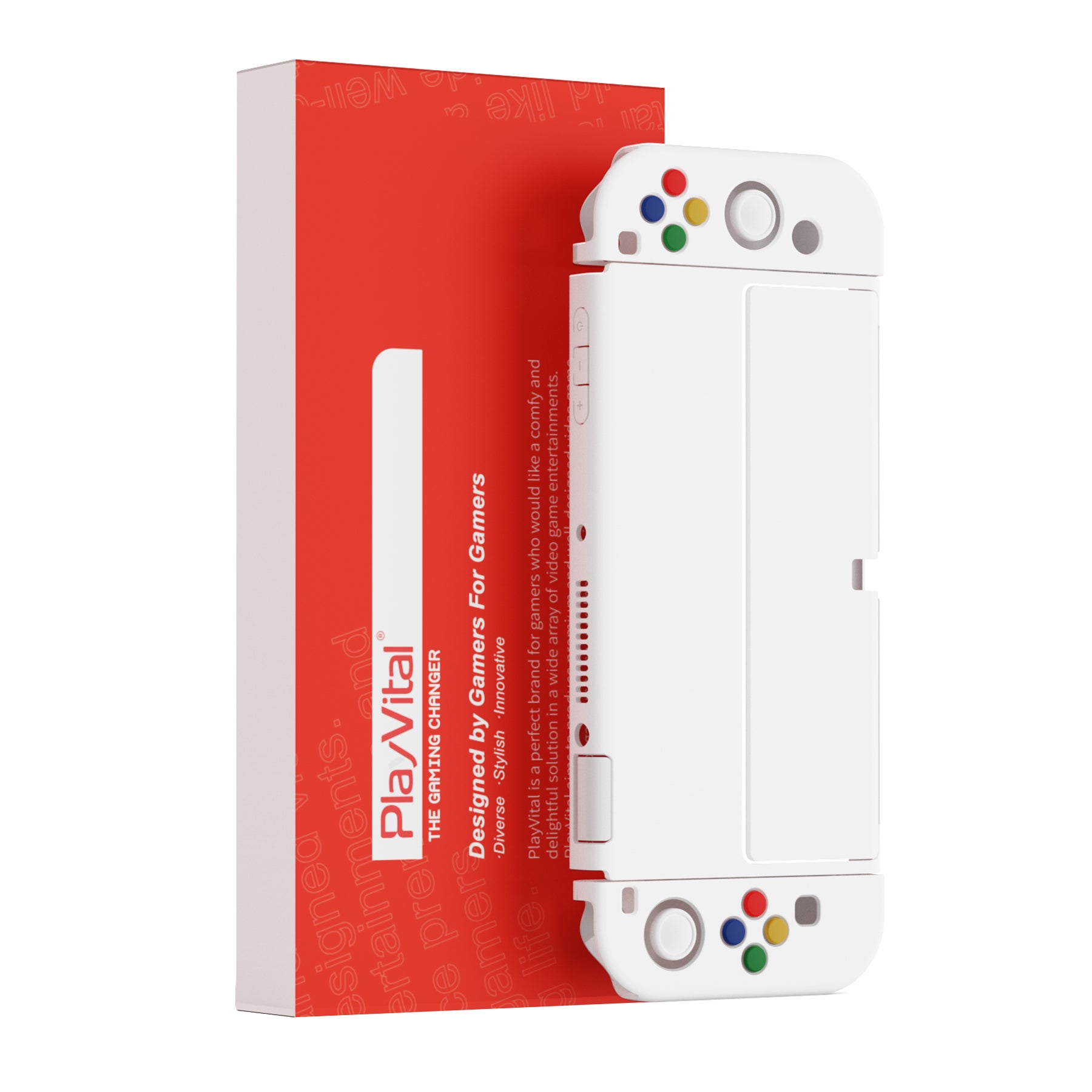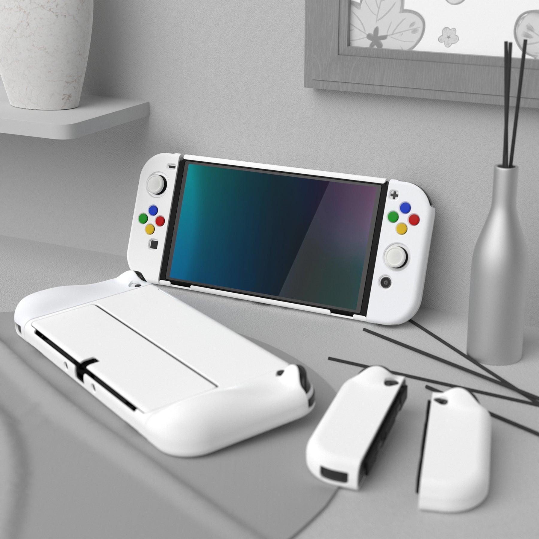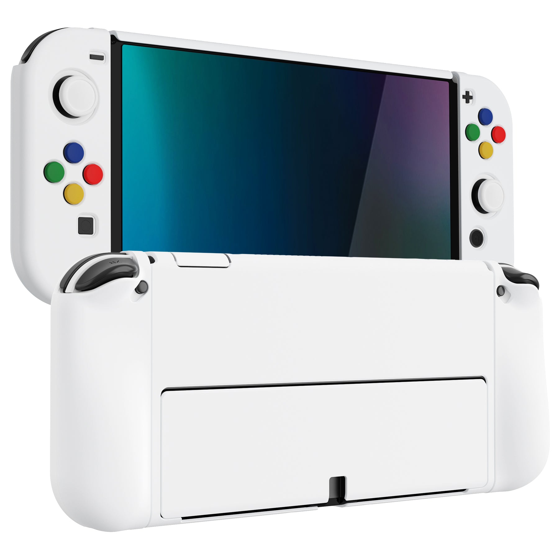PlayVital AlterGrips ドッキング可能なハードシェル保護ケース、親指グリップキャップとボタンキャップ付き、Nintendo 有機el用 【 ホワイト】