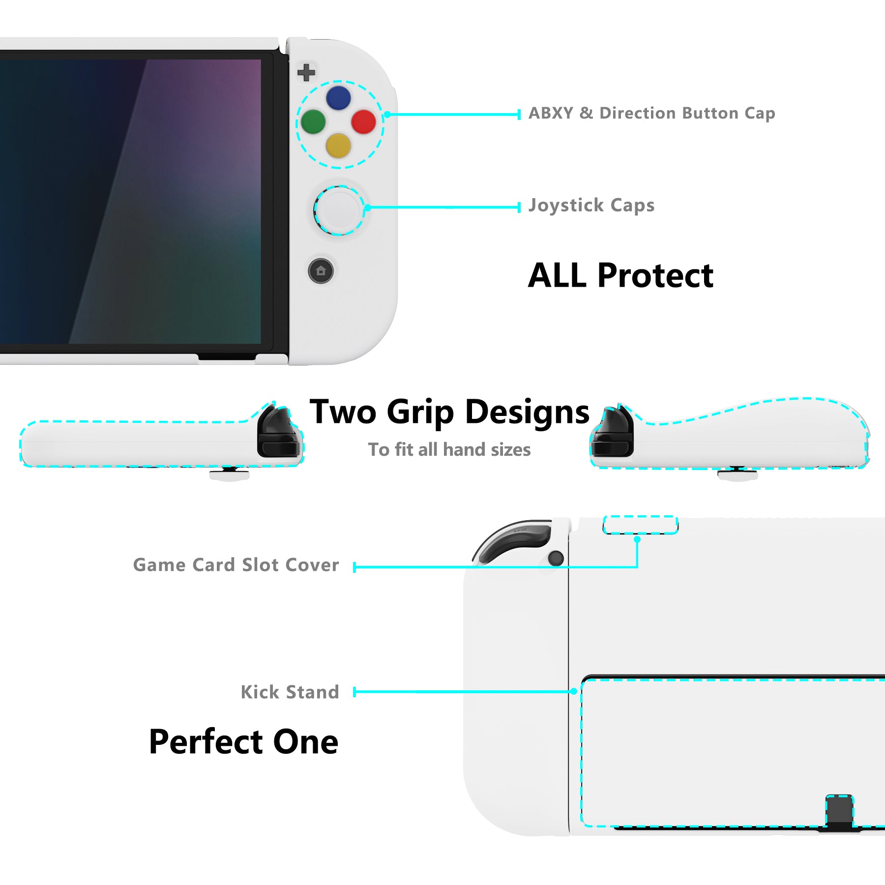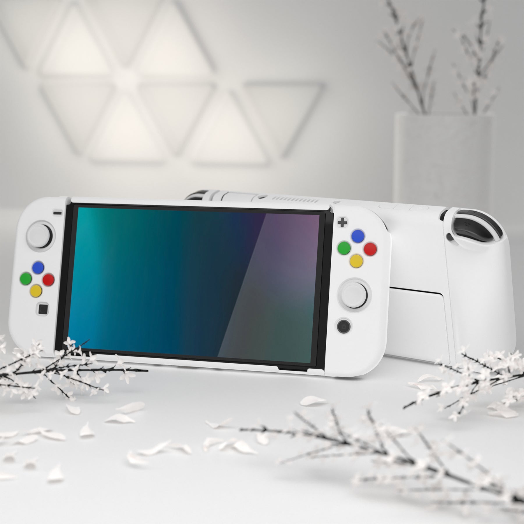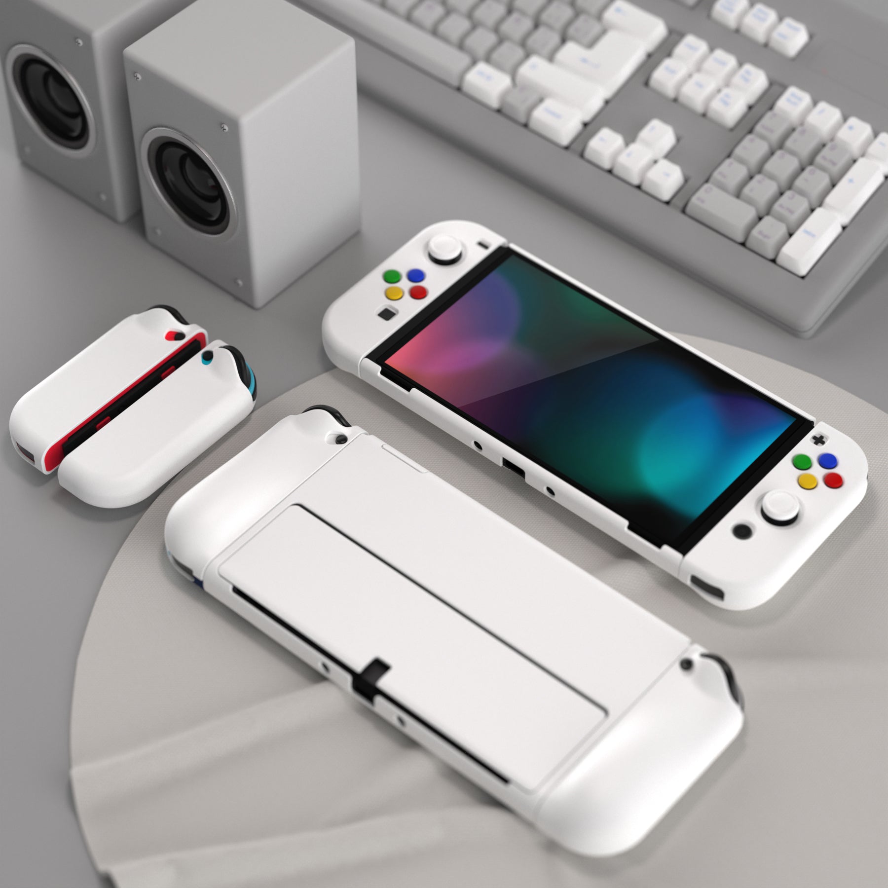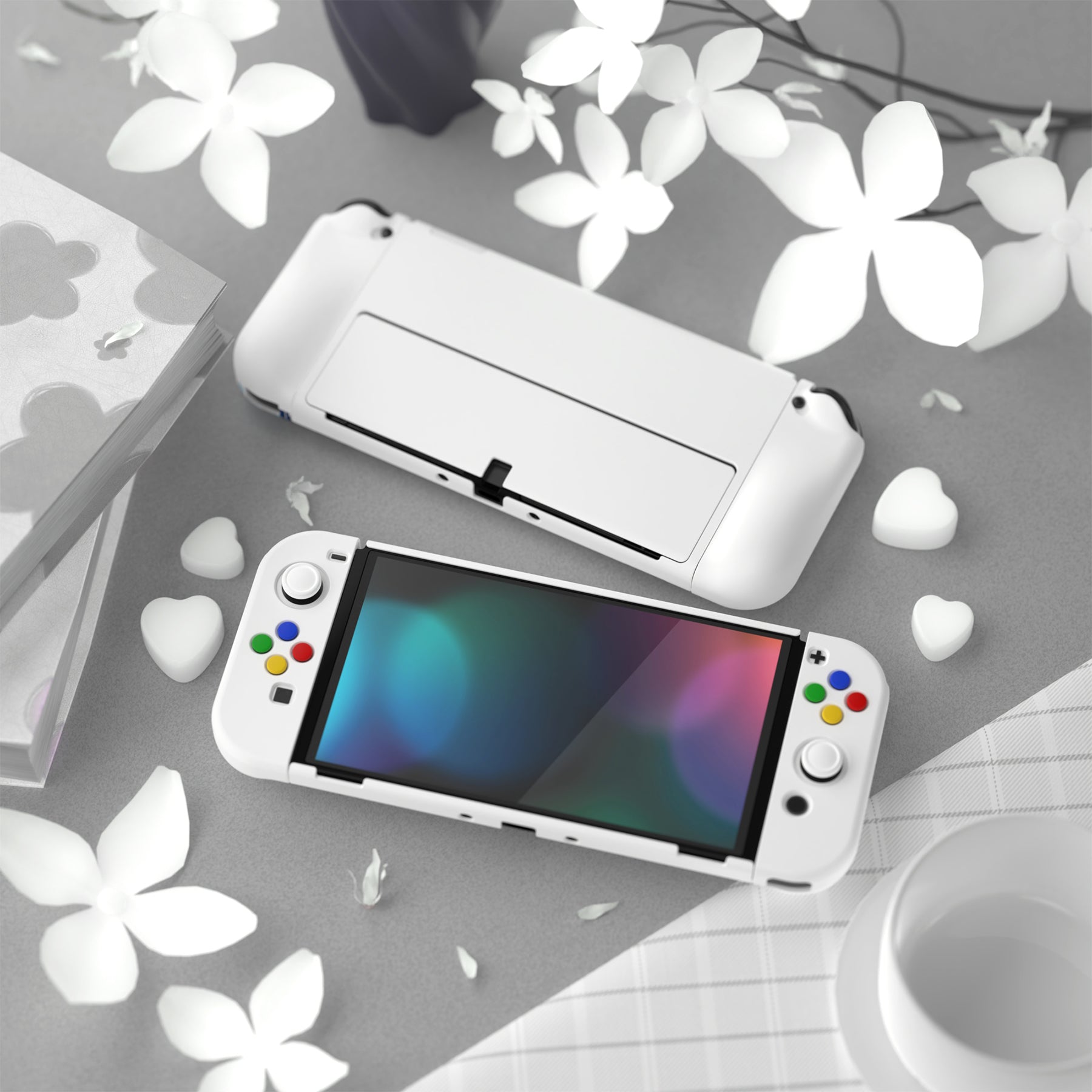 PlayVital AlterGrips ドッキング可能なハードシェル保護ケース、親指グリップキャップとボタンキャップ付き、Nintendo 有機el用 【 ホワイト】