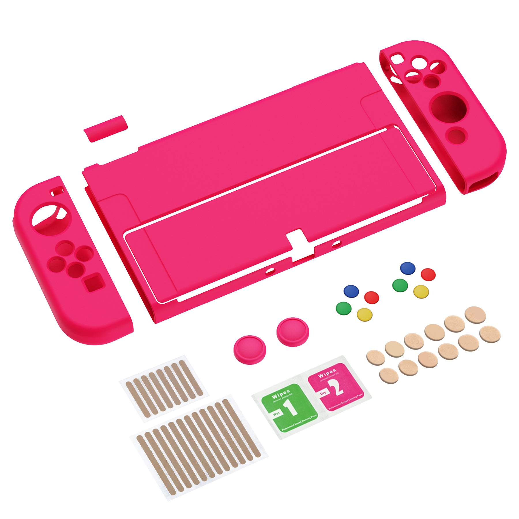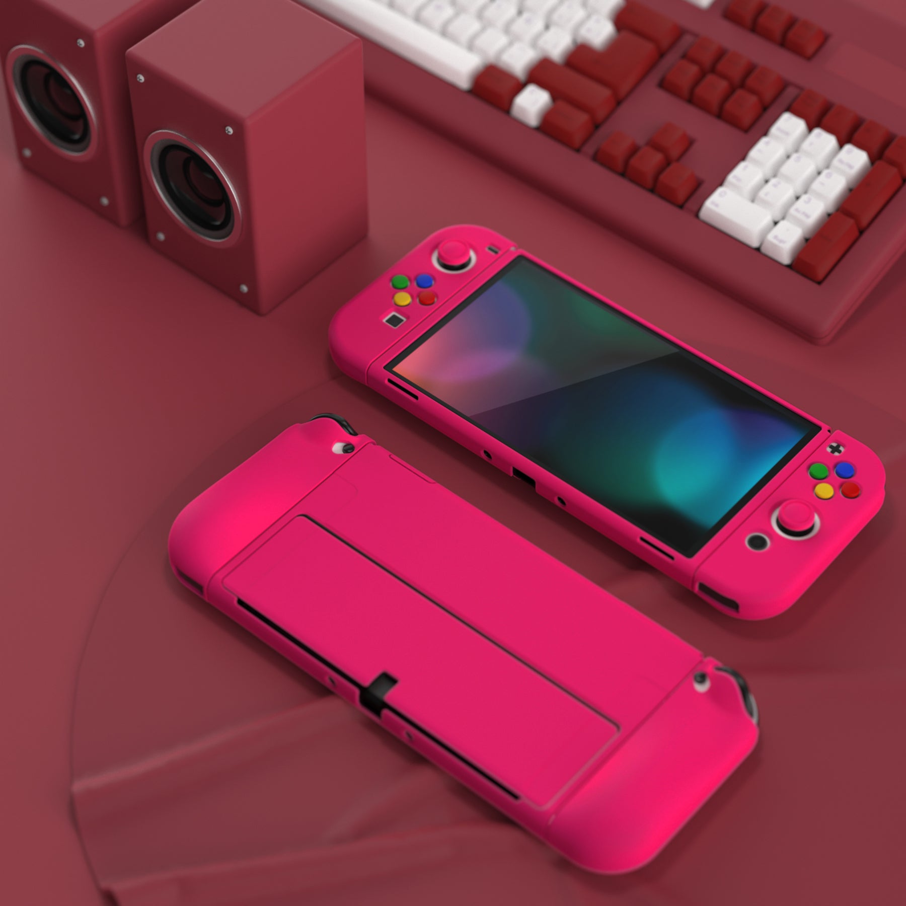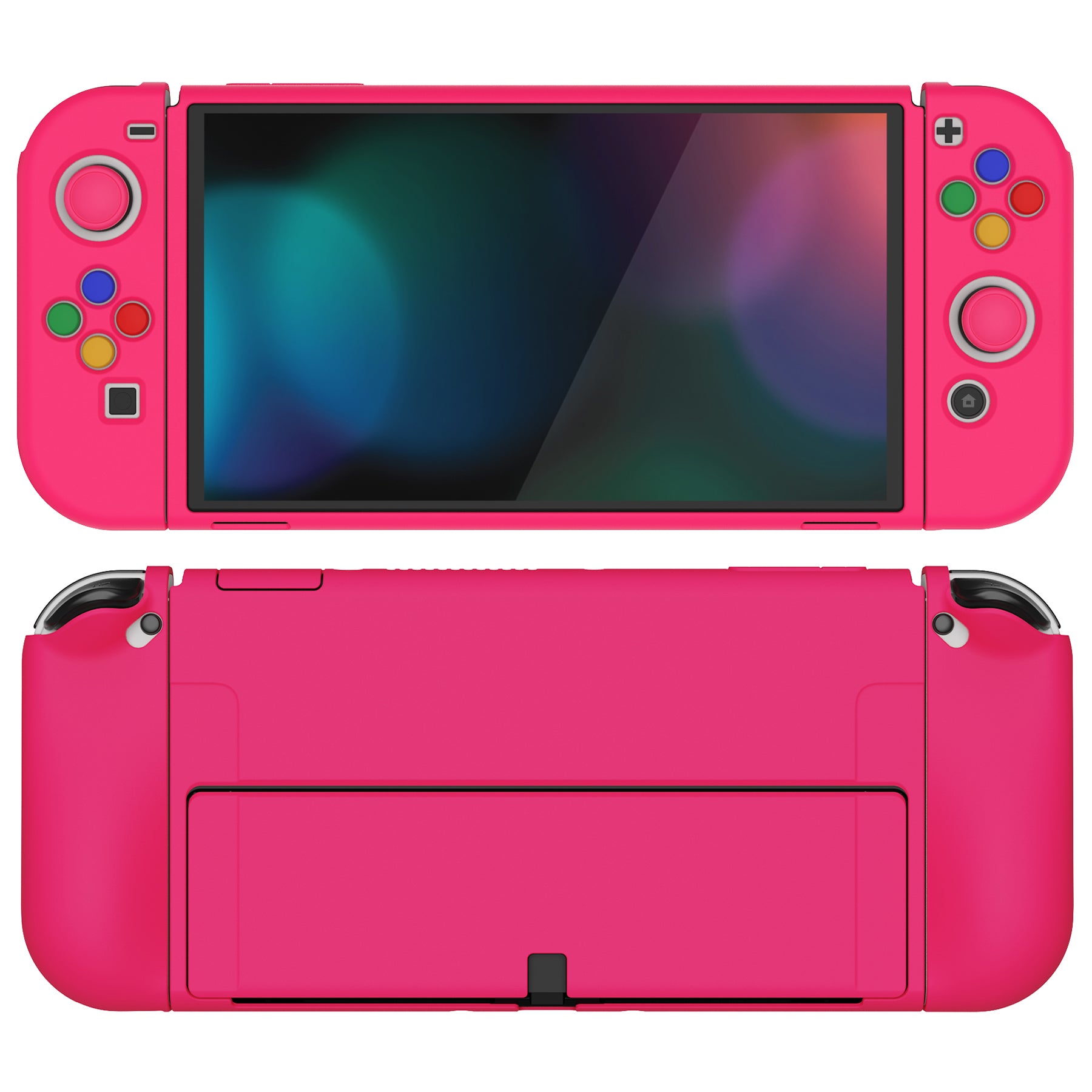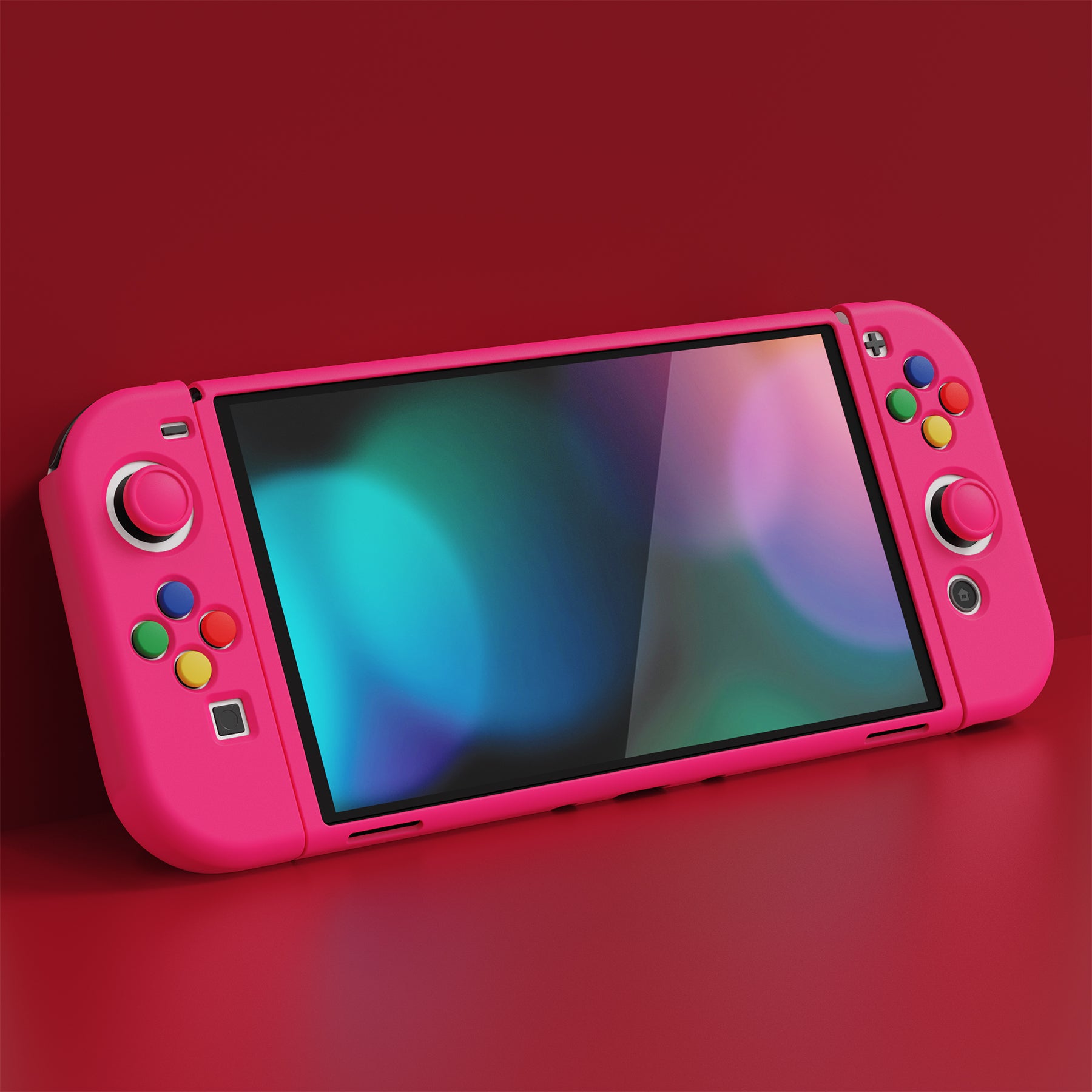 PlayVital ZealProtect ソフト TPU スリム保護ケース 親指グリップキャップと ABXY 方向ボタンキャップ付き Switch 有機el 用【濃いピンク 】