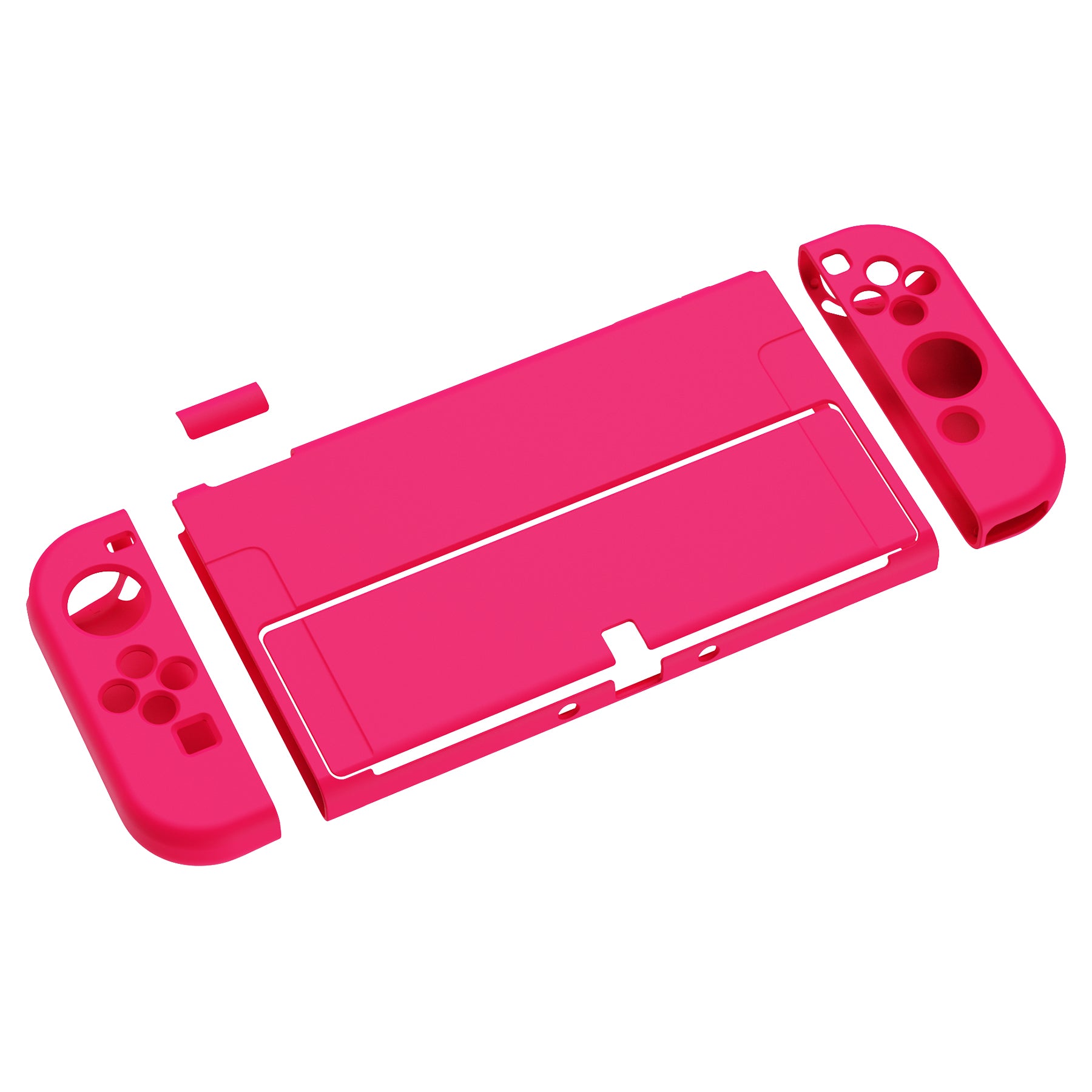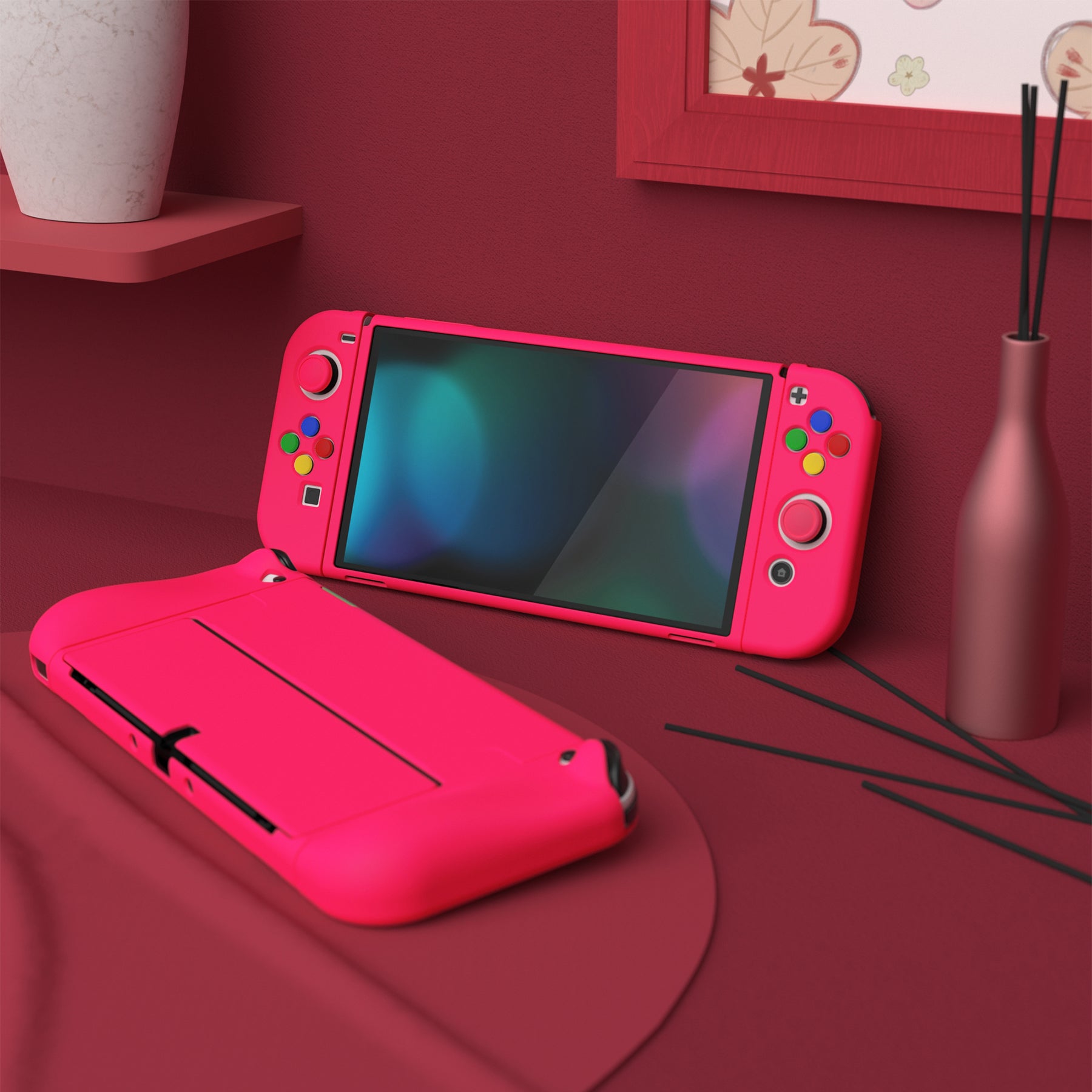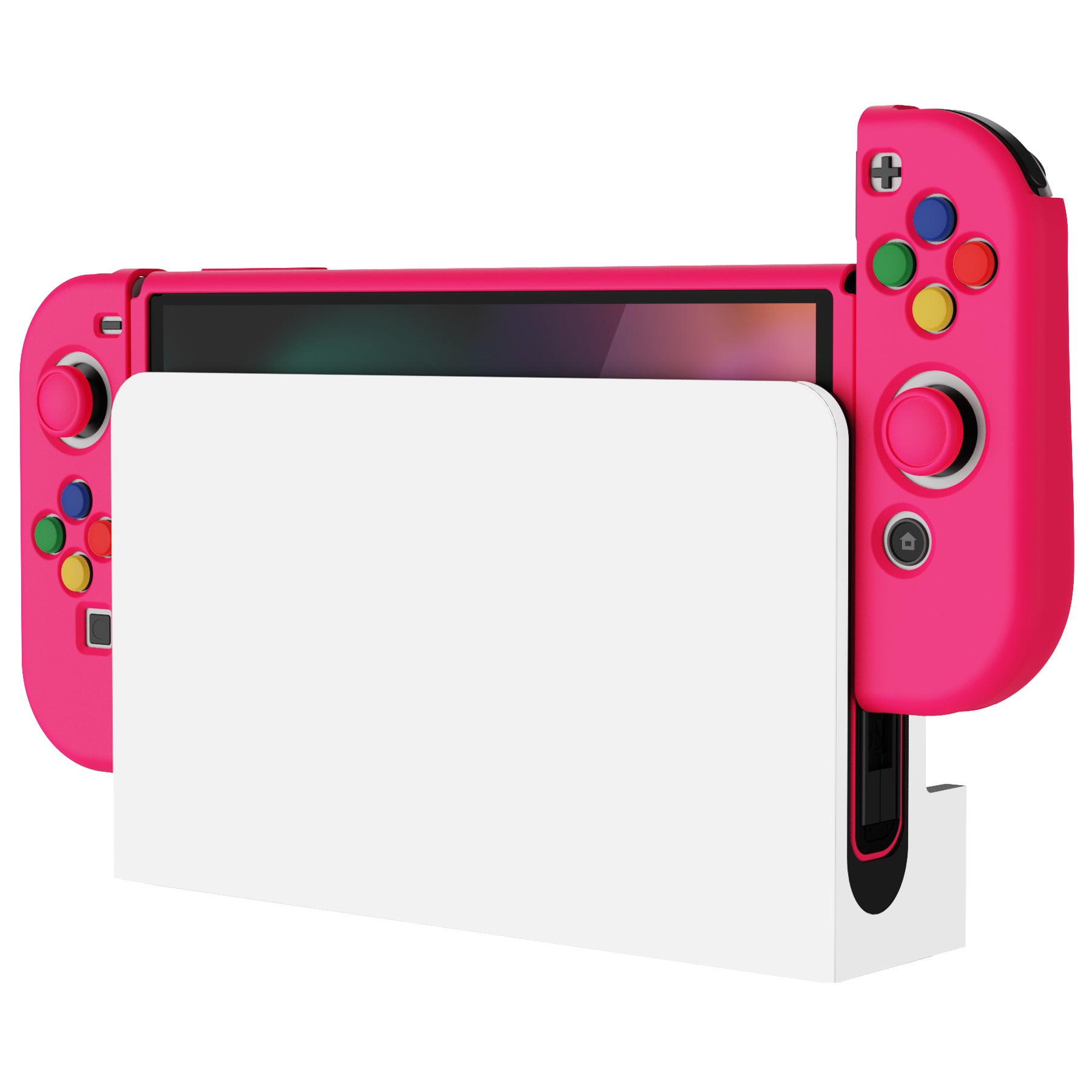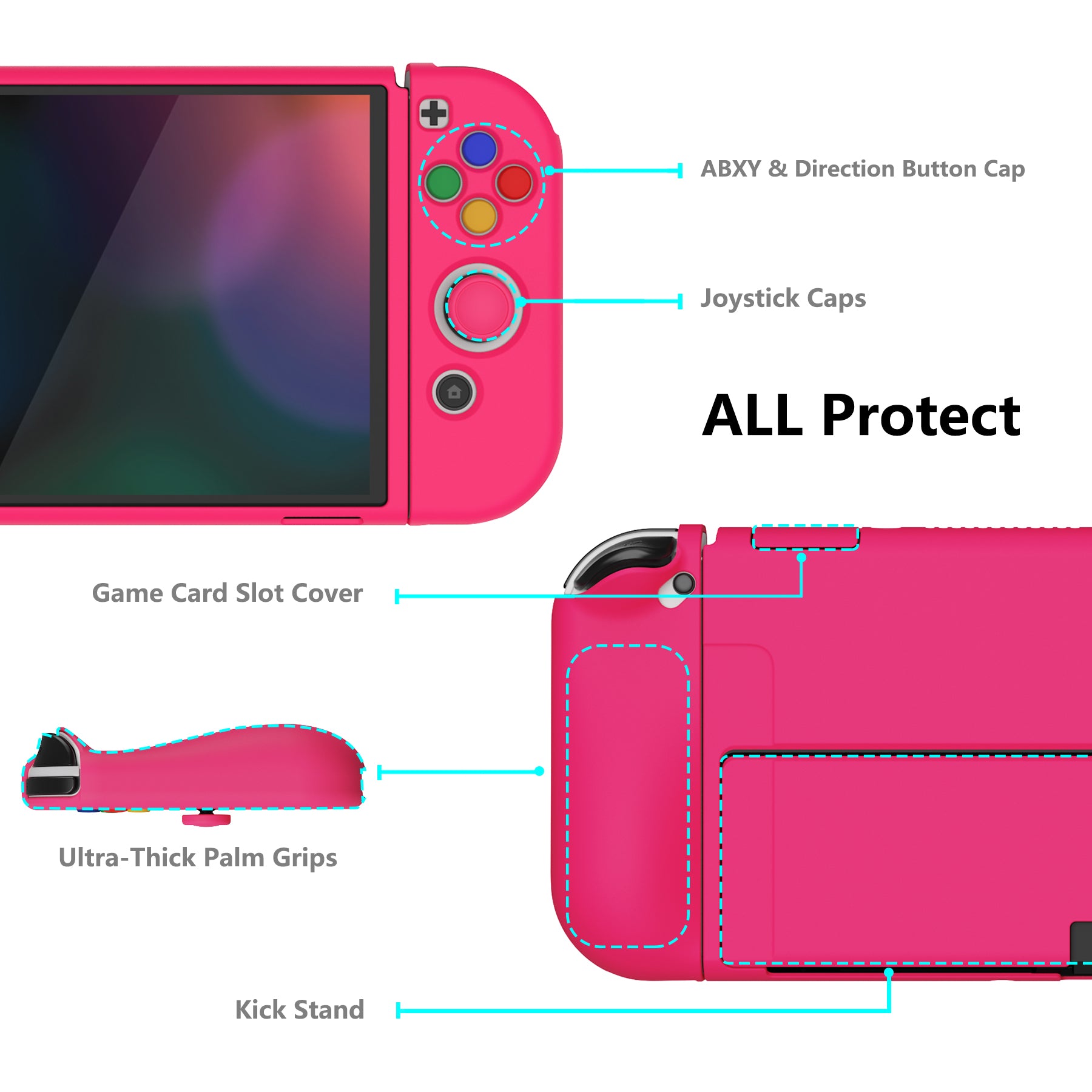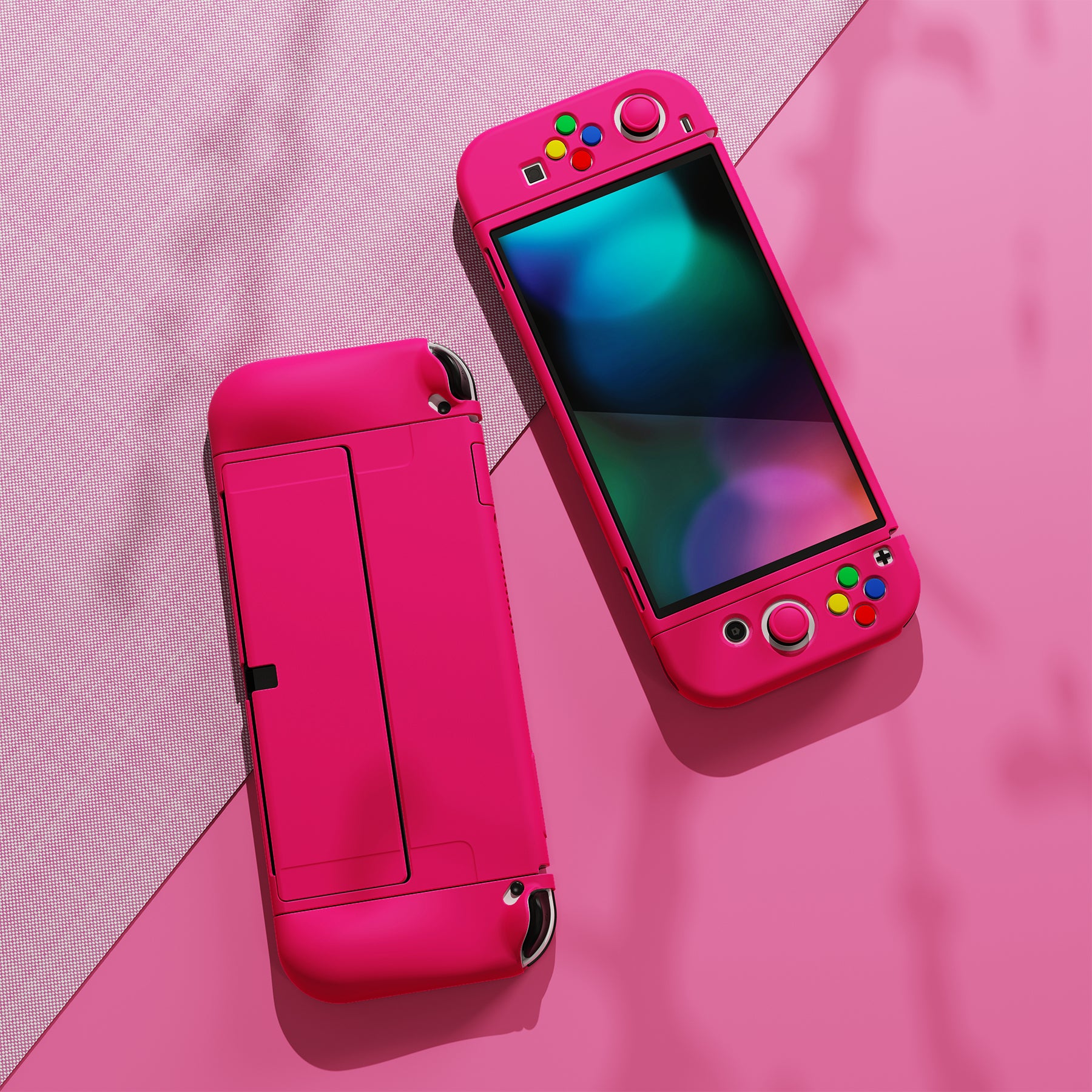 PlayVital ZealProtect ソフト TPU スリム保護ケース 親指グリップキャップと ABXY 方向ボタンキャップ付き Switch 有機el 用【濃いピンク 】