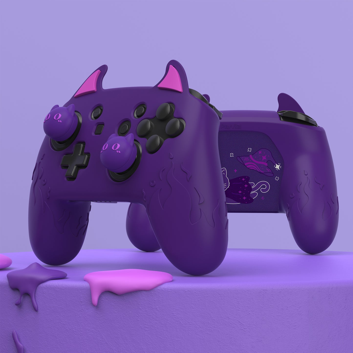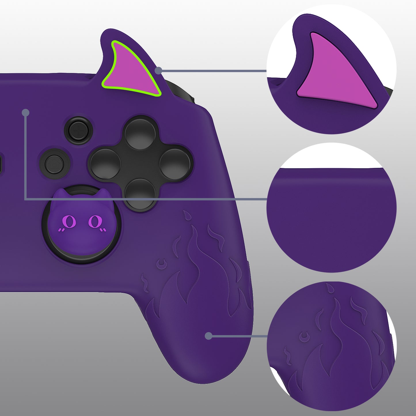 PlayVital かわいいデーモン シリコングリップカバー(サムグリップとステッカー付き) Nintendo Switch Pro コントローラー用【パープル】