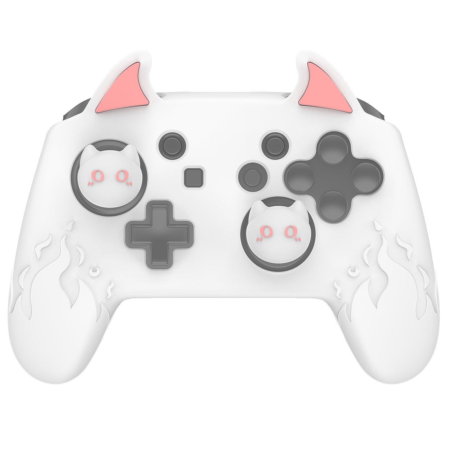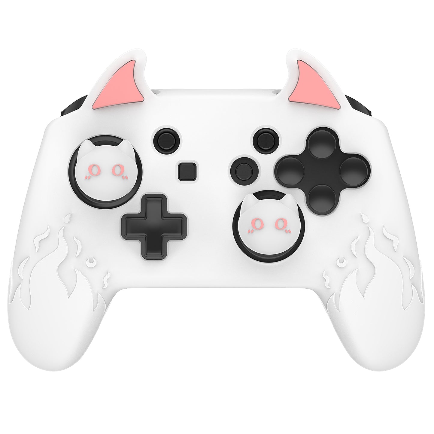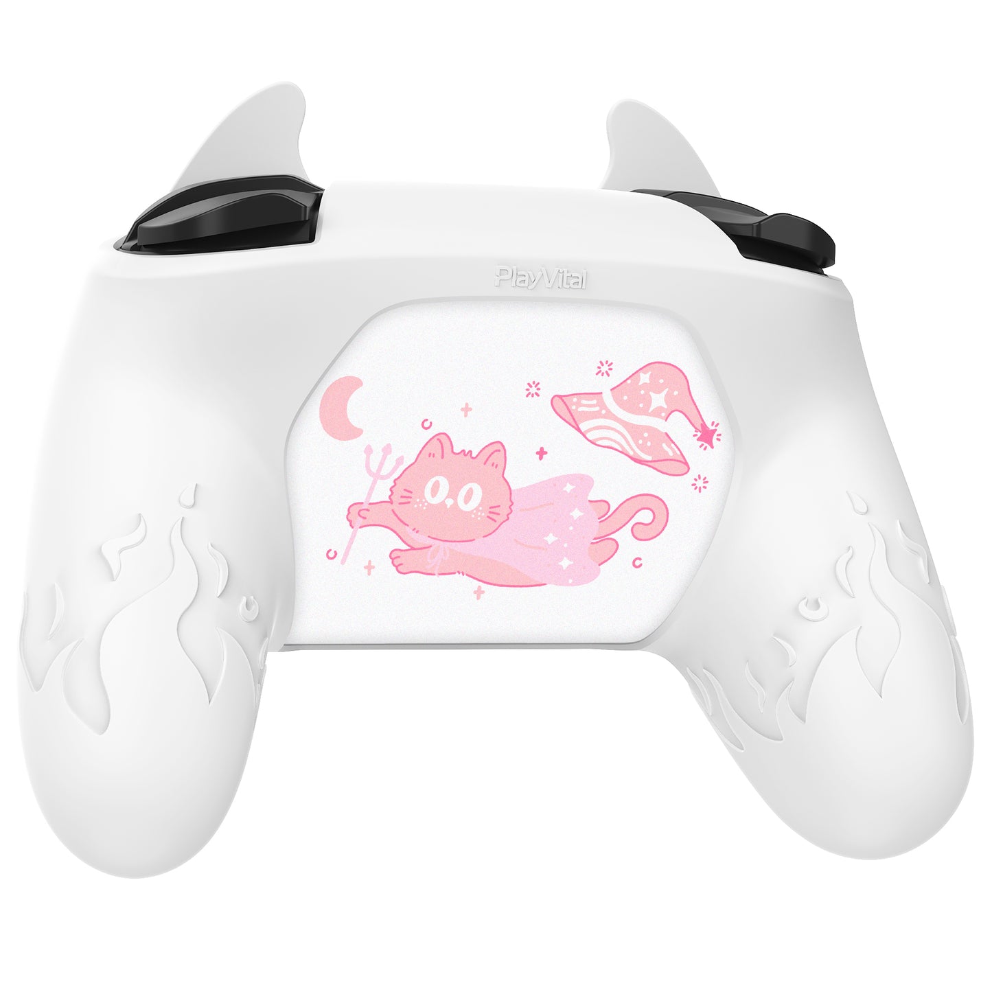 PlayVital かわいいデーモン シリコングリップカバー(サムグリップとステッカー付き) Nintendo Switch Pro コントローラー用【ホワイト】