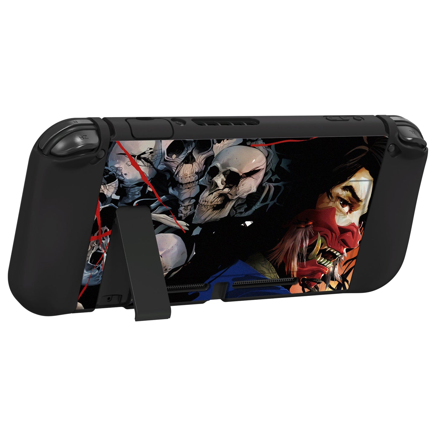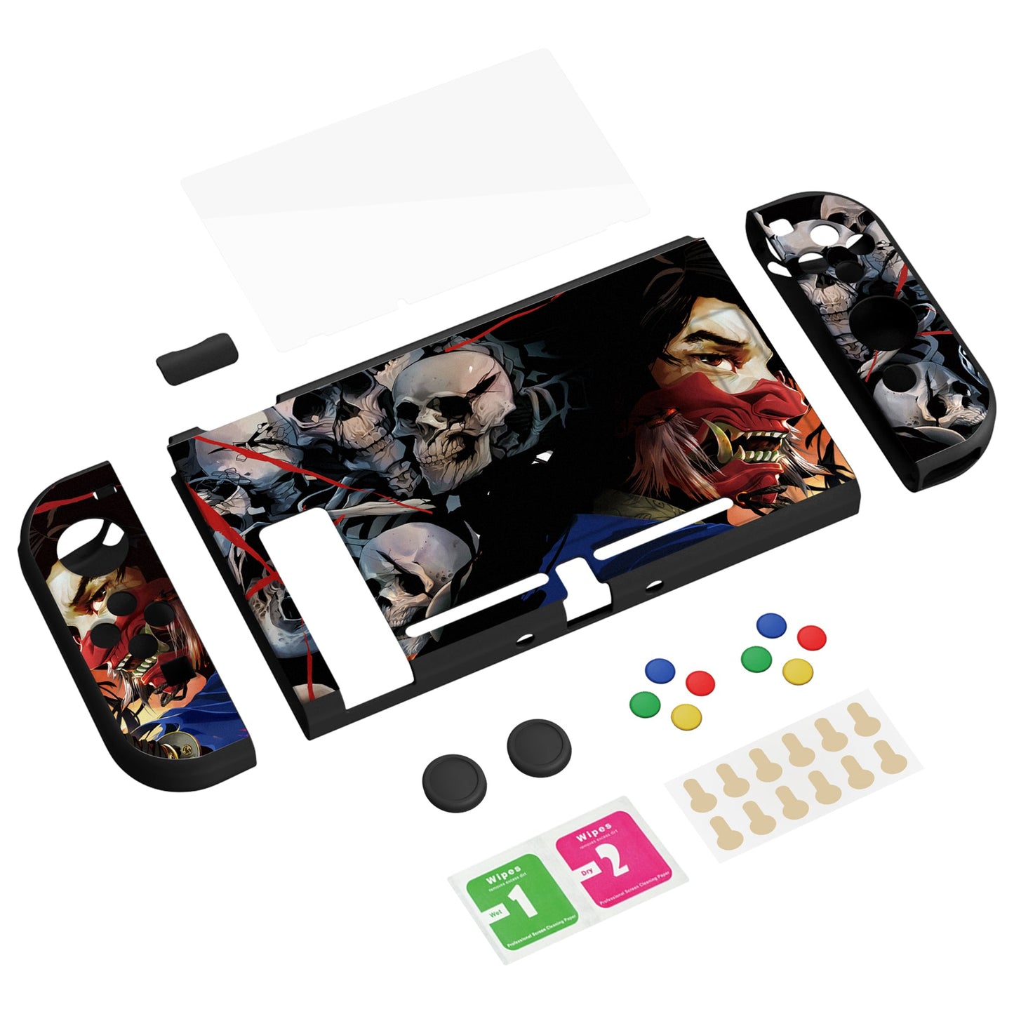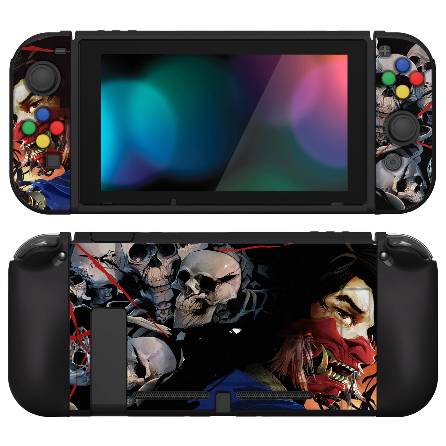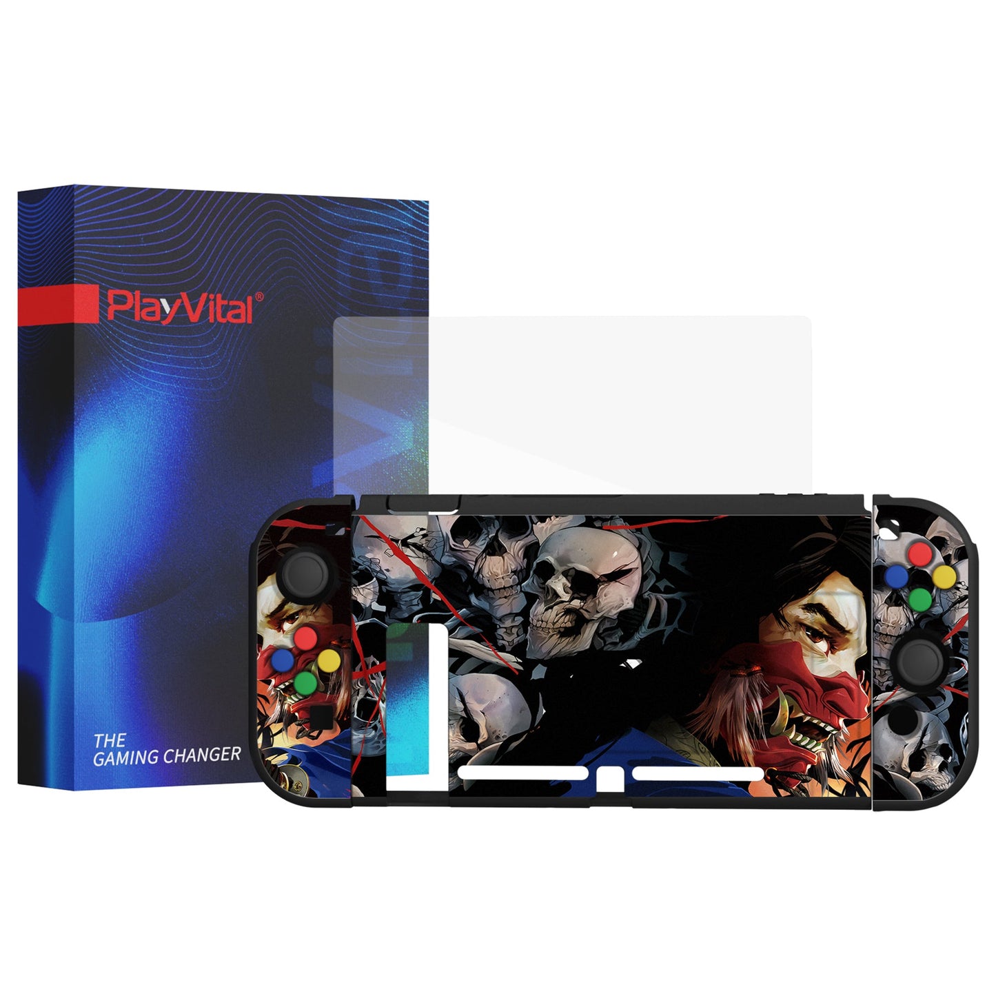 PlayVital ZealProtect ソフト TPU スリム保護ケース、強化ガラススクリーンプロテクター、サムグリップ、ABXY 方向ボタンキャップ付き NS Switch 用【サムライの魂】