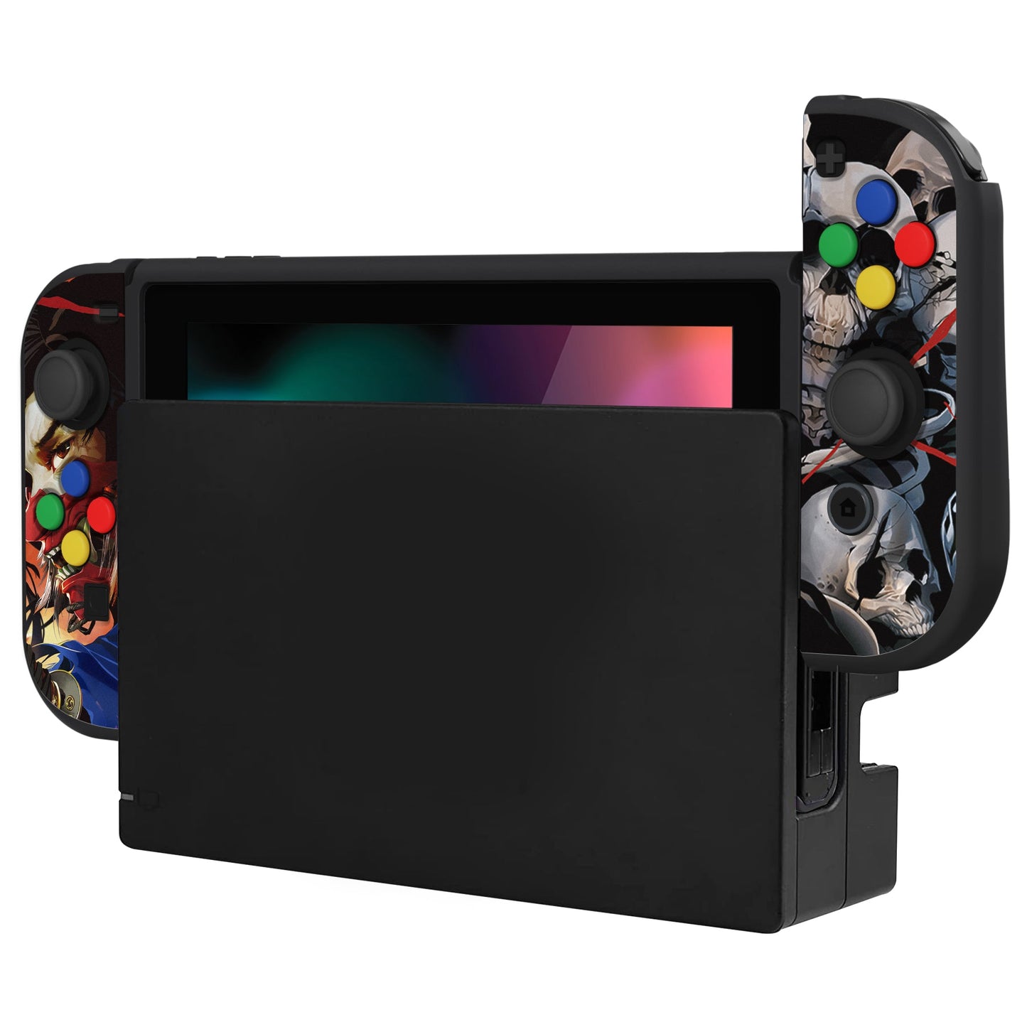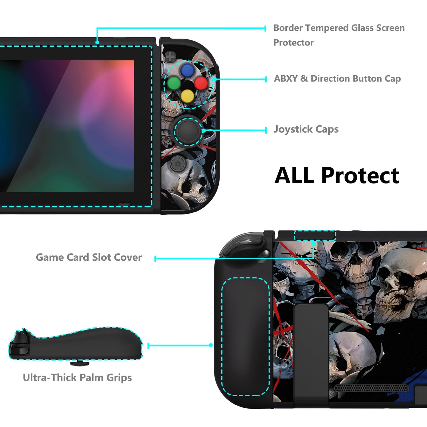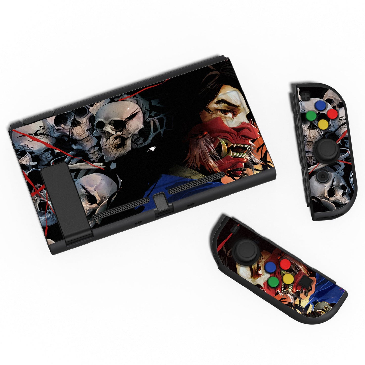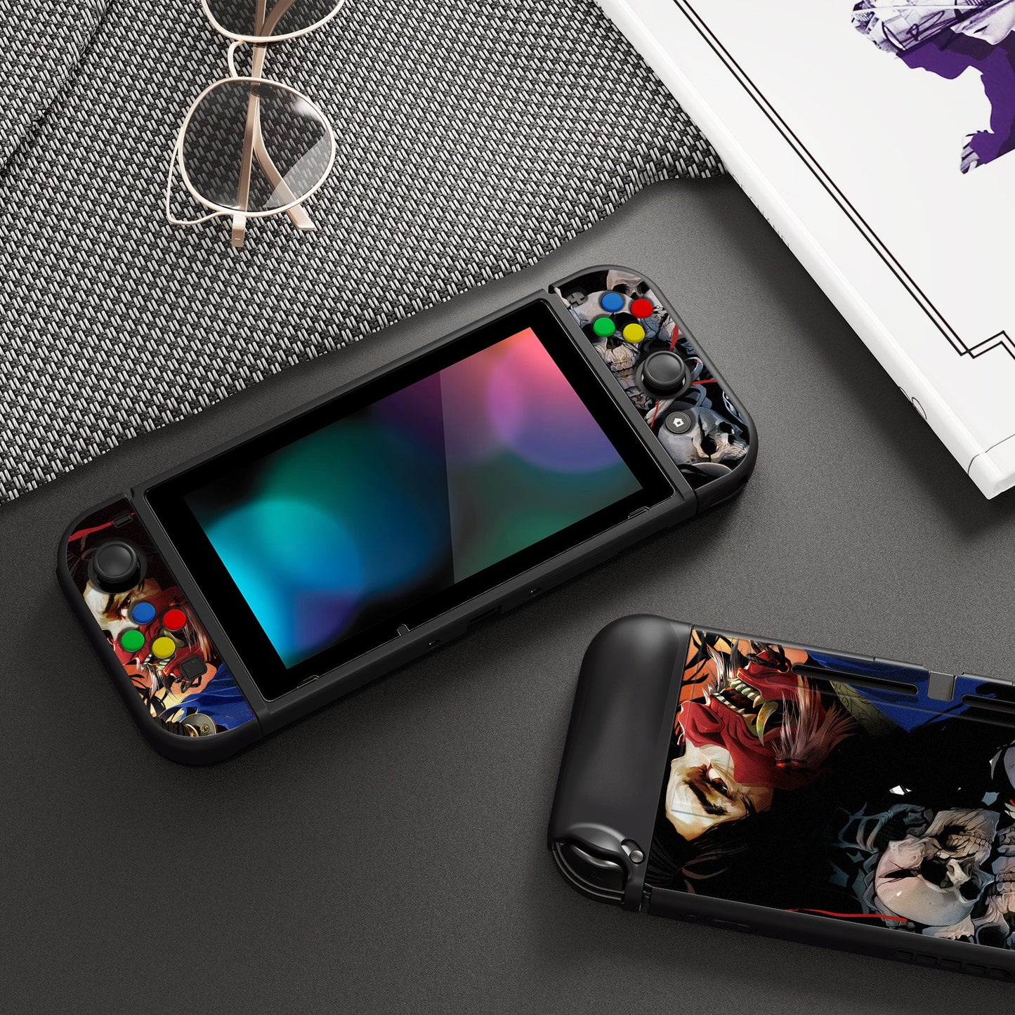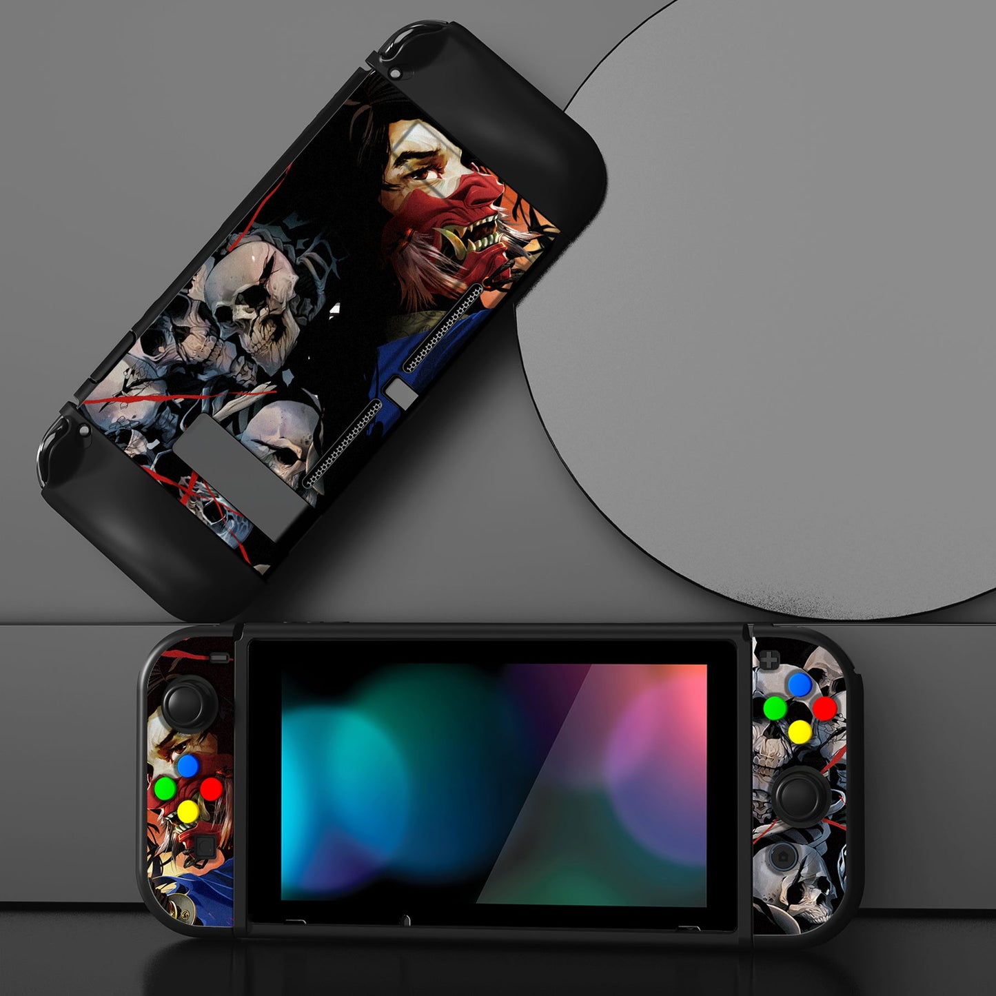 PlayVital ZealProtect ソフト TPU スリム保護ケース、強化ガラススクリーンプロテクター、サムグリップ、ABXY 方向ボタンキャップ付き NS Switch 用【サムライの魂】