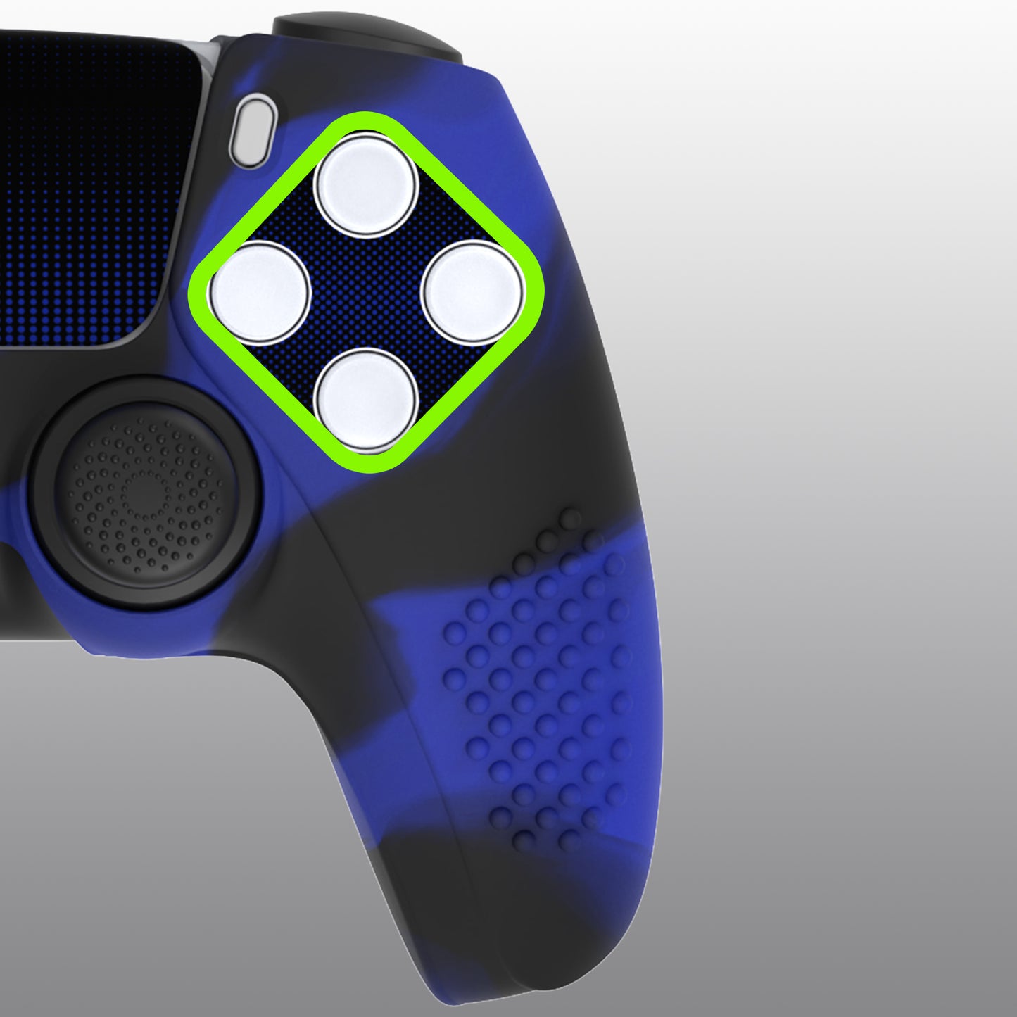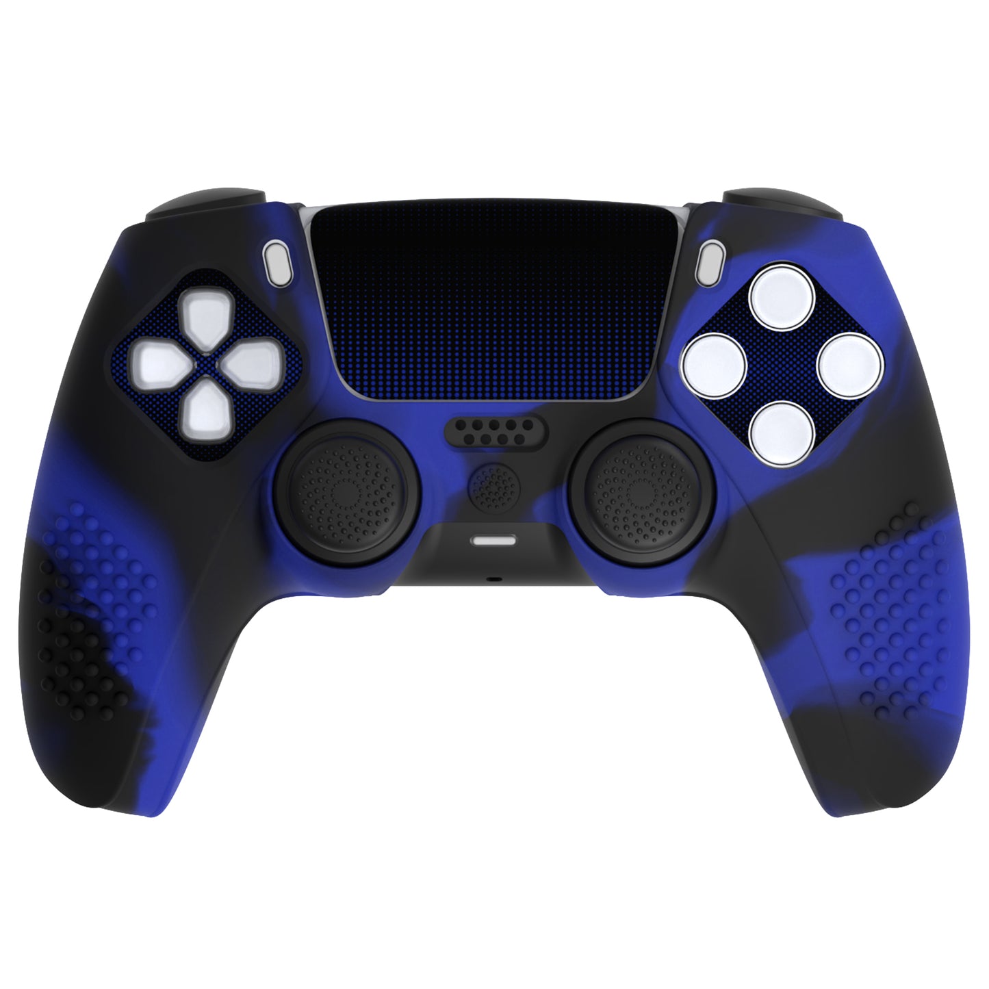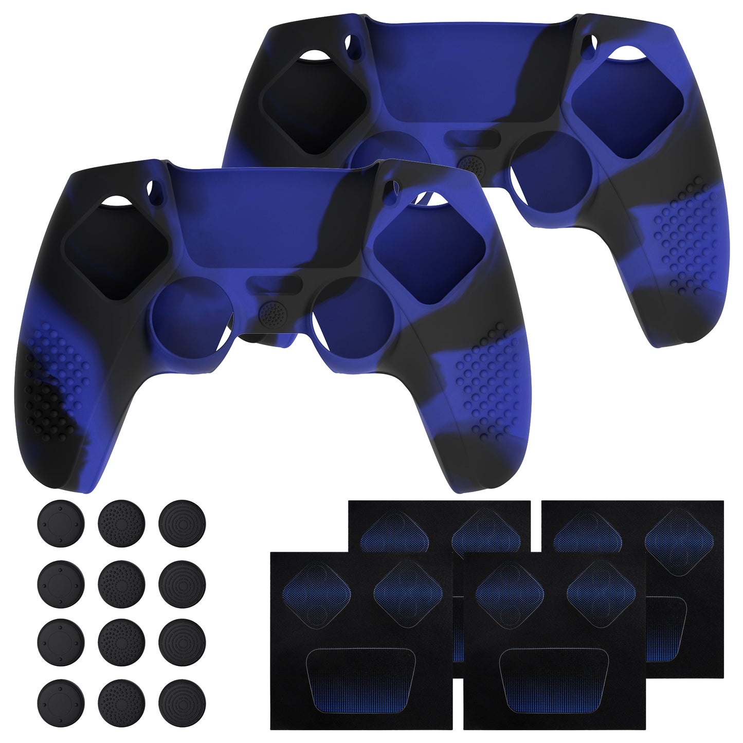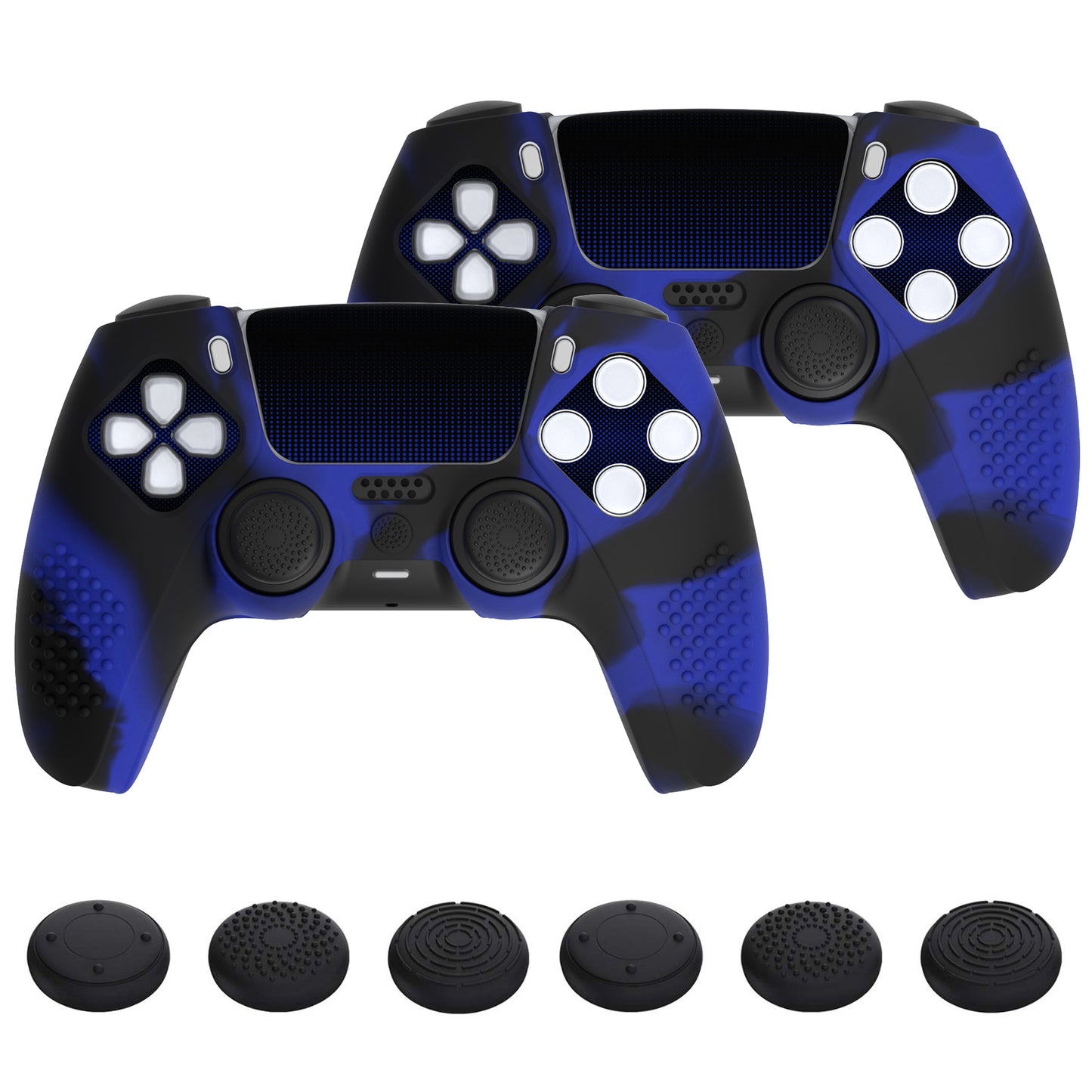 PlayVital 2セット アップグレード版 3Dスタッズ エディション 防滑シリコンカバー スキン (6つのサムグリップ & 2枚のステッカー付き) - PS5 コントローラー用、充電ドック対応【ブルー & ブラック】