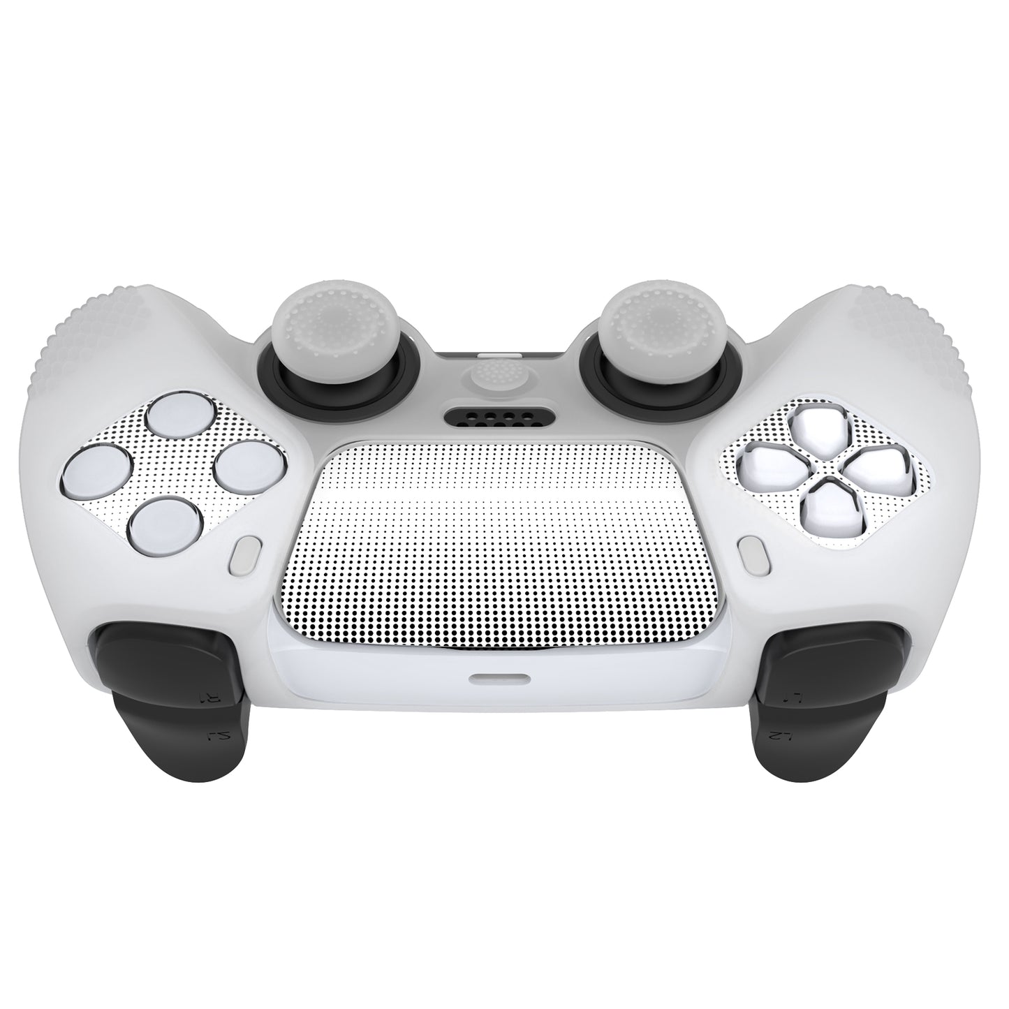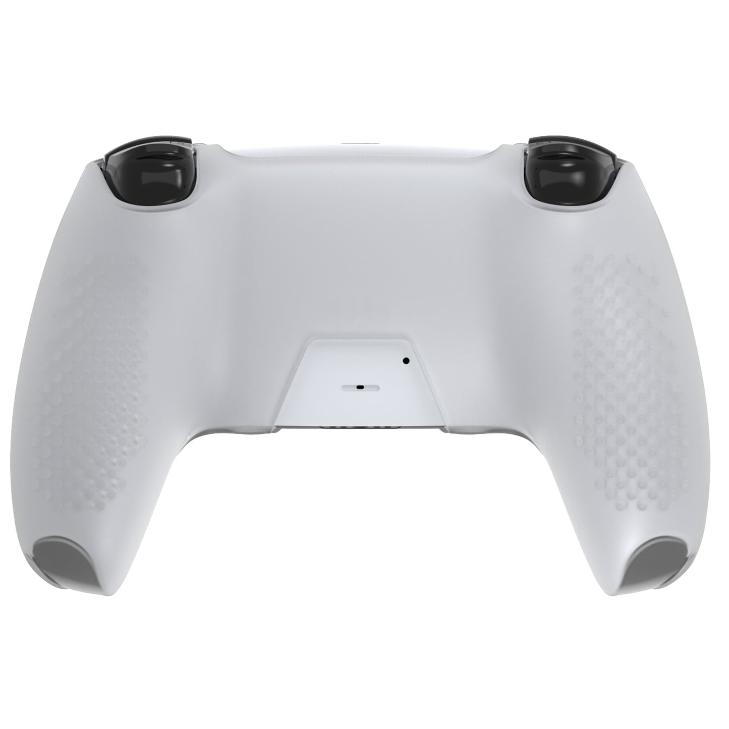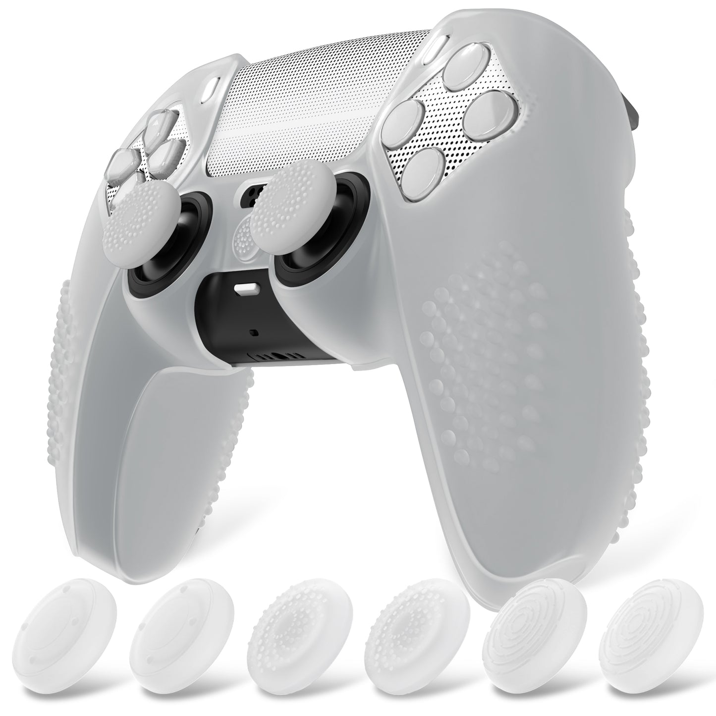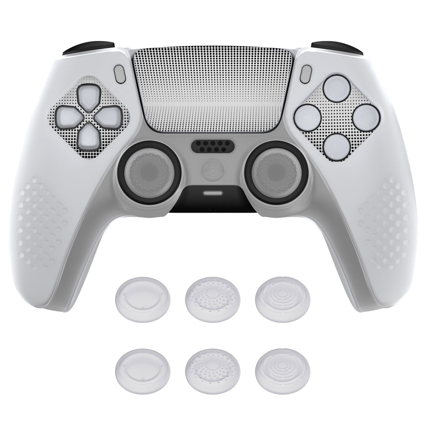 PlayVital アップグレード版 3Dスタッズエディション 防滑シリコンカバー スキン (6つのサムグリップ & 2枚のステッカー付き) - PS5 コントローラー用、充電ドック対応【クリアホワイト】