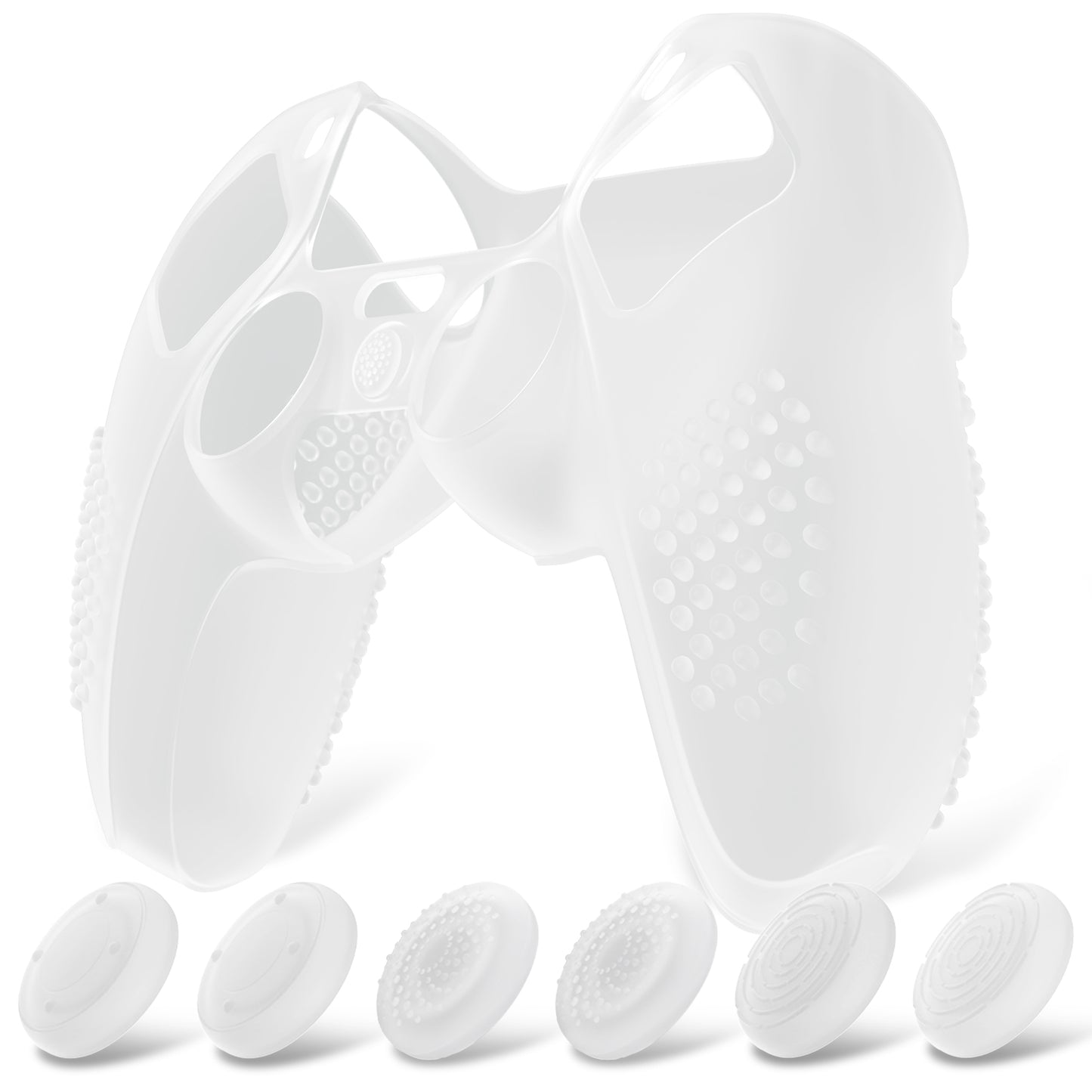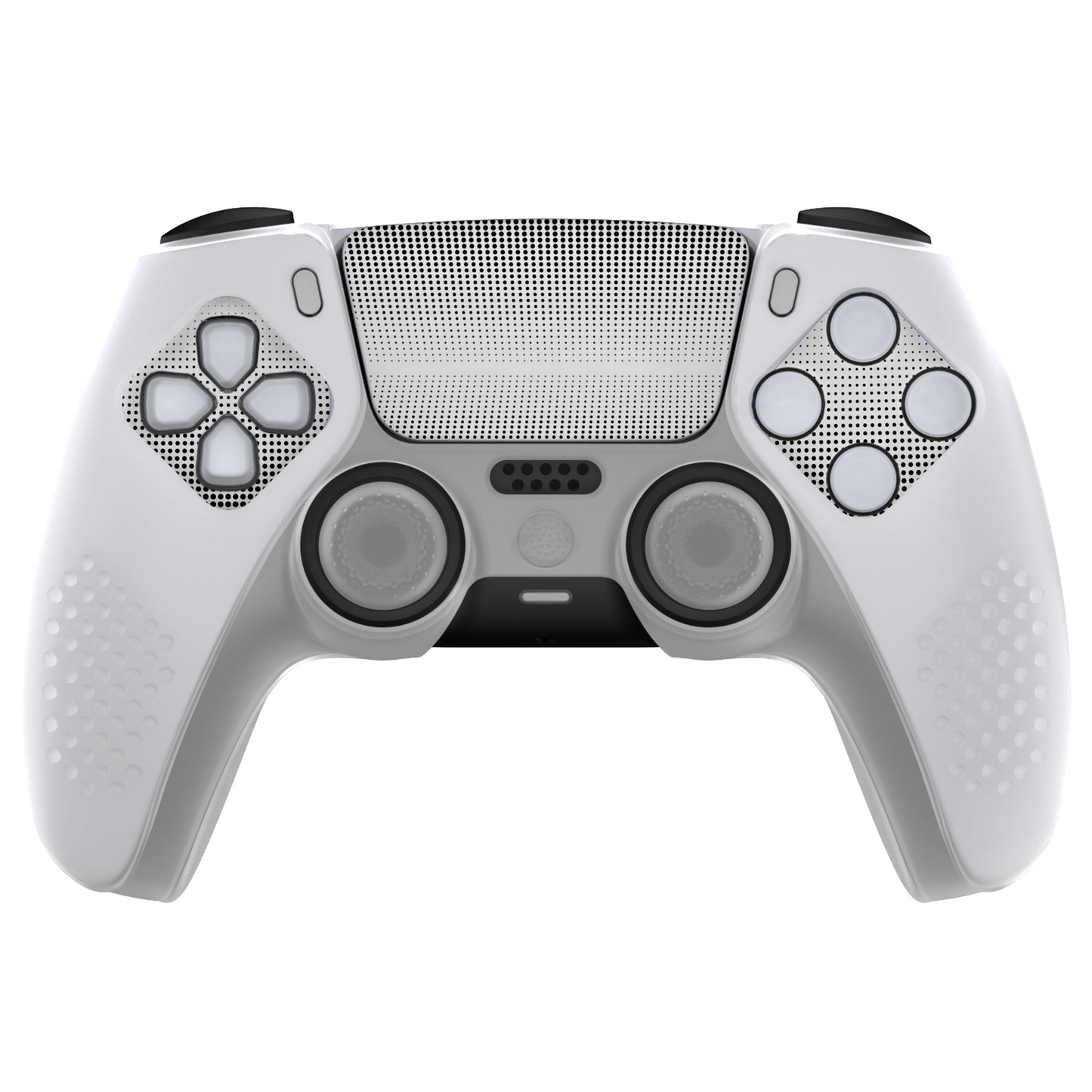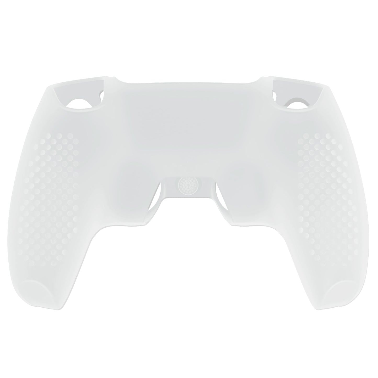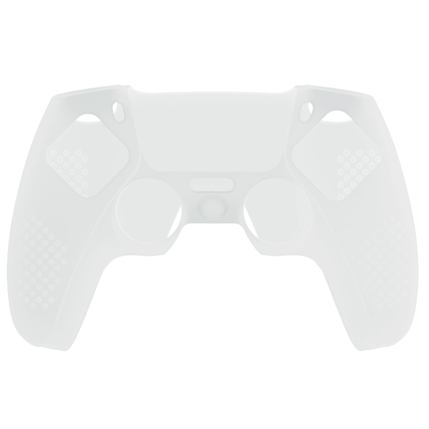 PlayVital アップグレード版 3Dスタッズエディション 防滑シリコンカバー スキン (6つのサムグリップ & 2枚のステッカー付き) - PS5 コントローラー用、充電ドック対応【クリアホワイト】