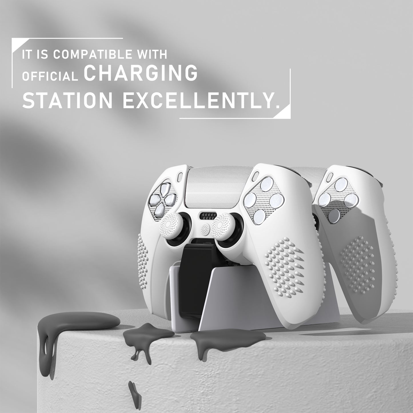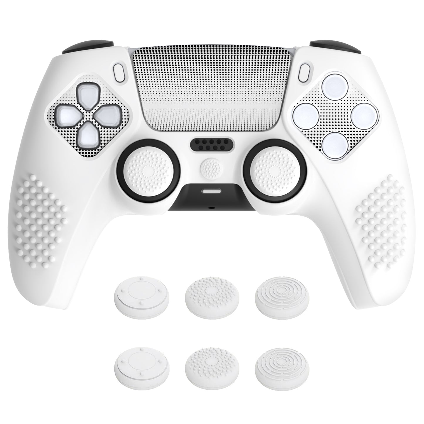 PlayVital アップグレード版 3Dスタッズエディション 防滑シリコンカバー スキン (6つのサムグリップ & 2枚のステッカー付き) - PS5 コントローラー用、充電ドック対応【ホワイト】