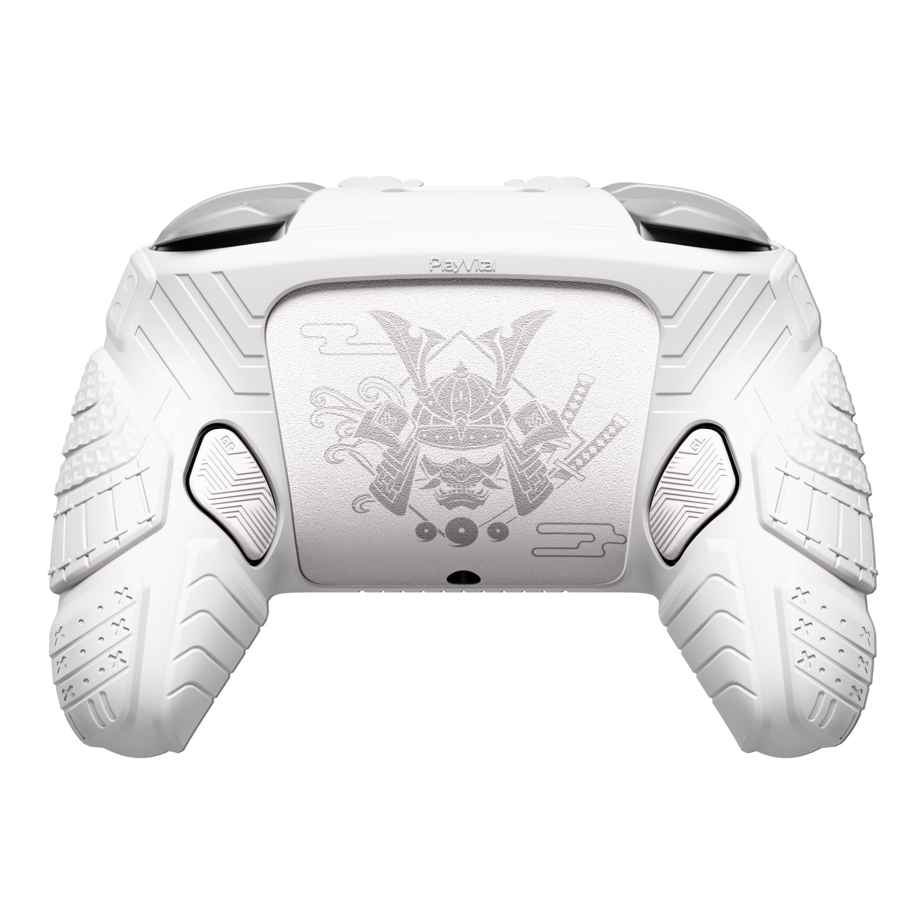 PlayVital 侍アーマーエディション シリコンケース for Switch 2 Pro コントローラー Nintendo Switch 2 Pro コントローラー用 衝撃吸収スキンカバー(背面ボタンキャップ&スティックカバー&ステッカー付き)【ホワイト】