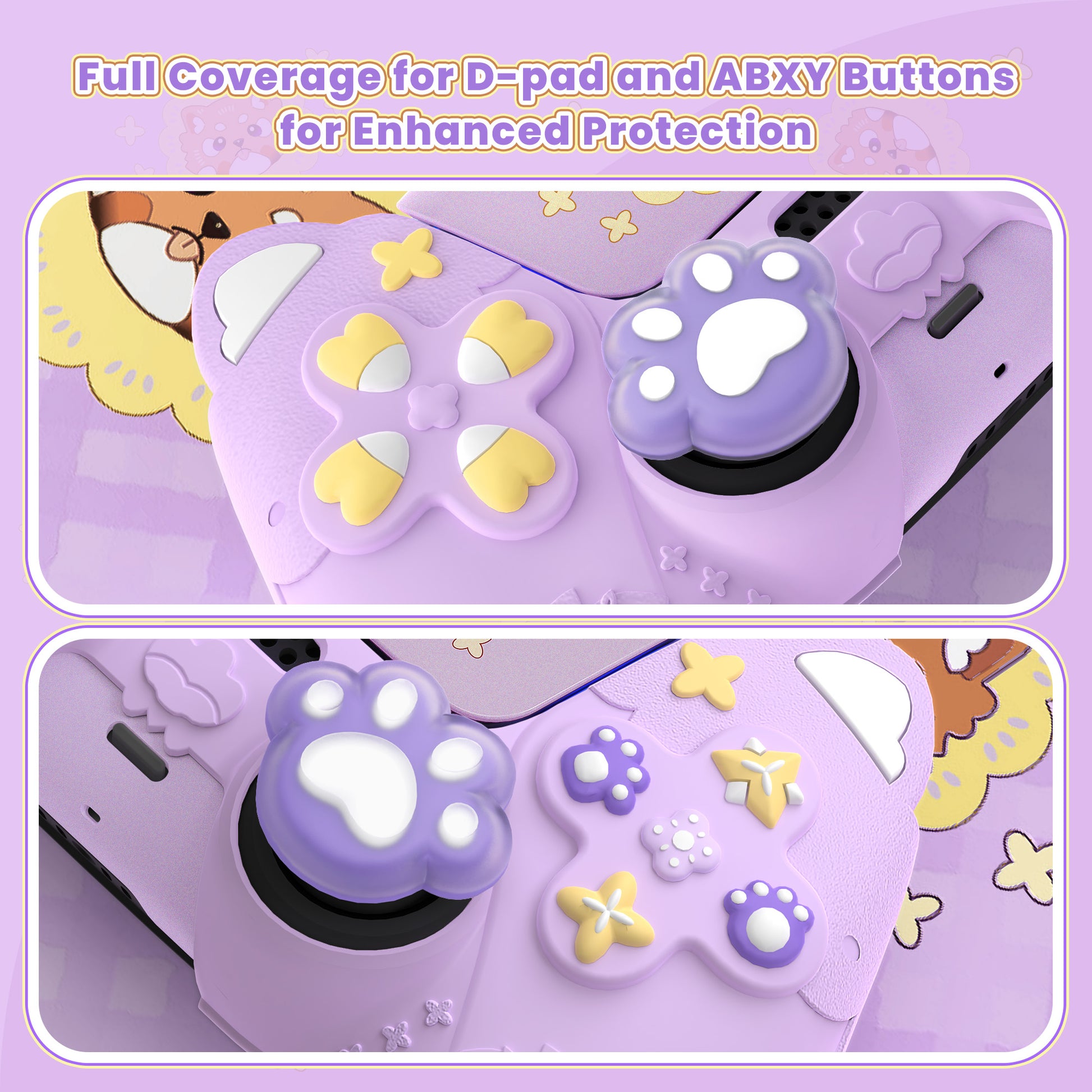 PlayVital かわいい春のレッサーパンダ シリコンカバー(ジョイスティックキャップ&ステッカー付き)PS5 コントローラー用 – 充電スタンド対応【タロイモパープル】