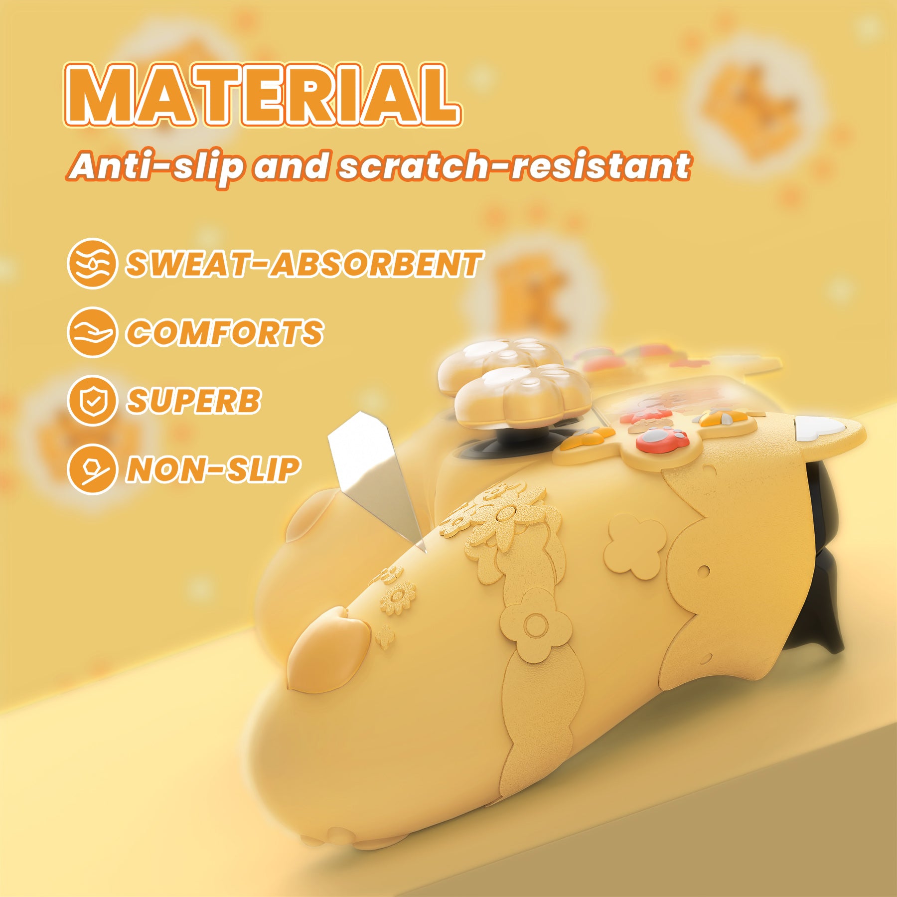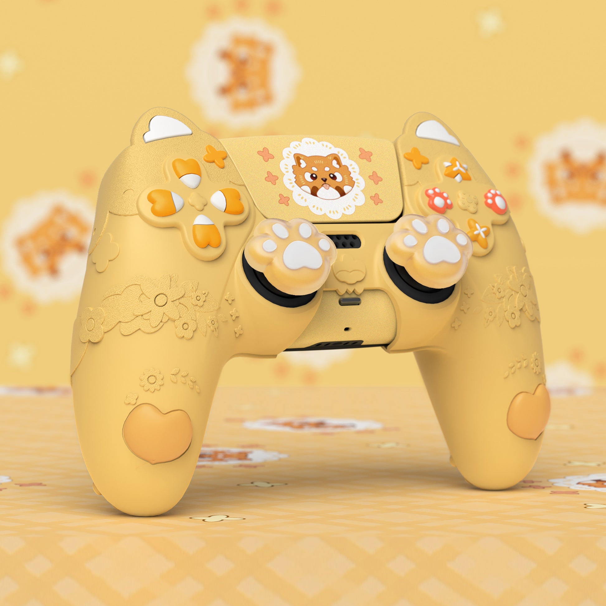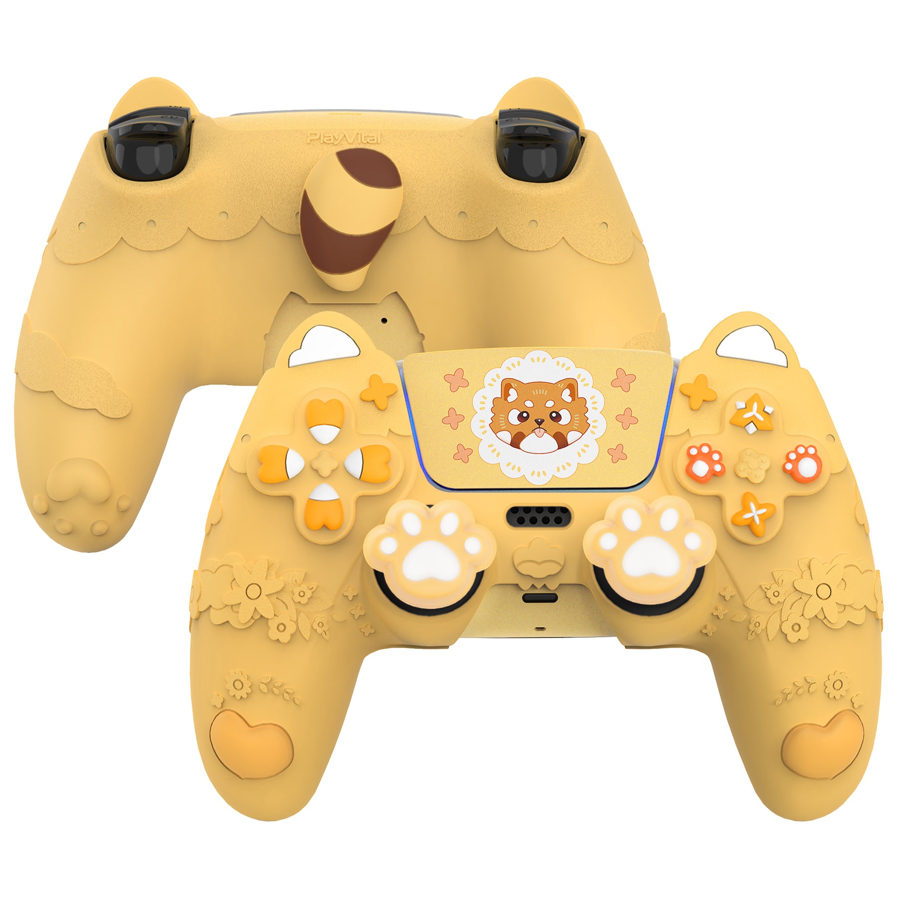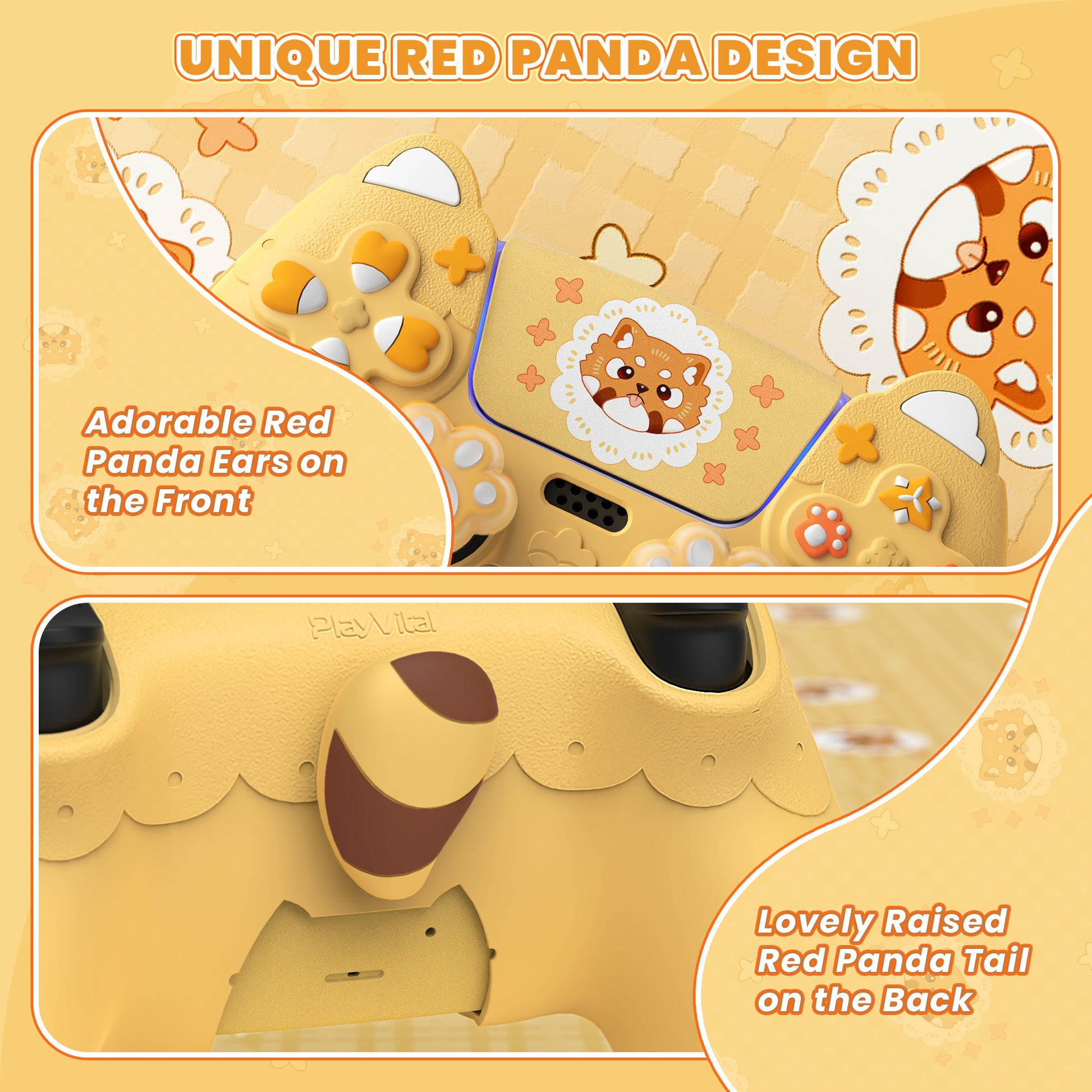 PlayVital かわいい春のレッサーパンダ シリコンカバー(ジョイスティックキャップ&ステッカー付き)PS5 コントローラー用 – 充電スタンド対応【ウォームイエロー】