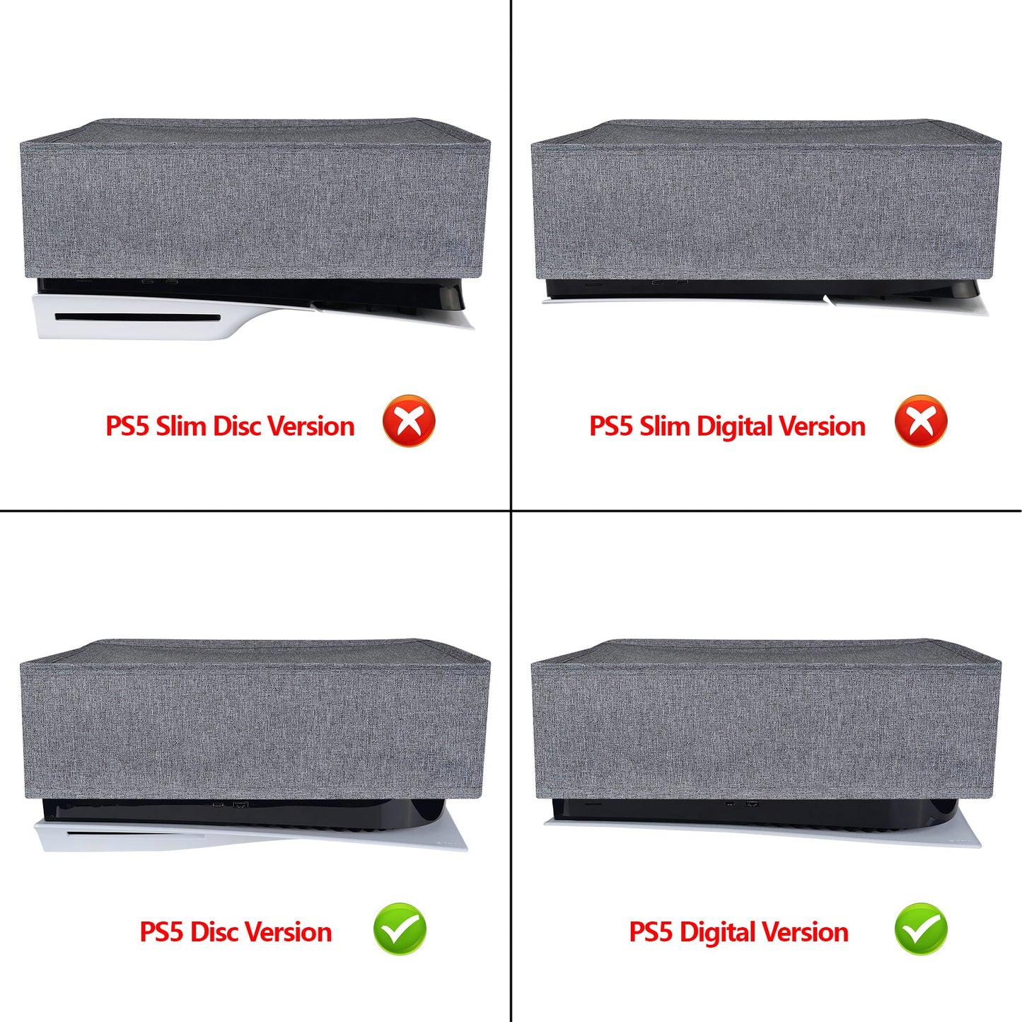 PlayVital 横式 傷防止 防水ナイロンダストカバー PS5 コンソール デジタル版 & 通常版用【グレイ】