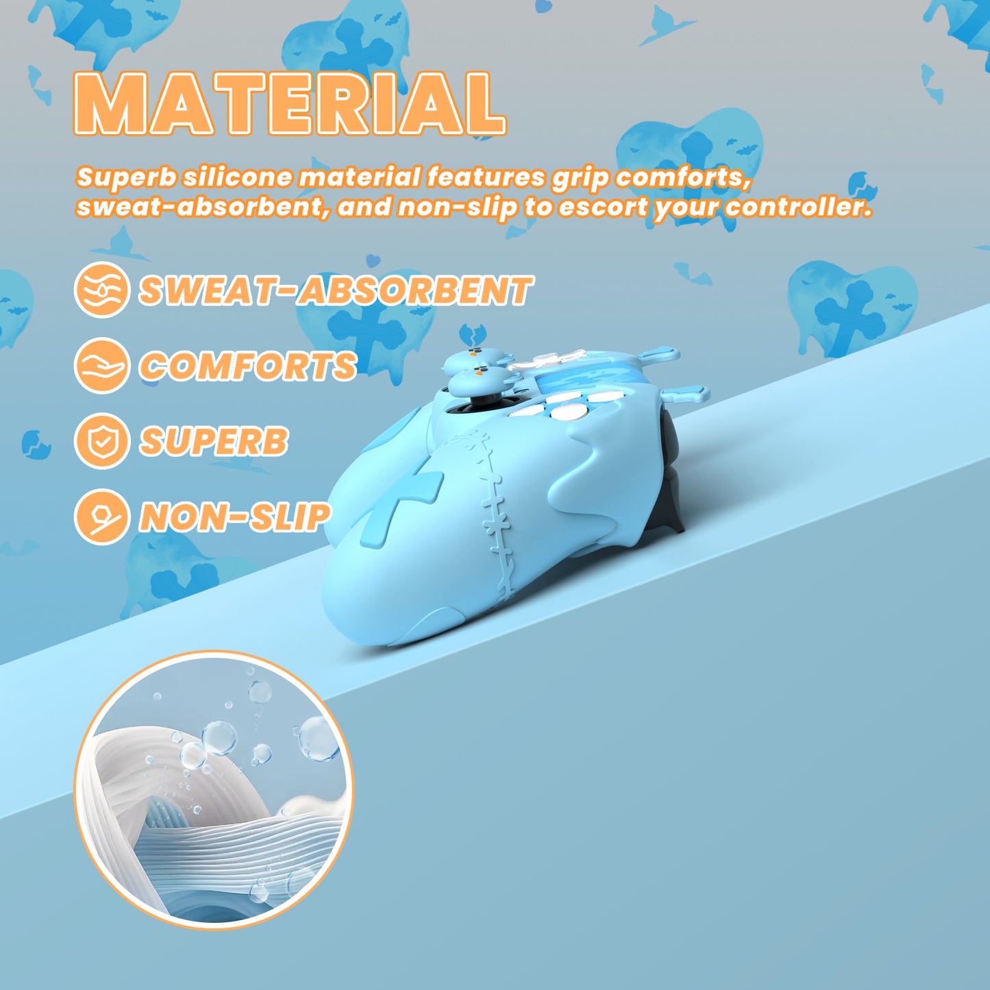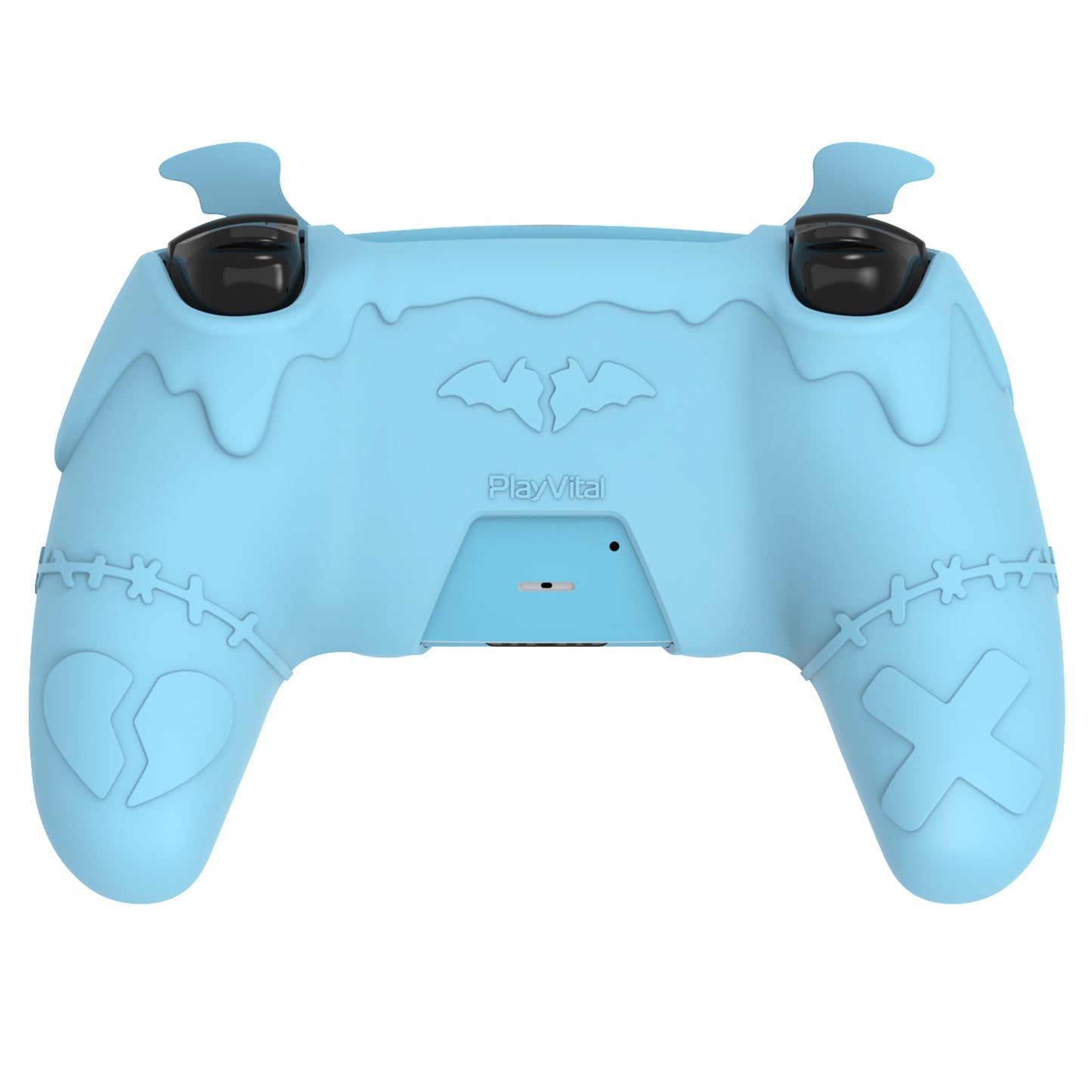 PlayVital ゴシックインプシリーズ かわいいシリコンケース(サムグリップとステッカー付き) PS5コントローラー用、PS5公式充電ドック対応【ブルー】