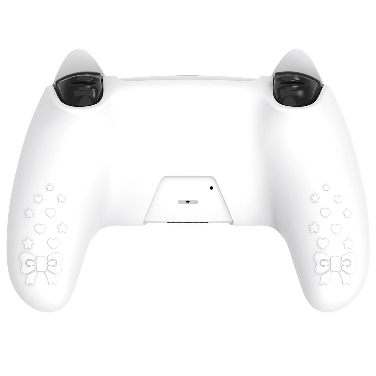 PlayVital Sweetheart Kitty ps5コントローラー対応用シリコン保護カバー、ジョイスティックキャップやステッカー付属、滑り止めグリップは公式の充電ドックにも適用【ホワイト】