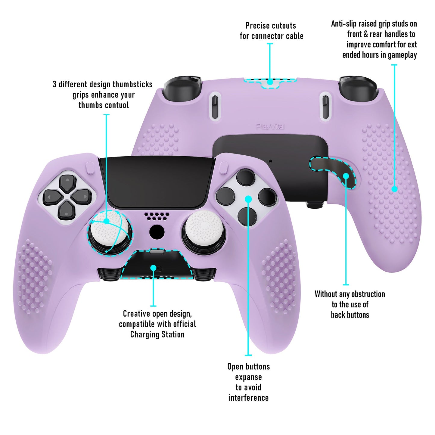 PlayVital 3D スタッズエディション 滑り止めシリコンカバーケース サムグリップキャップ付き PS5 Edge コントローラー用【明るい紫】