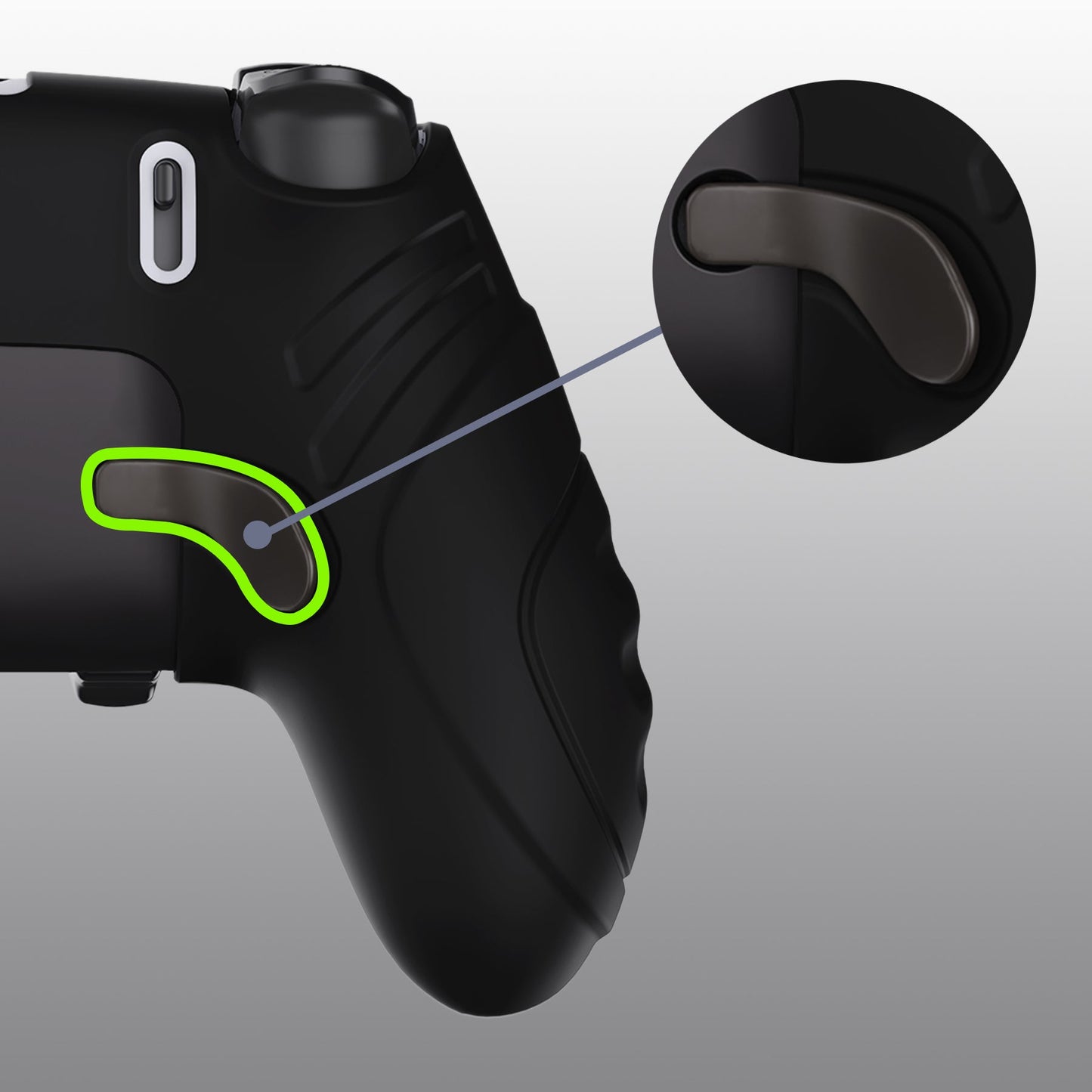 3. 拡張されたサムスティック領域は、グリップの干渉を回避します。拡張されたフェイスボタン領域は、ボタンの干渉を回避します。