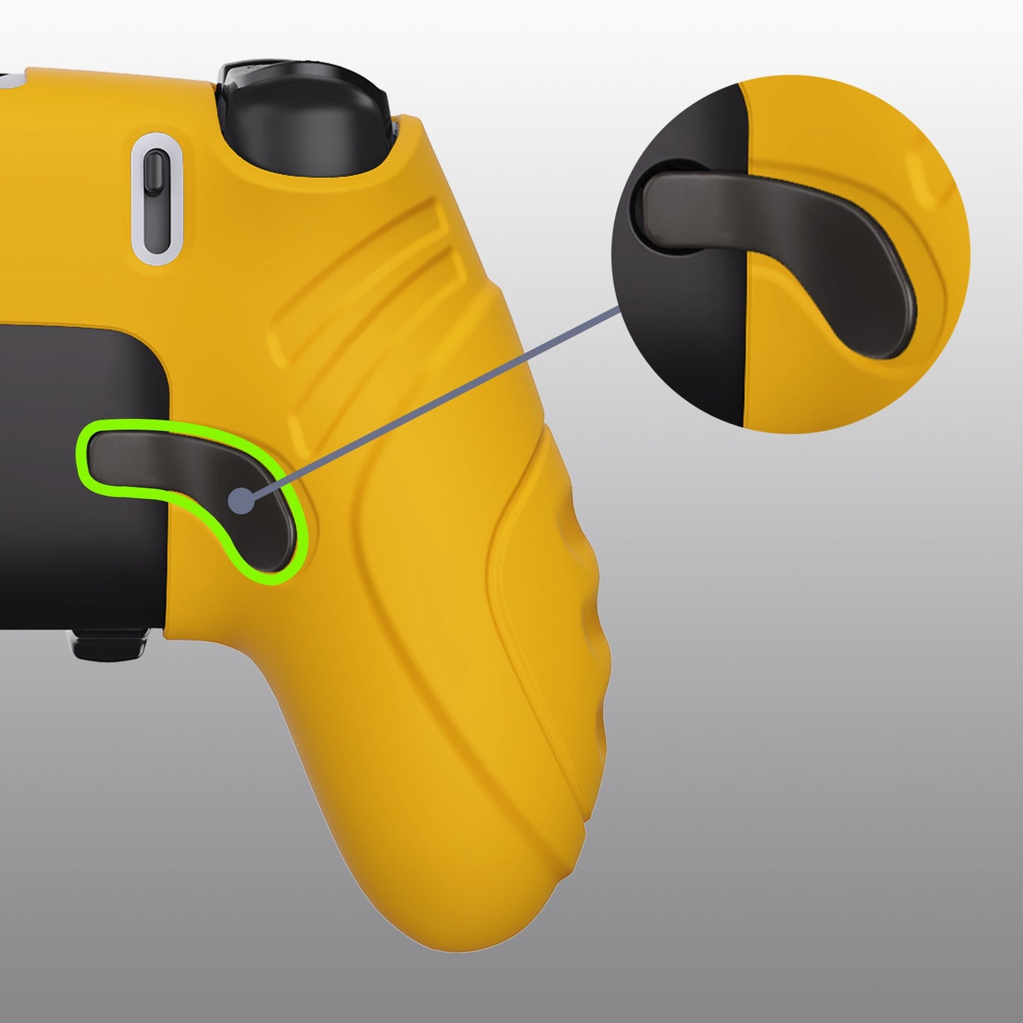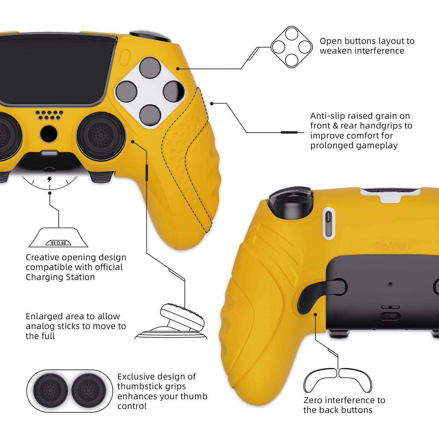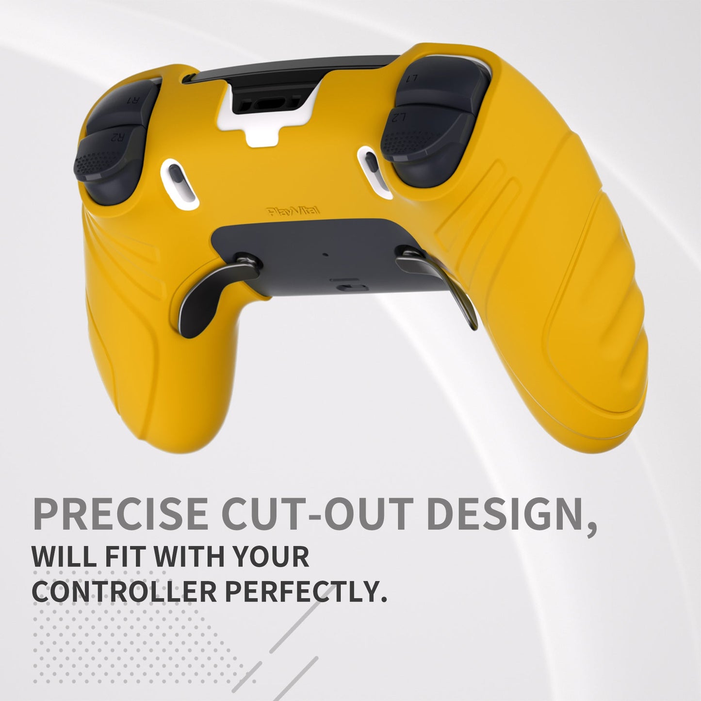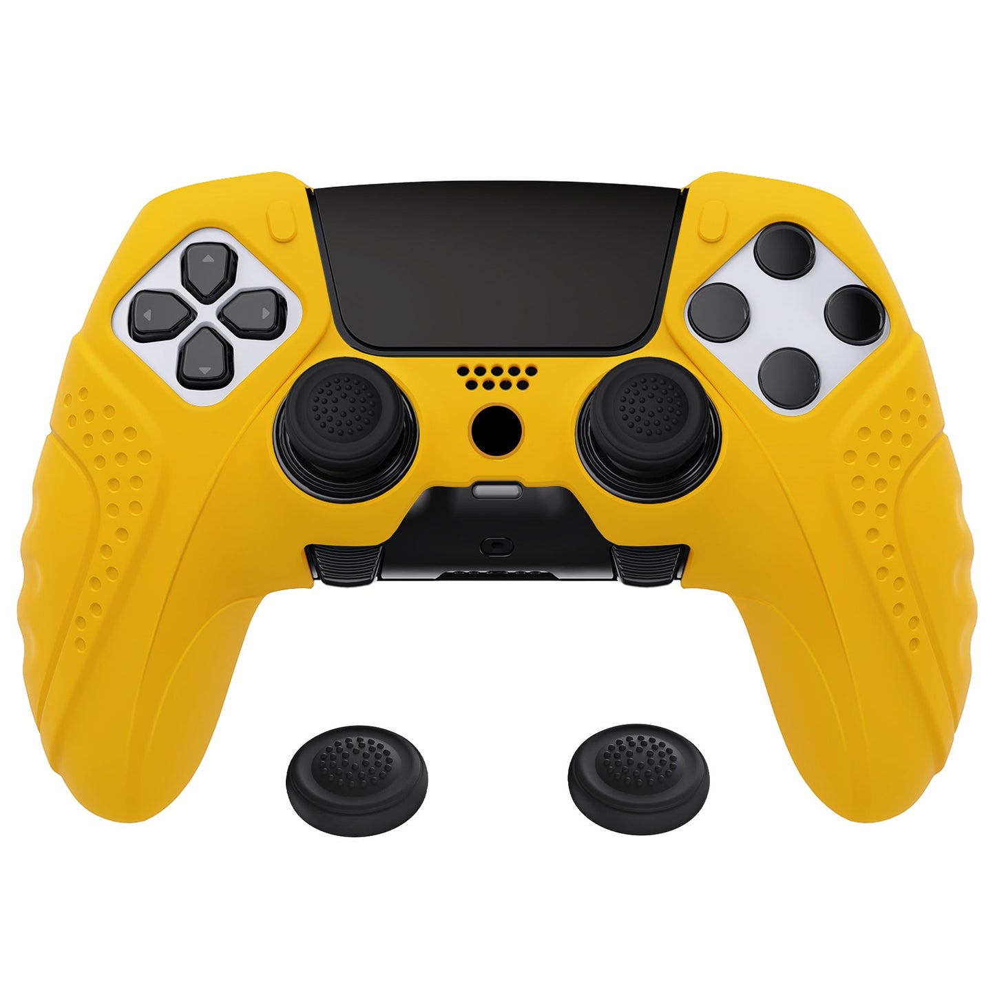 PlayVital Guardian Edition 滑り止め人間工学シリコンカバーケース 親指グリップキャップ付き PS5 Edge コントローラー用【黄色】
