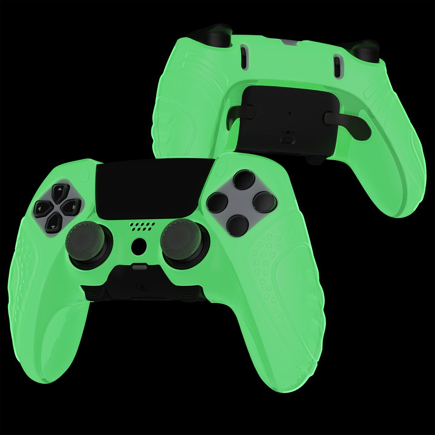 PlayVital Guardian Edition 滑り止め人間工学シリコンカバーケース 親指グリップキャップ付き PS5 Edge コントローラー用【グローインダーク】