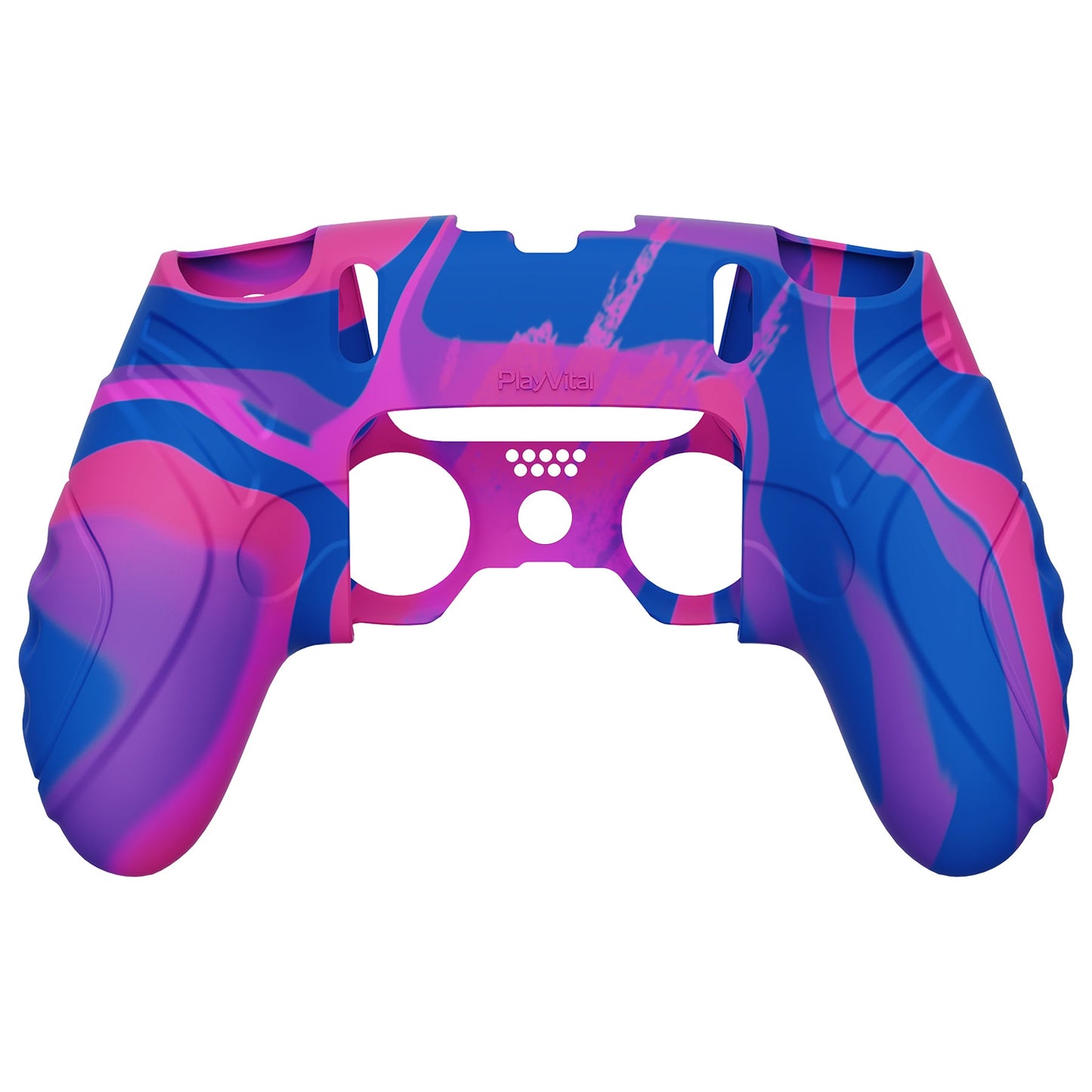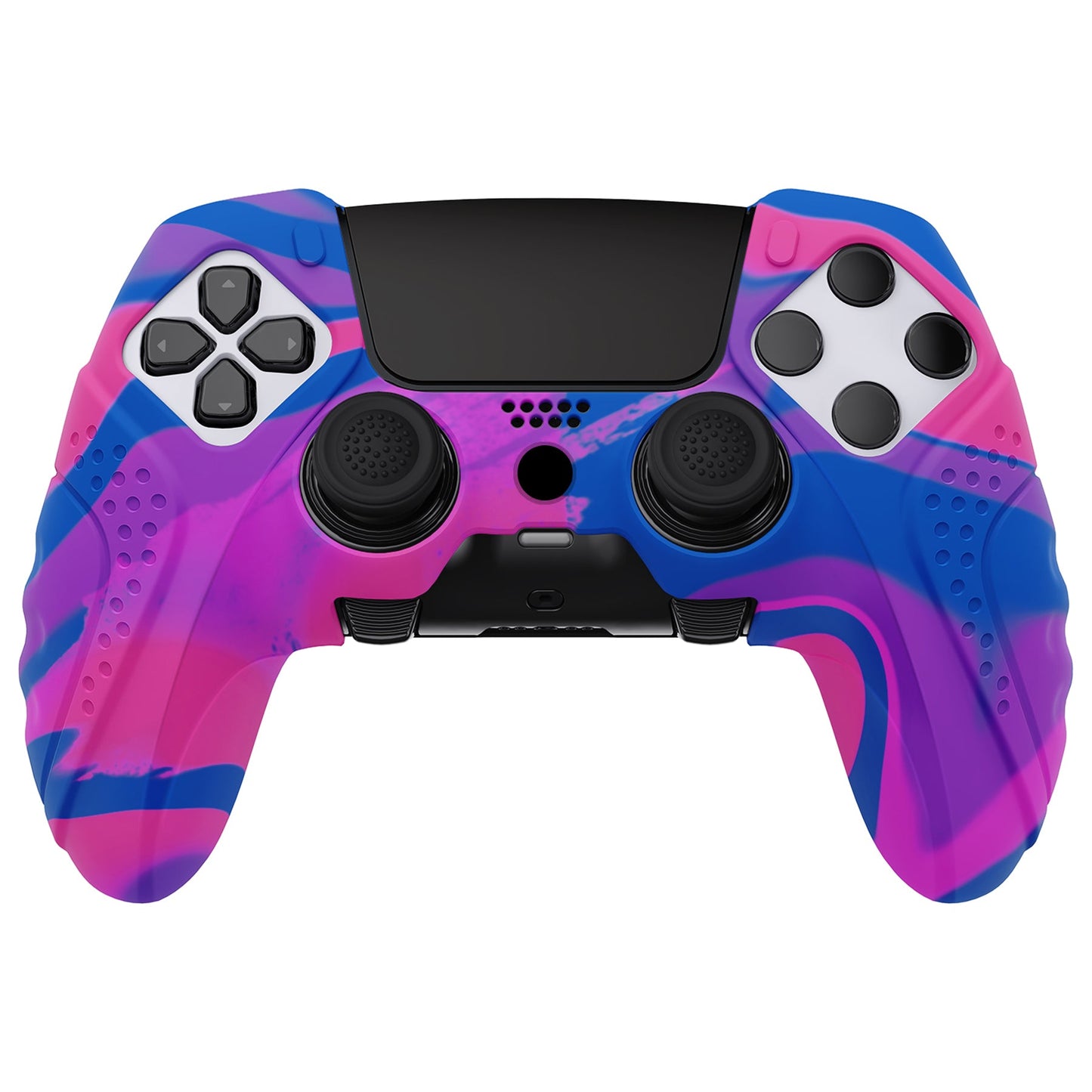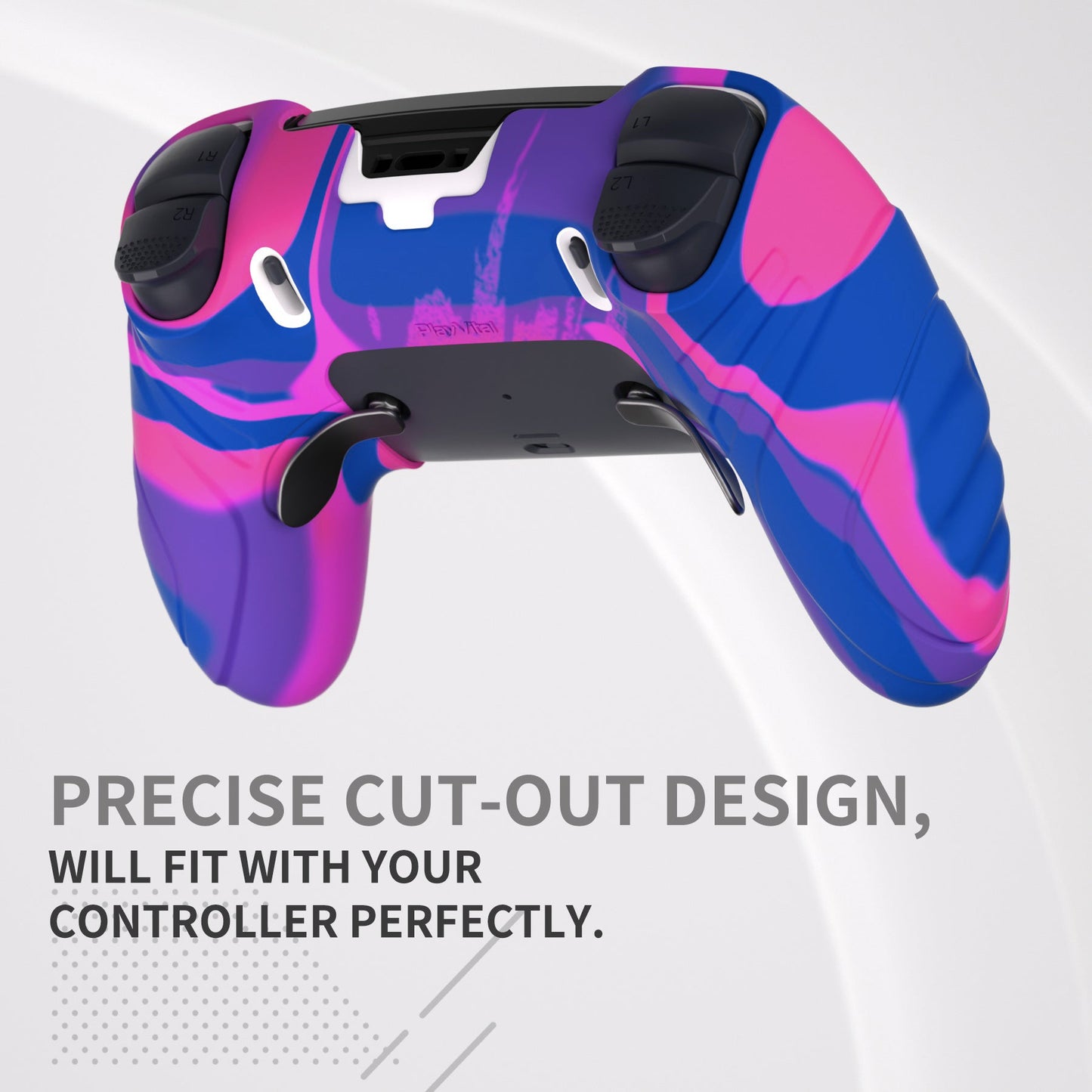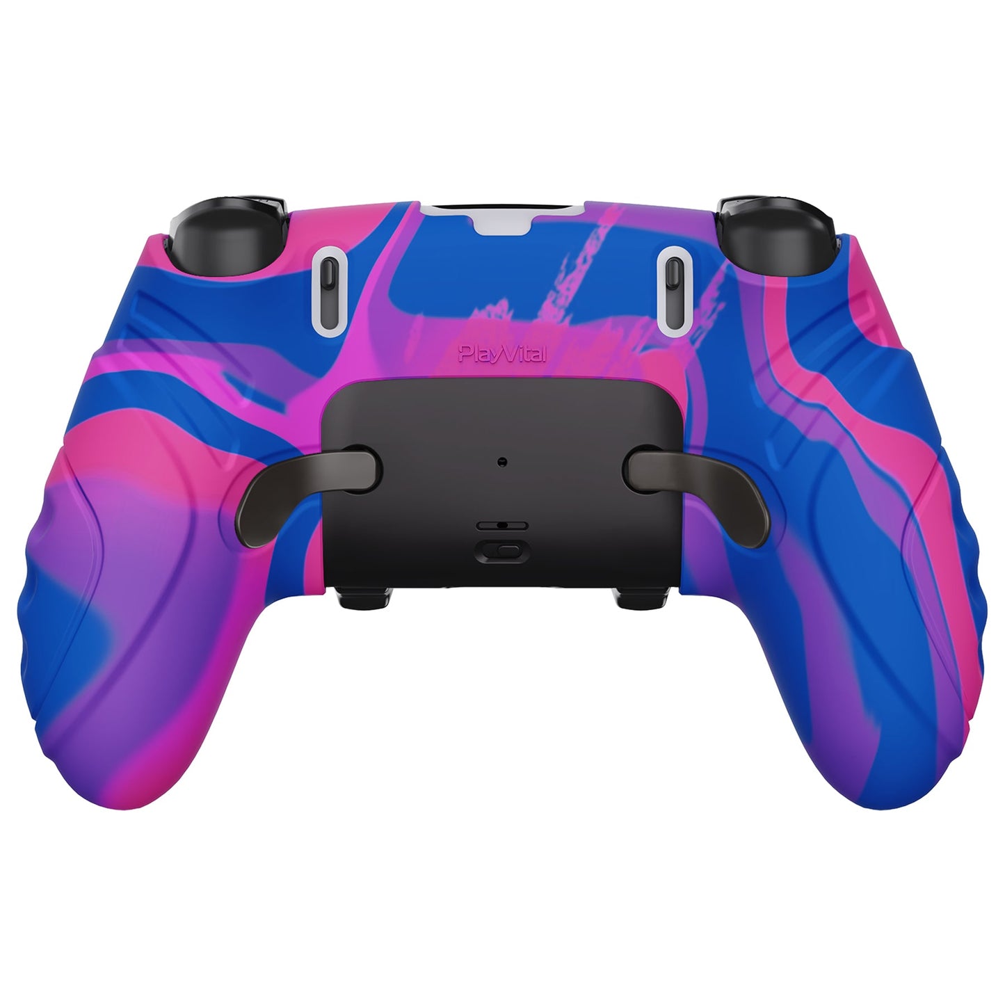 PlayVital Guardian Edition 滑り止め人間工学シリコンカバーケース 親指グリップキャップ付き PS5 Edge コントローラー用【ピンク&パープル&ブルー】