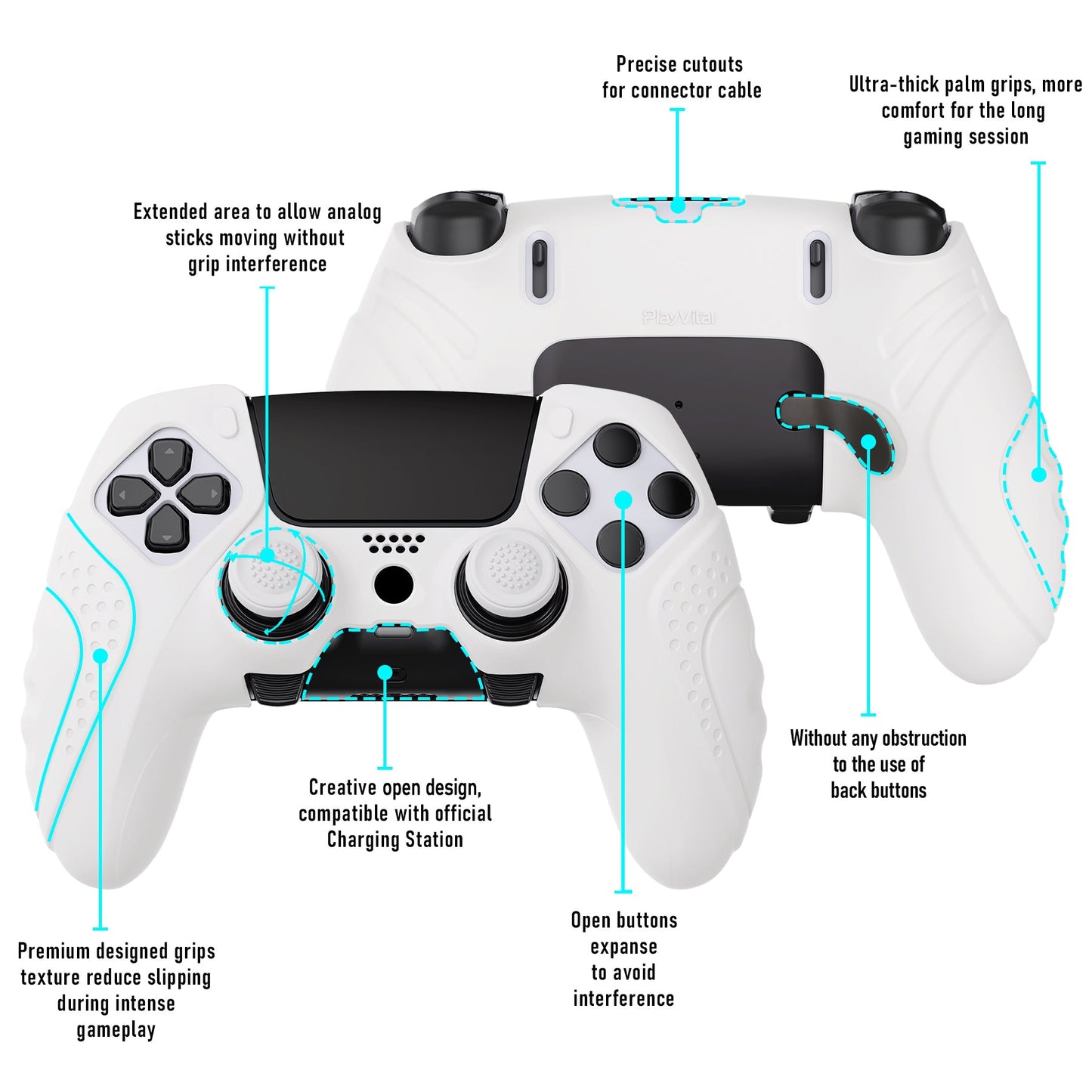PlayVital Guardian Edition 滑り止め人間工学シリコンカバーケース 親指グリップキャップ付き PS5 Edge コントローラー用【ホワイト】