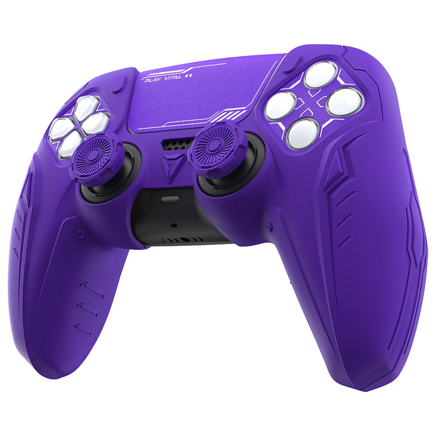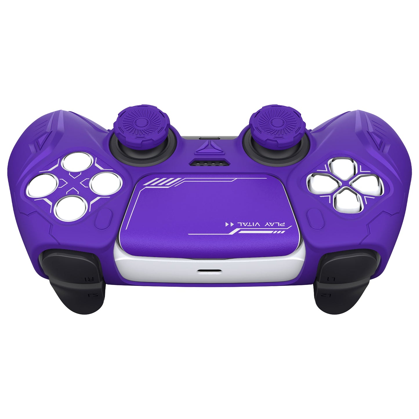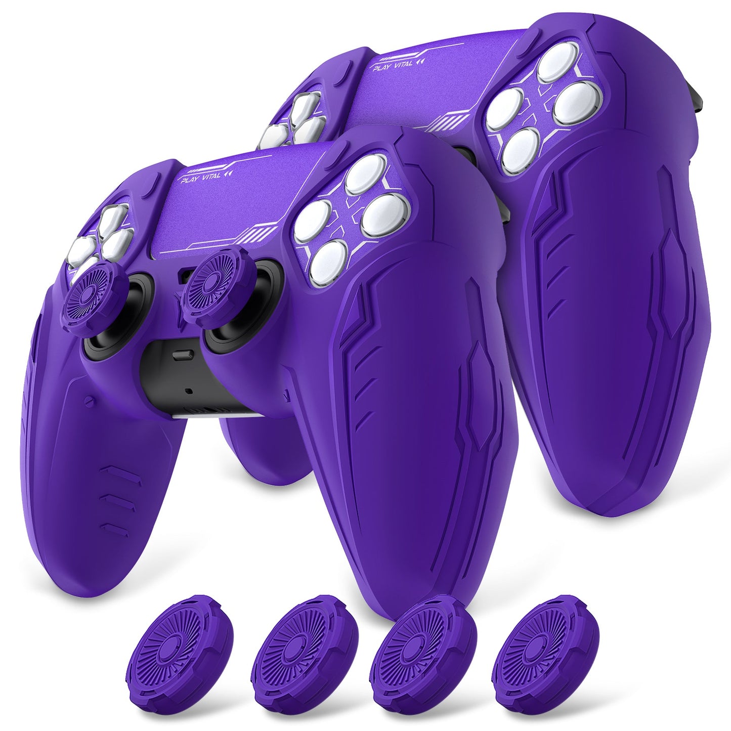 PlayVital 2セット 未来的なサイバーメカデザイン シリコンケース サムグリップ付き PS5 ワイヤレスコントローラー用 PS5 公式充電ドック対応 【パープル】